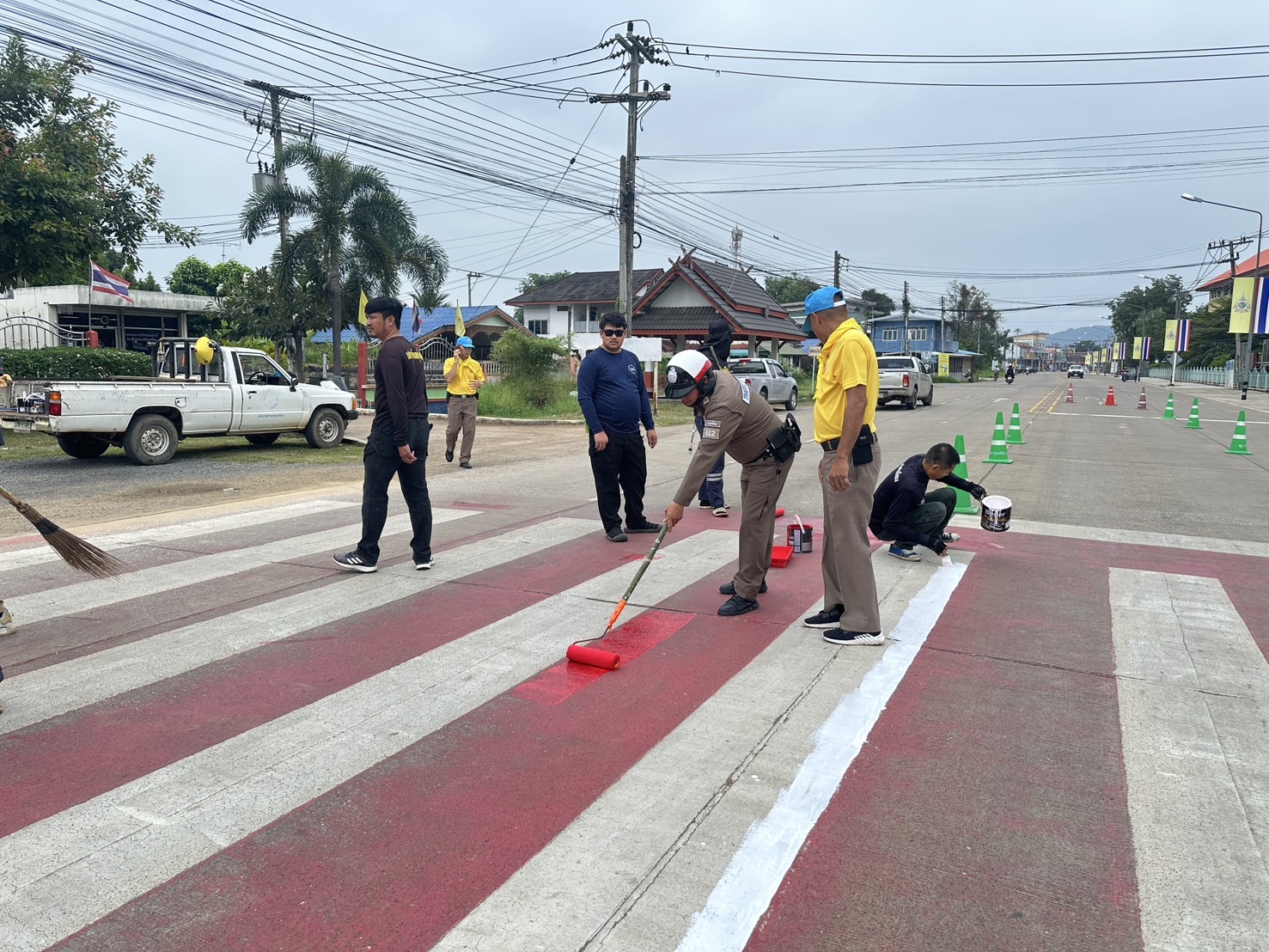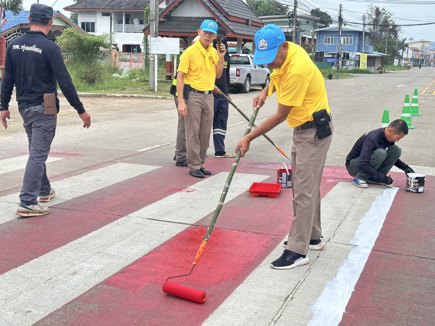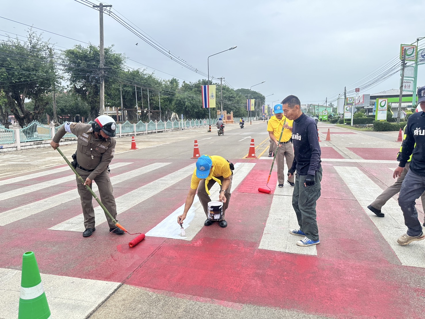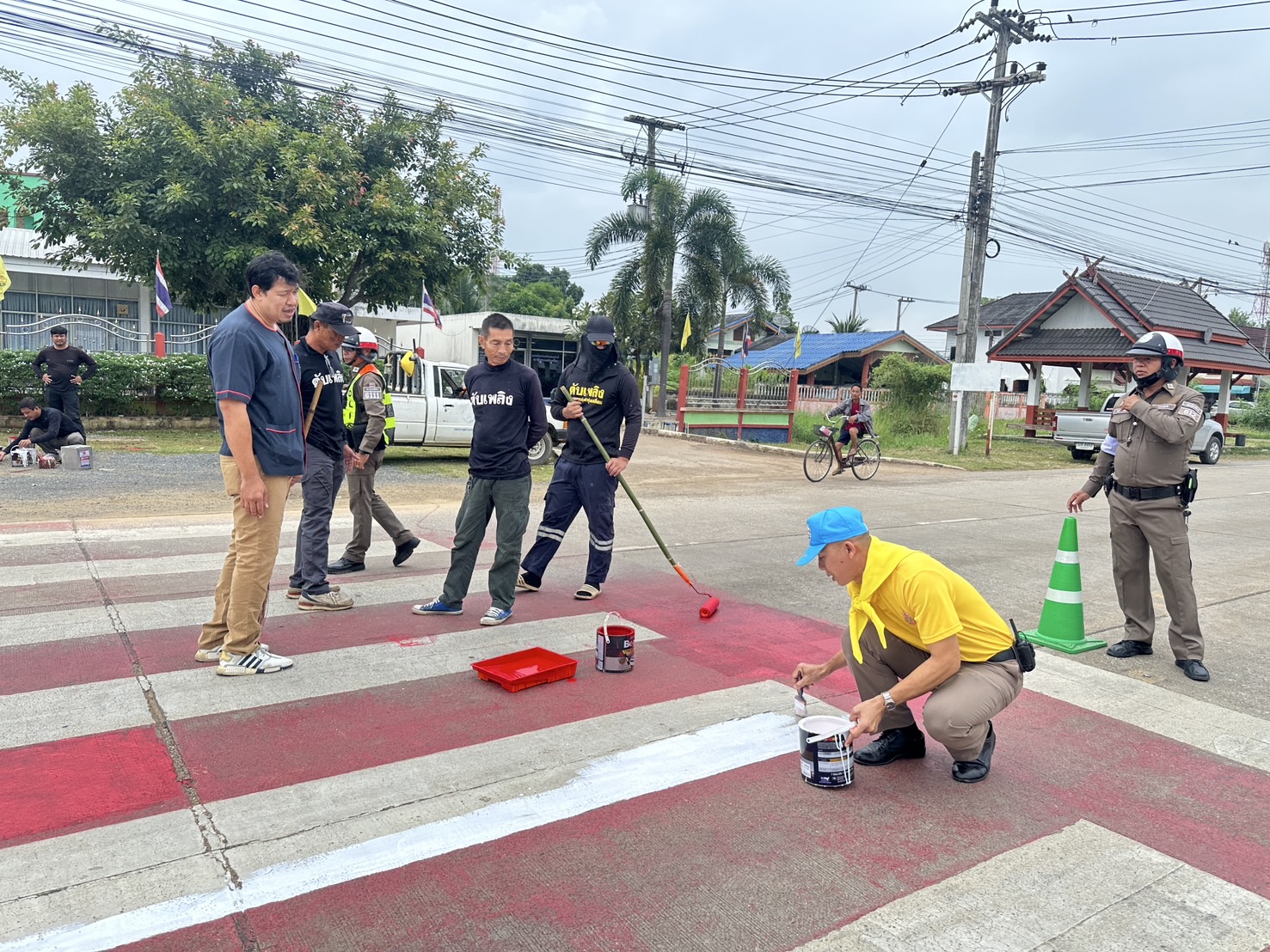 วันนี้ ( 5 พ.ย. 2567 ) ภายใต้การอำนวยการของ พ.ต.อ.นิคม พรมพิราม ผกก.สภ.ทุ่งเสลี่ยม ,พ.ต.ท.สุกิจ ประกิจ รองผกก.ป.สภ.ทุ่งเสลี่ยม มอบหมายให้ ชุด 60 สายตรวจจราจรและข้าราชการตำรวจจิตอาสา ร่วมกับเจ้าหน้าที่เทศบาลตำบลทุ่งเสลี่ยม ได้ดำเนินการทาสี ตีเส้นจราจร ทางข้าม เพื่ออํานวยความสะดวกและความปลอดภัยในด้านการจราจร และความปลอดภัยในท้องถนนแก่ประชาชนและนักเรียน บริเวณทางข้ามหน้าโรงเรียนทุ่งเสลี่ยมชนูปถัมภ์