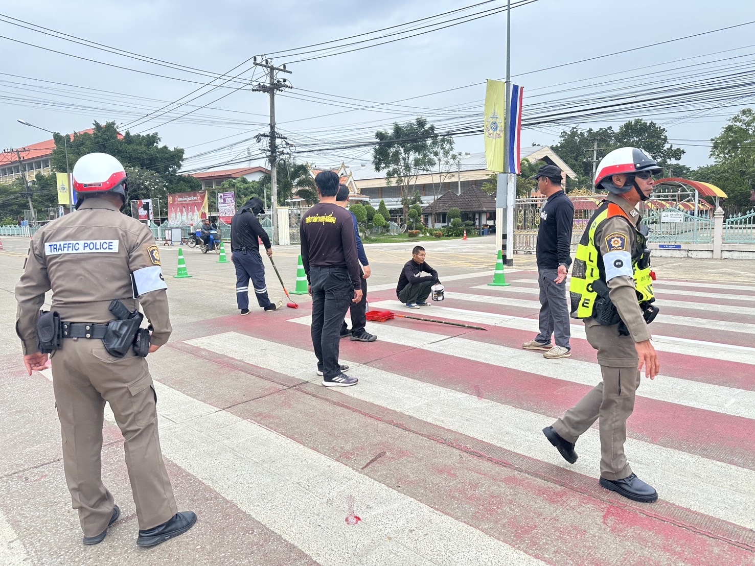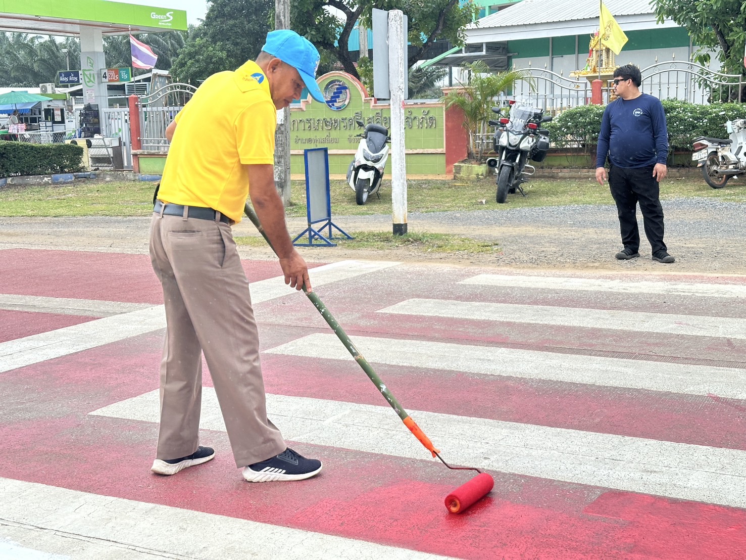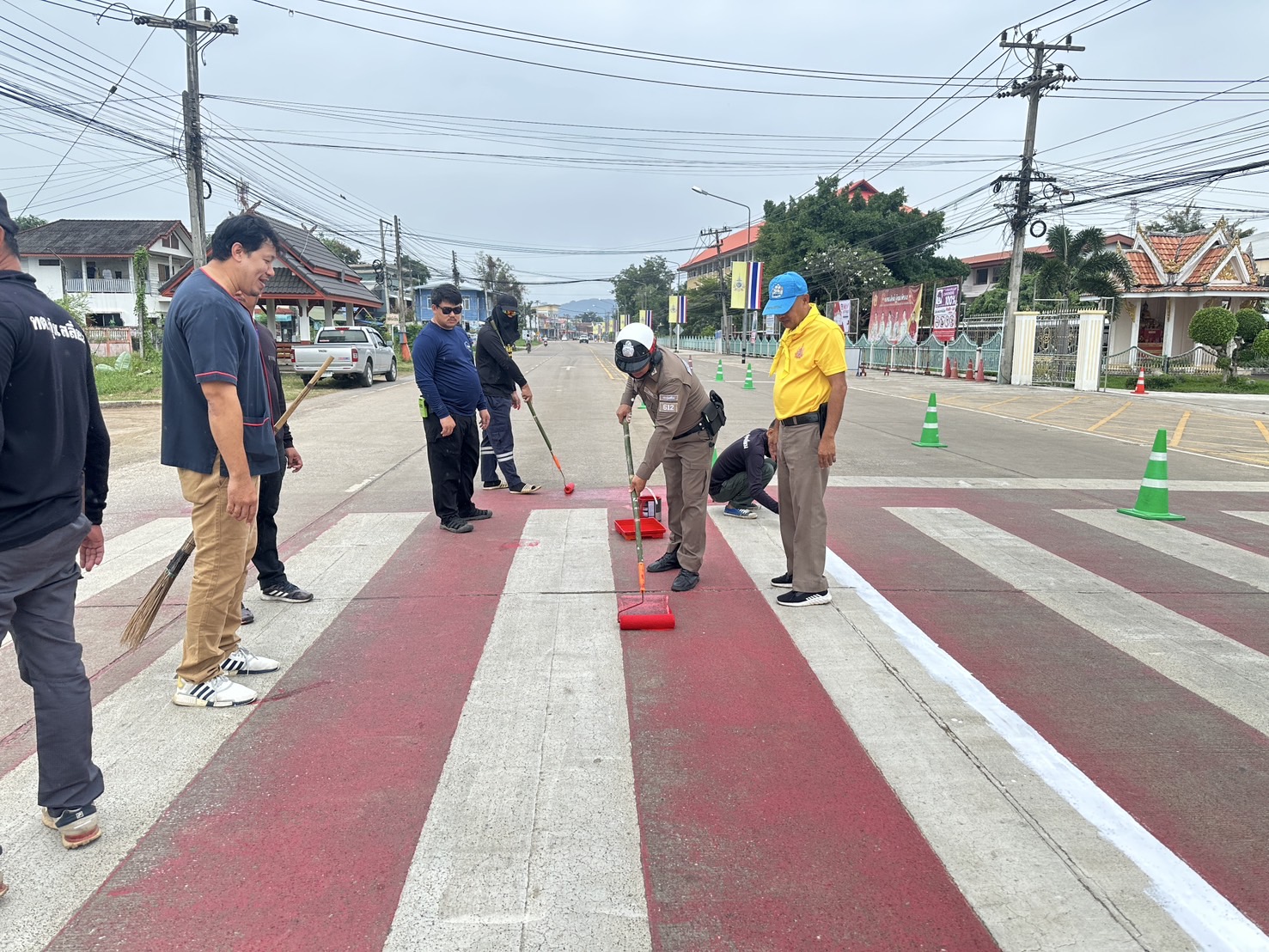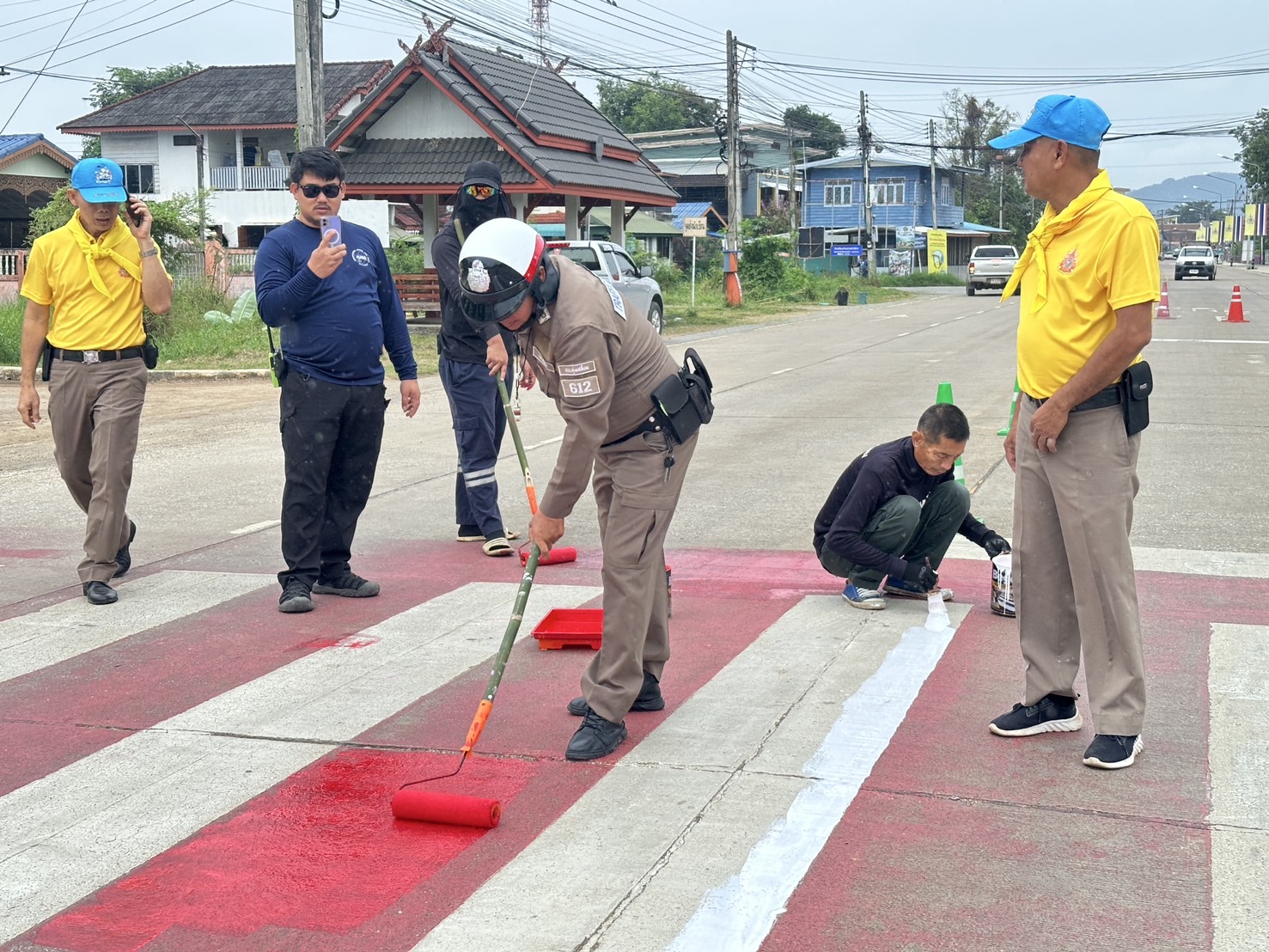 วันนี้ ( 5 พ.ย. 2567 ) ภายใต้การอำนวยการของ พ.ต.อ.นิคม พรมพิราม ผกก.สภ.ทุ่งเสลี่ยม ,พ.ต.ท.สุกิจ ประกิจ รองผกก.ป.สภ.ทุ่งเสลี่ยม มอบหมายให้ ชุด 60 สายตรวจจราจรและข้าราชการตำรวจจิตอาสา ร่วมกับเจ้าหน้าที่เทศบาลตำบลทุ่งเสลี่ยม ได้ดำเนินการทาสี ตีเส้นจราจร ทางข้าม เพื่ออํานวยความสะดวกและความปลอดภัยในด้านการจราจร และความปลอดภัยในท้องถนนแก่ประชาชนและนักเรียน บริเวณทางข้ามหน้าโรงเรียนทุ่งเสลี่ยมชนูปถัมภ์