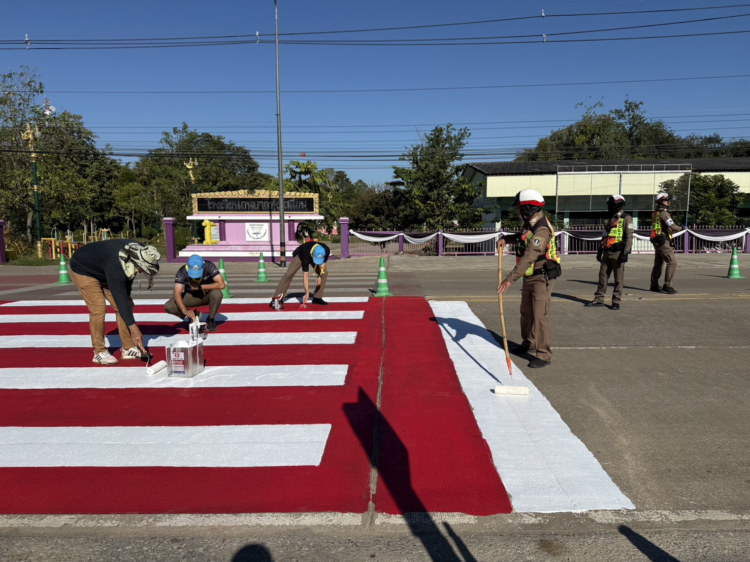 วันนี้ (16ธ.ค.68)เวลา 09.30น. ภายใต้การอำนวยการของ พ.ต.อ.ธีรณัจต์ เมธาอรรถพงศ์ ผกก.สภ.ทุ่งเสลี่ยม ,พ.ต.ท.ลำพูน เคลือบวงค์ รอง ผกก.ป.สภ.ทุ่งเสลี่ยม มอบหมายให้ ชุดสายตรวจจราจรและข้าราชการตำรวจจิตอาสา สภ.ทุ่งเสลี่ยม ร่วมกับเจ้าหน้าที่เทศบาลตำบลทุ่งเสลี่ยม ได้ดำเนินการทาสี ตีเส้นจราจร ทางข้าม เพื่ออํานวยความสะดวกและความปลอดภัยในด้านการจราจร และความปลอดภัยในท้องถนนแก่ประชาชนและนักเรียน บริเวณทางข้ามหน้าโรงเรียนอนุบาลทุ่งเสลี่ยม การดำเนินการเป็นไปด้วยความเรียบร้อย