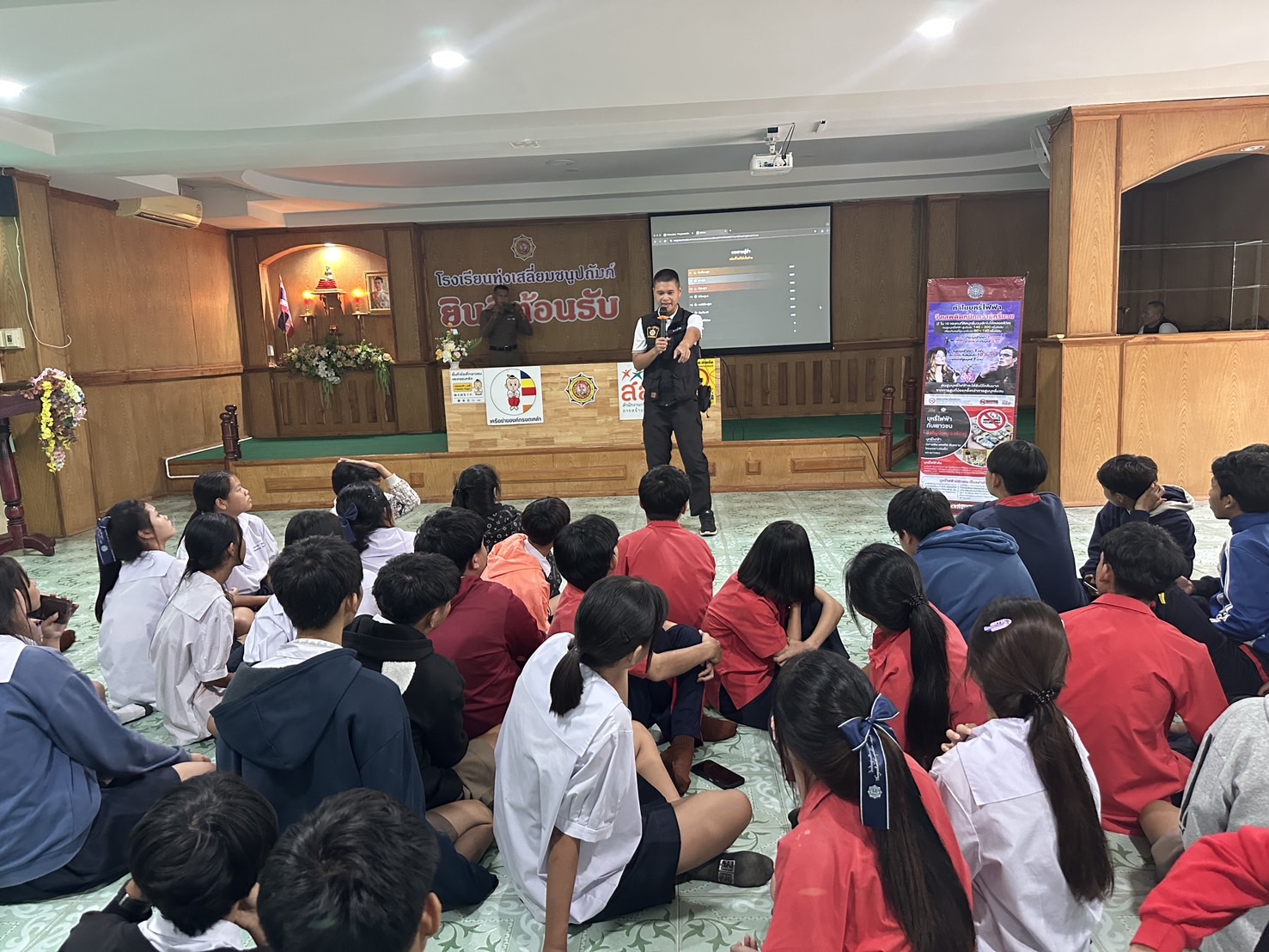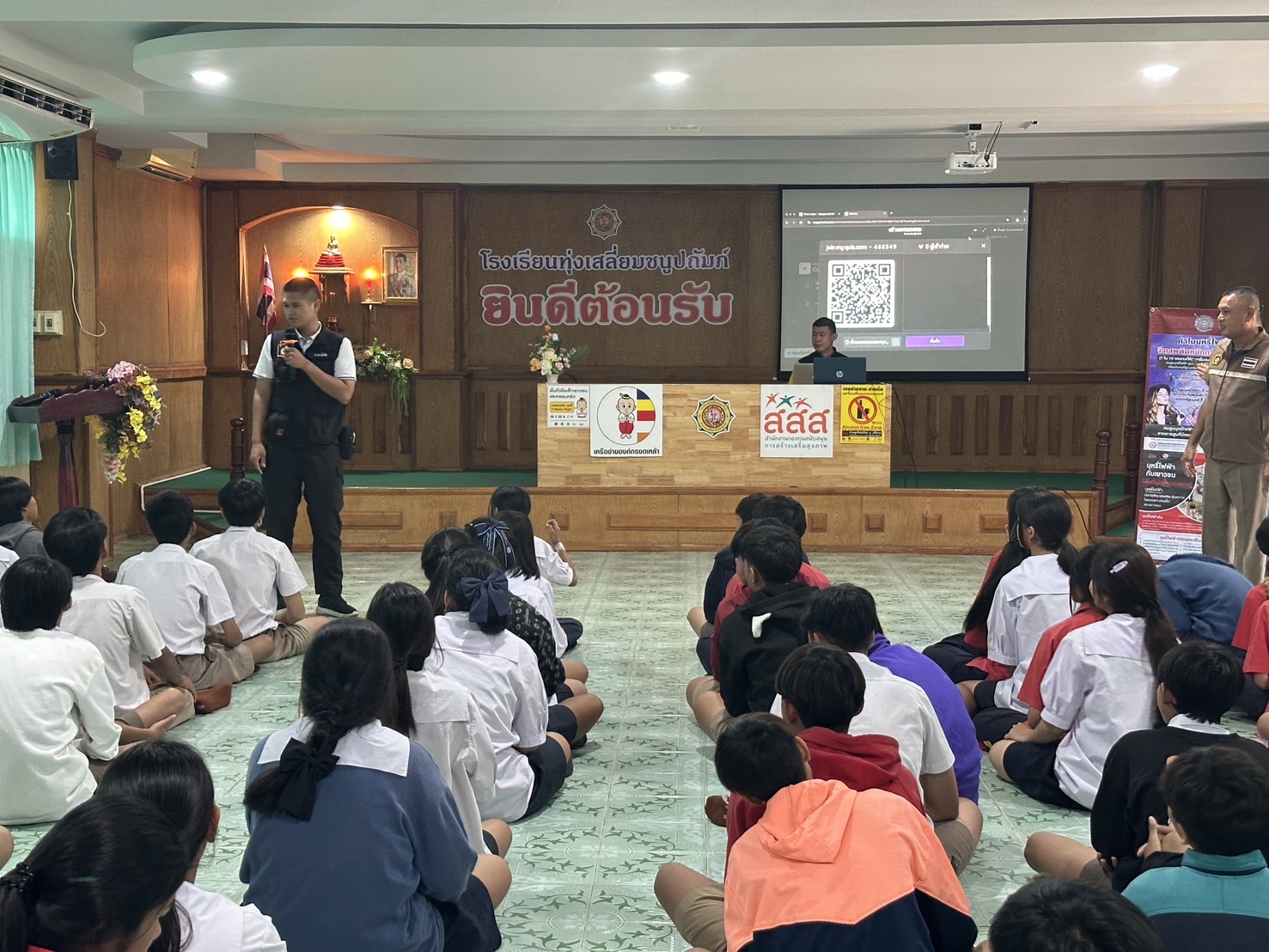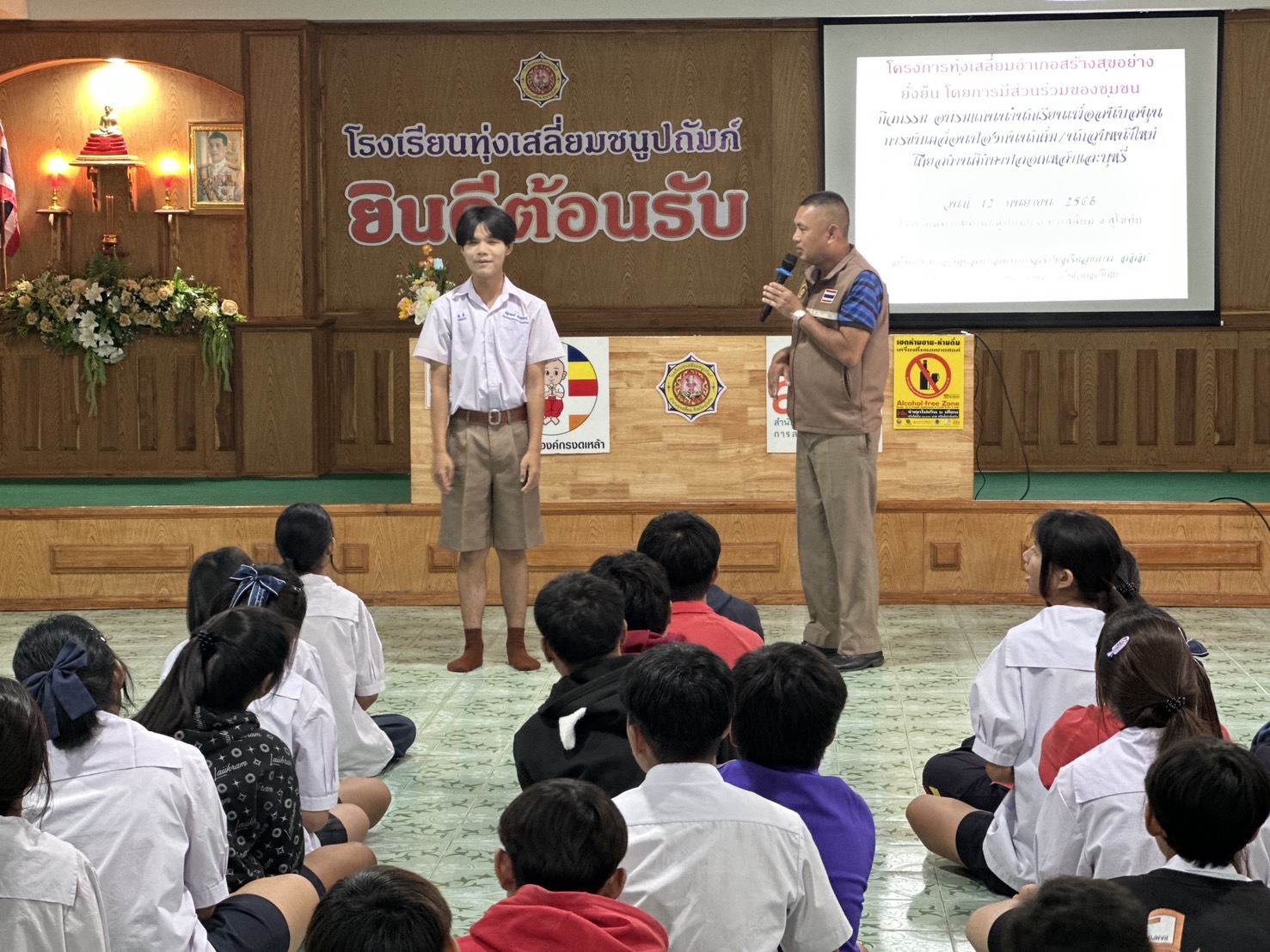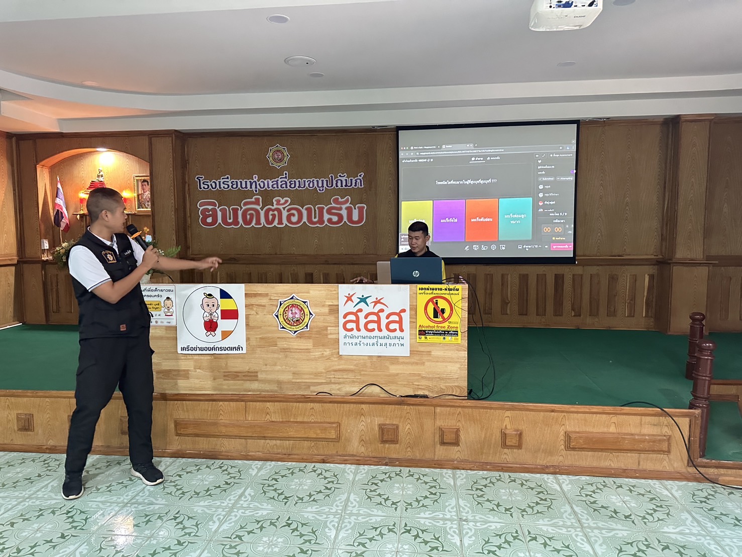 วันนี้ 12ก.ย.68 เวลา 10.00น. ภายใต้การอำนวยการของ พ.ต.อ.ธีรณัจต์ เมธาอรรถพงศ์ ผกก.สภ.ทุ่งเสลี่ยม พ.ต.ท.อิทธ์ฉัตรชัย เรืองชัยศิวเวท รอง ผกก.ป.สภ.ทุ่งเสลี่ยม มอบหมายให้ พ.ต.ต.ธัญศิษฐ์ โพธิ์เรือง สวป.สภ.ทุ่งเสลี่ยม ,ร.ต.อ.นพดล คำจินดา รอง สว.(ป.)สภ.ทุ่งเสลี่ยม พร้อมด้วยชุดปฏิบัติงานชุมชนสัมพันธ์ บรรยายให้ความรู้เกี่ยวกับบุหรี่ไฟฟ้า ในกิจกรรม อบรมแกนนำนักเรียนเพื่อสนับสนุนการขับเคลื่อนป้องกันนักดื่ม/นักสูบบุหรี่หน้าใหม่โดยสถานศึกษาปลอดเหล้าและบุหรี่ ให้กับนักเรียนชั้นมัธยมศึกษาตอนต้น ณ ห้องประชุม ร.ร.ทุ่งเสลี่ยมชนูปถัมภ์ การดำเนินการเป็นไปด้วยความเรียบร้อย