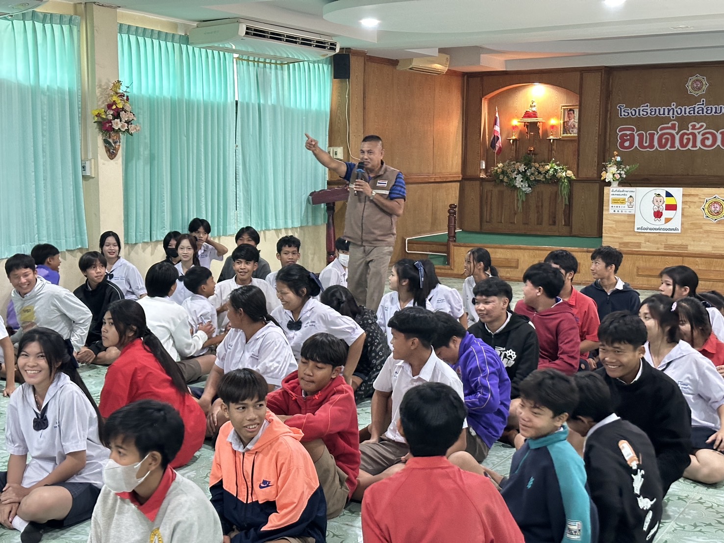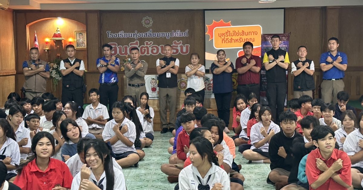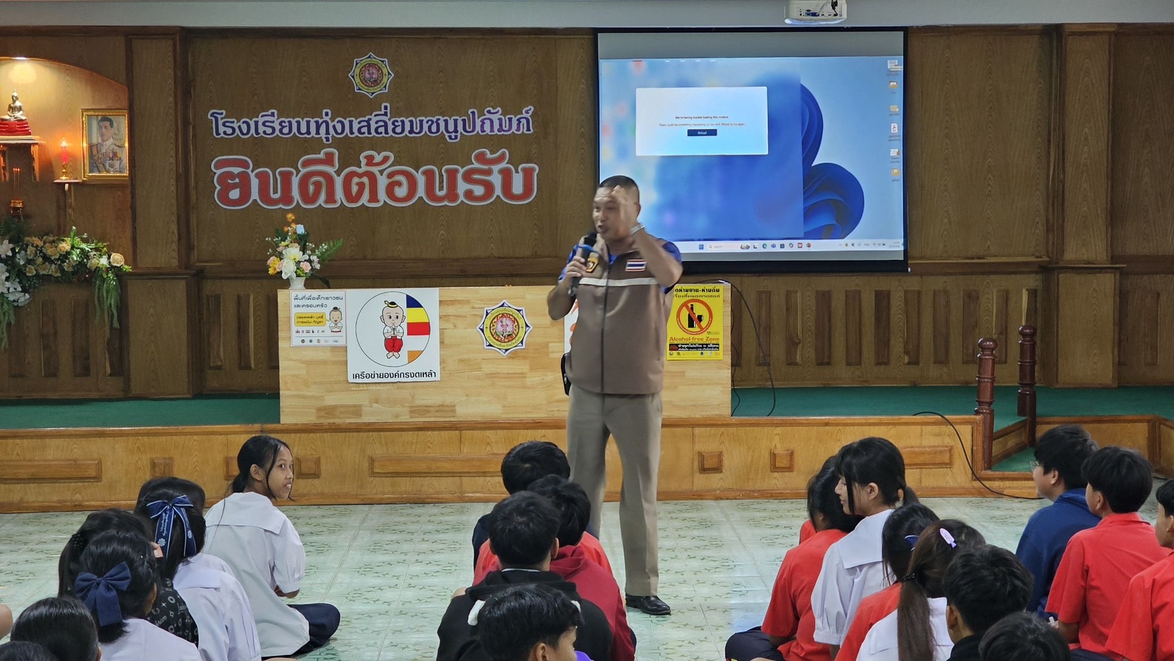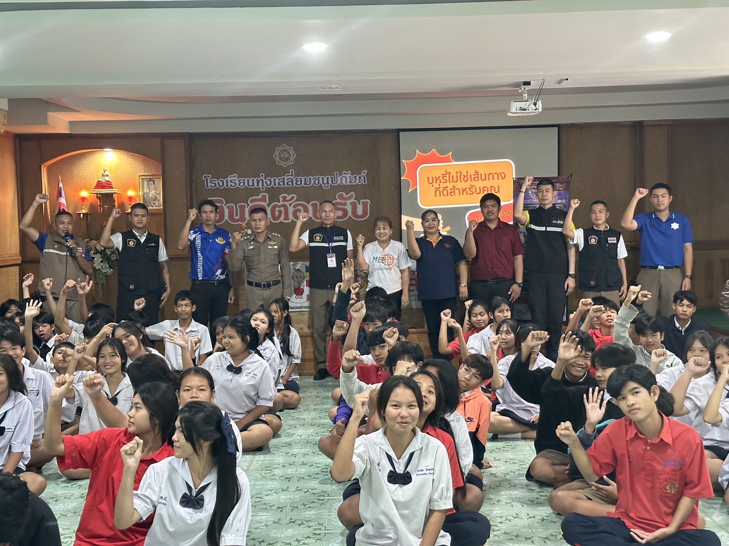 วันนี้ 12ก.ย.68 เวลา 10.00น. ภายใต้การอำนวยการของ พ.ต.อ.ธีรณัจต์ เมธาอรรถพงศ์ ผกก.สภ.ทุ่งเสลี่ยม พ.ต.ท.อิทธ์ฉัตรชัย เรืองชัยศิวเวท รอง ผกก.ป.สภ.ทุ่งเสลี่ยม มอบหมายให้ พ.ต.ต.ธัญศิษฐ์ โพธิ์เรือง สวป.สภ.ทุ่งเสลี่ยม ,ร.ต.อ.นพดล คำจินดา รอง สว.(ป.)สภ.ทุ่งเสลี่ยม พร้อมด้วยชุดปฏิบัติงานชุมชนสัมพันธ์ บรรยายให้ความรู้เกี่ยวกับบุหรี่ไฟฟ้า ในกิจกรรม อบรมแกนนำนักเรียนเพื่อสนับสนุนการขับเคลื่อนป้องกันนักดื่ม/นักสูบบุหรี่หน้าใหม่โดยสถานศึกษาปลอดเหล้าและบุหรี่ ให้กับนักเรียนชั้นมัธยมศึกษาตอนต้น ณ ห้องประชุม ร.ร.ทุ่งเสลี่ยมชนูปถัมภ์ การดำเนินการเป็นไปด้วยความเรียบร้อย