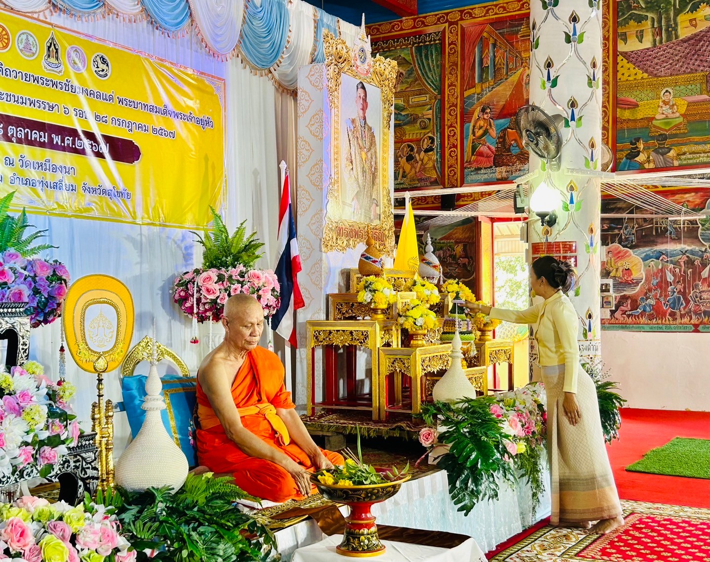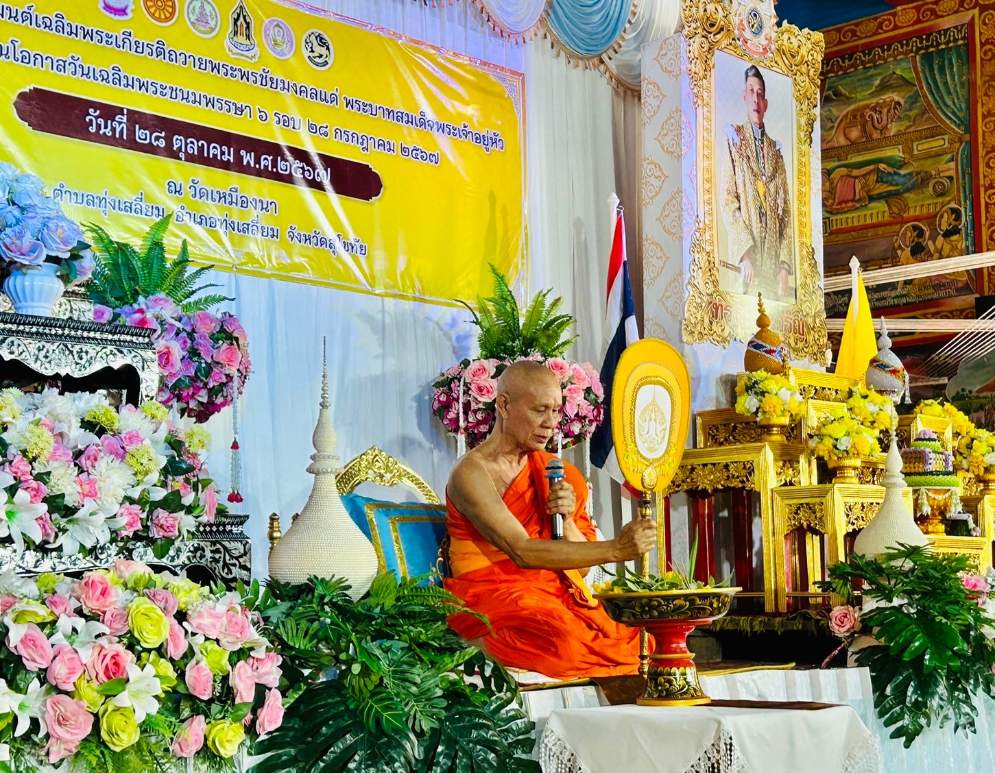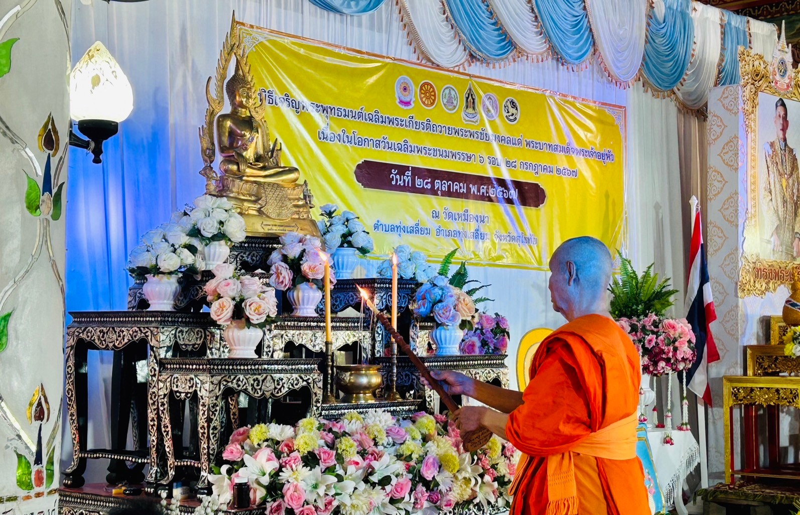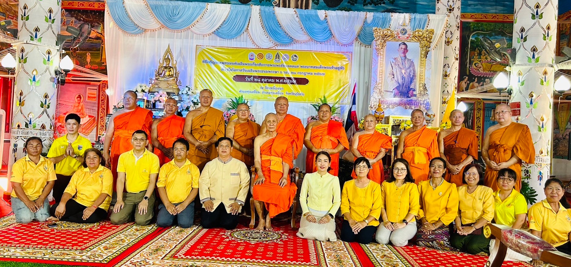 วันที่ 28 ตุลาคม พ.ศ.2567 เวลา 15.00 น. ภายใต้การอำนวยการของ พ.ต.อ.นิคม พรมพิราม ผกก.สภ.ทุ่งเสลี่ยม มอบหมายให้ พ.ต.ท.สัมฤทธิ์ ทองมี สวป.สภ.ทุ่งเสลี่ยม เข้าร่วมพิธีเจริญพระพุทธมนต์เฉลิมพระเกียรติ ถวายพระพรชัยมงคลแด่พระบาทสมเด็จพระเจ้าอยู่หัว เนื่องในโอกาสวันเฉลิมพระชนมพรรษา 6 รอบ 28 กรกฎาคม 2567 โดยนางสุภาวิณี นวลหงษ์ นายอำเภอทุ่งเสลี่ยม เป็นประธานพิธีและมีส่วนราชการ องค์กรปกครองส่วนท้องถิ่น เจ้าหน้าที่ กำนันตำบลทุ่งเสลี่ยม ผู้ใหญ่บ้านตำบลทุ่งเสลี่ยมและประชาชนในพื้นที่ เข้าร่วมกิจกรรมโดยพร้อมเพรียงกัน ณ วิหารวัดเหมืองนา ต.ทุ่งเสลี่ยม อ.ทุ่งเสลี่ยมฯ การดำเนินการเป็นไปด้วยความเรียบร้อย