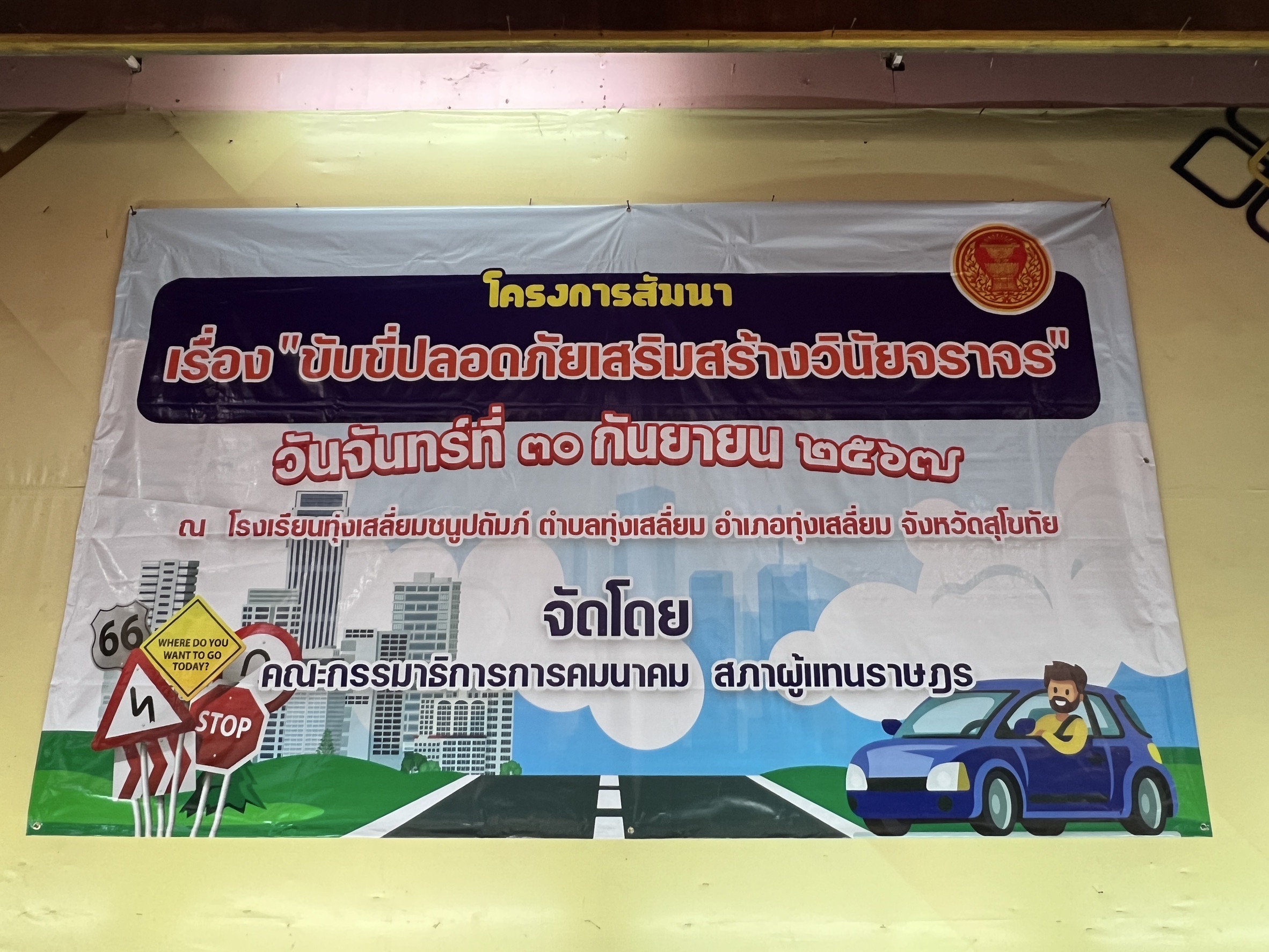 วันนี้( 30 ก.ย. 67 ) เวลา 08.30 น. ภายใต้อำนวยการสั่งการของ พ.ต.อ.นิคม พรมพิราม ผกก.สภ.ทุ่งเสลี่ยม มอบหมวยให้ พ.ต.ท.สุกิจ ประกิจ รอง ผกก.ป.สภ.ทุ่งเสลี่ยม ชุด 60 สายตรวจจราจร ร่วมกับ น.ส.ประภาพร ทองปากน้ำ สมาชิกสภาผู้แทนราษฎร จังหวัดสุโขทัย และสำนักงานขนส่งจังหวัดสุโขทัย ร่วมเป็นวิทยากรอบรมโครงการขับขี่ปลอดภัย เสริมสร้างวินัยจราจร ณ ห้องประชุม โรงเรียนทุ่งเสลี่ยมชนูปถัมภ์ การดำเนินการเป็นไปด้วยความเรียบร้อย