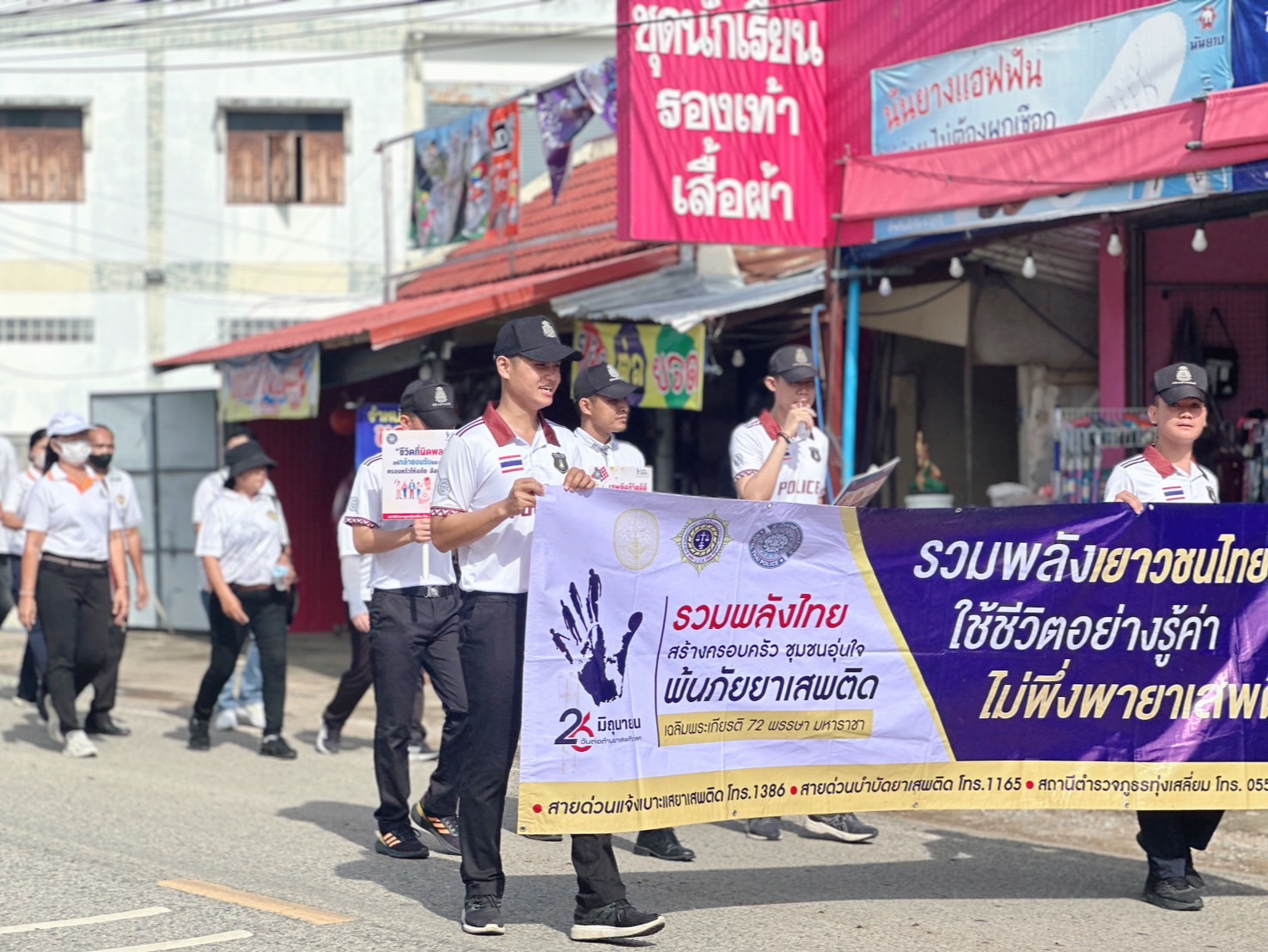 วันนี้ 25มิ.ย.68 เวลา 08.00น. พ.ต.อ.ธีรณัจต์ เมธาอรรถพงศ์ ผกก.สภ.ทุ่งเสลี่ยม มอบหมายให้ พ.ต.ท อิทธ์ฉัตรชัย เรืองชัยศิวเวท รองผกก.ป.สภ.ทุ่งเสลี่ยม พร้อมด้วยข้าราชตำรวจ สภ.ทุ่งเสลี่ยม เข้าร่วมกิจกรรมรณรงค์ต่อต้านยาเสพติด อ.ทุ่งเสลี่ยม ตั้งแต่โรงเรียนบ้านท่าชุม(ประชาอุทิศวิทยาคาร)ไปยังลานกิจกรรมอาคารโดมโรงเรียนทุ่งเสลี่ยมชนูปถัมภ์ การดำเนินการเป็นไปด้วยความเรียบร้อย