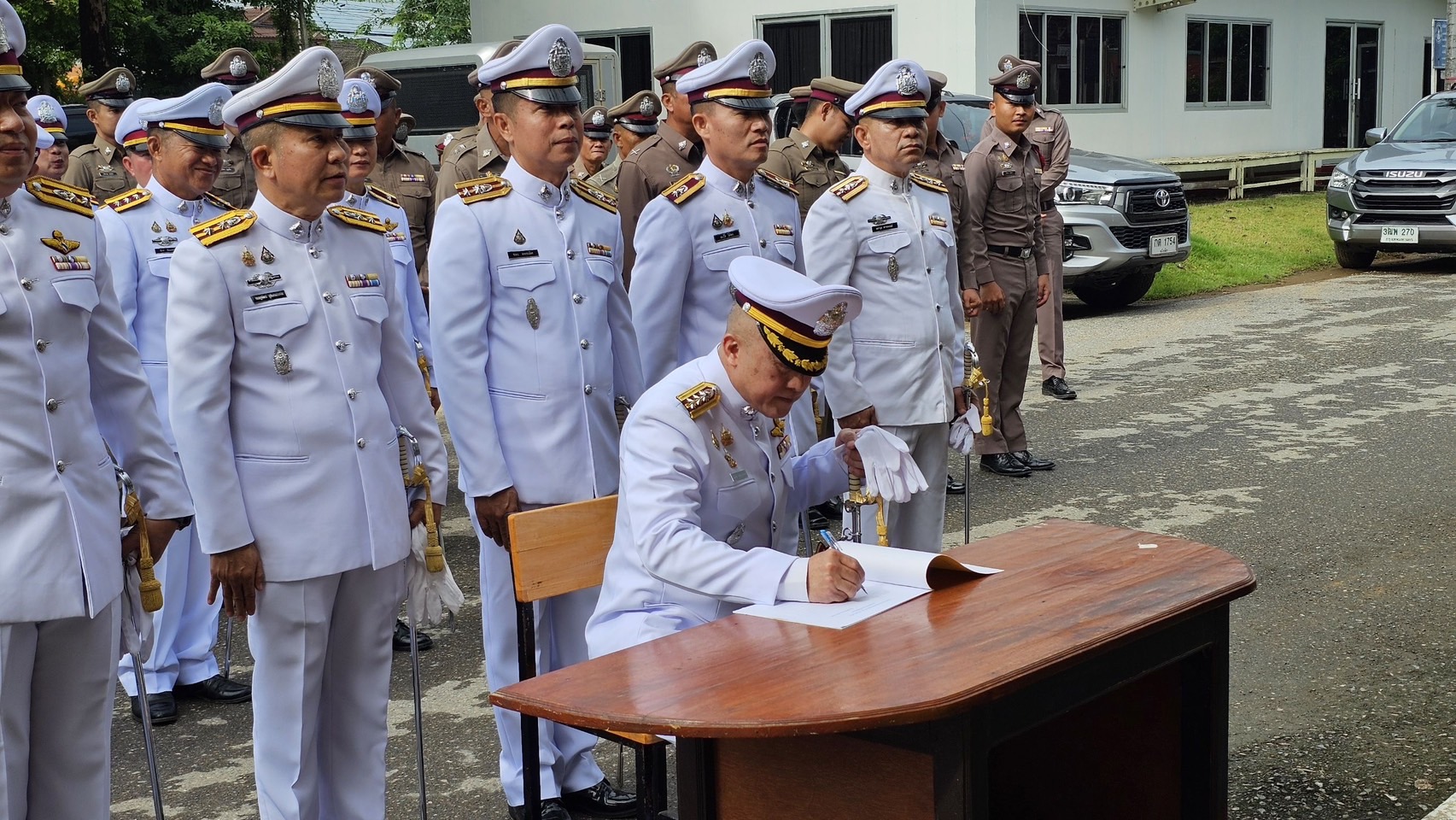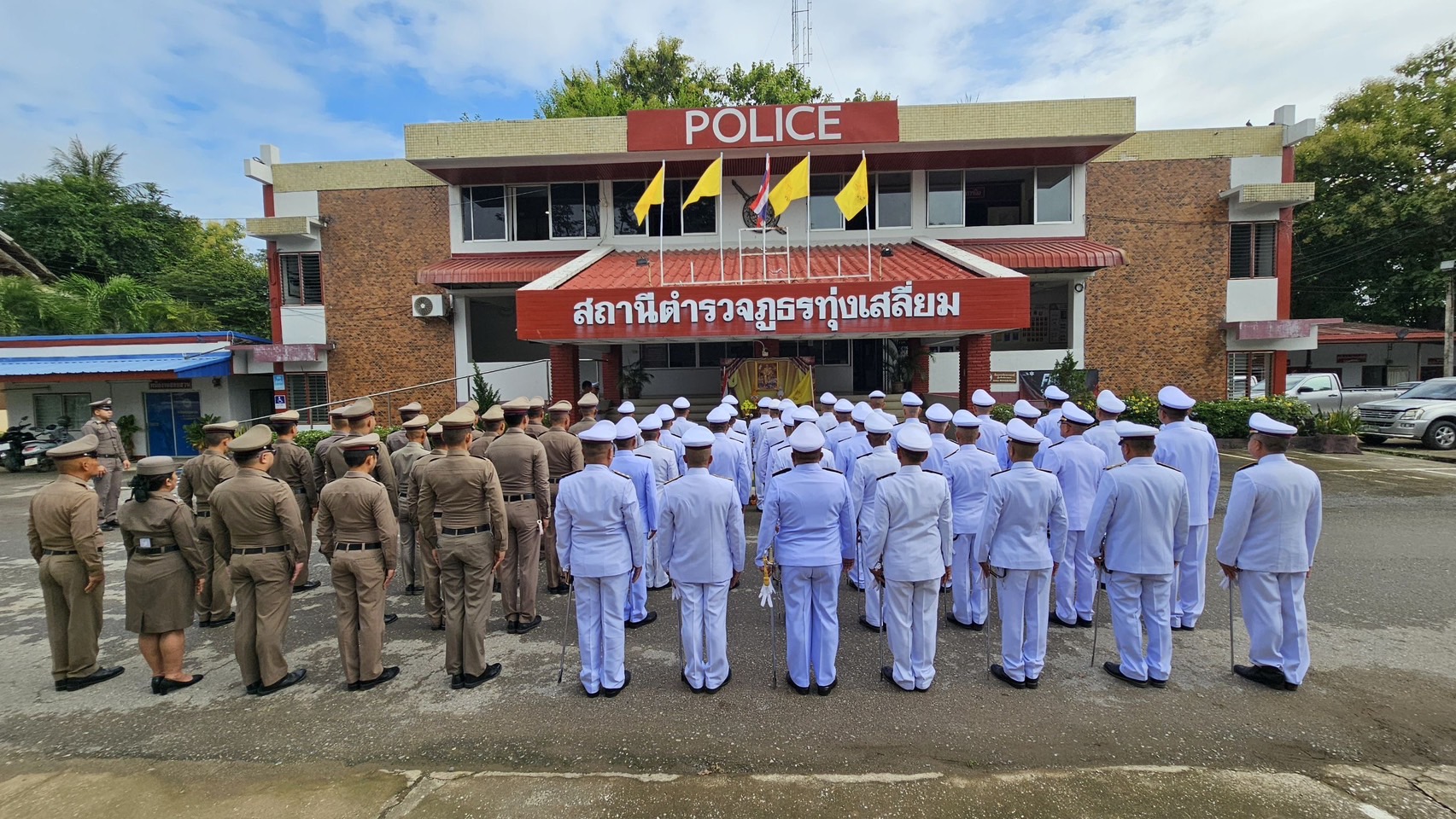 วันนี้ (28 ก.ค.68) เวลา 09.00 น. พ.ต.อ.ธีรณัจต์ เมธาอรรถพงศ์ ผกก.สภ.ทุ่งเสลี่ยม พร้อมด้วยข้าราชการตำรวจ สภ.ทุ่งเสลี่ยม ร่วมพิธีเคารพธงชาติ ถวายพระพรชัยมงคล และพิธีถวายสัตย์ปฏิญาณ เพื่อเป็นข้าราชการที่ดีและพลังของแผ่นดิน และร่วมลงนามถวายพระพรหน้าพระบรมฉายาลักษณ์พระบาทสมเด็จพระเจ้าอยู่หัว เนื่องในโอกาสวันเฉลิมพระชนมพรรษา 28 กรกฎาคม 2568 ณ บริเวณหน้า สภ.ทุ่งเสลี่ยม จ.สุโขทัย