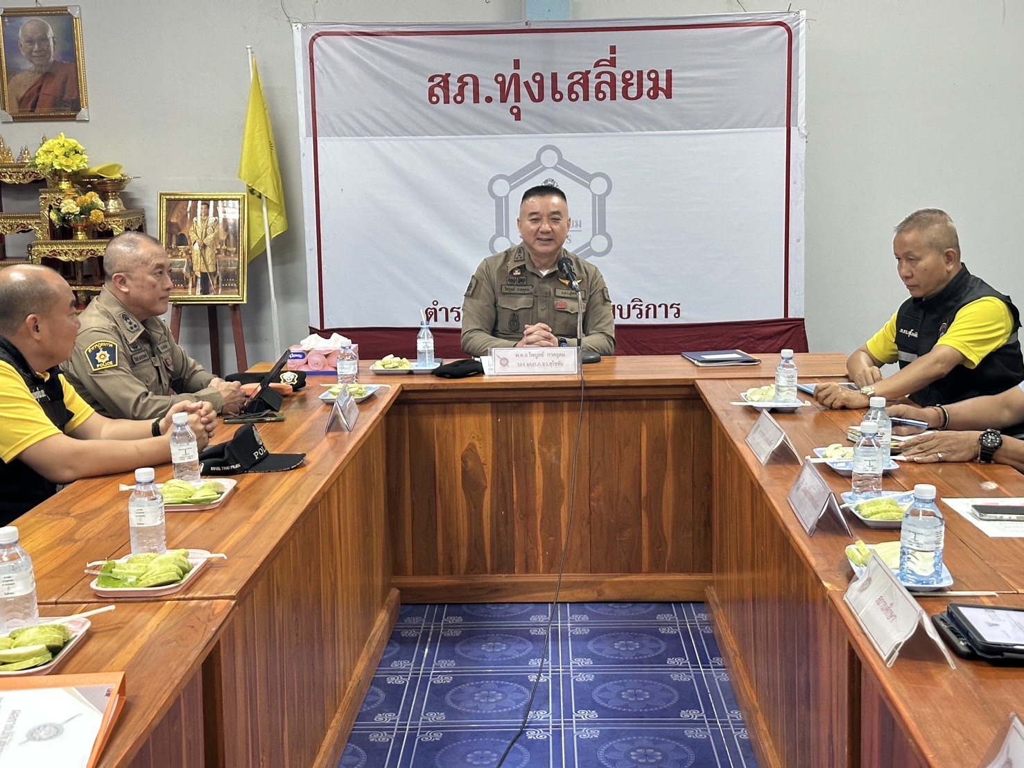วันนี้ 26ส.ค.68 เวลา 13.30น. พ.ต.อ.ธีรณัจต์ เมธาอรรถพงศ์ ผกก.สภ.ทุ่งเสลี่ยม พร้อมด้วยชุดปฏิบัติการชุมชนสัมพันธ์ สภ.ทุ่งเสลี่ยม และภาคีเครือข่าย ให้การต้อนรับ พ.ต.อ.ไพบูลย์ กาศอุดม รอง ผบก.ภ.จว.สุโขทัย พร้อมคณะตรวจติดตาม รวม 5 นาย ที่ได้ออกตรวจติดตามประเมินผลการปฏิบัติงาน ของ สภ.ทุ่งเสลี่ยมในงานกองทุนหมู่บ้านและชุมชนเมือง(กทบ.) และให้คำแนะนำงานชุมชนสัมพันธุ์ และการมีส่วนร่วมของประชาชน ในการป้องกันอาชญากรรมประจำปีงบประมาณ 2568 ณ ห้องประชุม สภ.ทุ่งเสลี่ยม