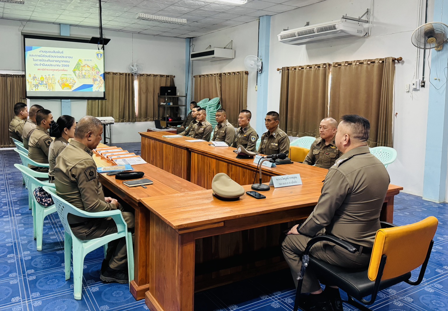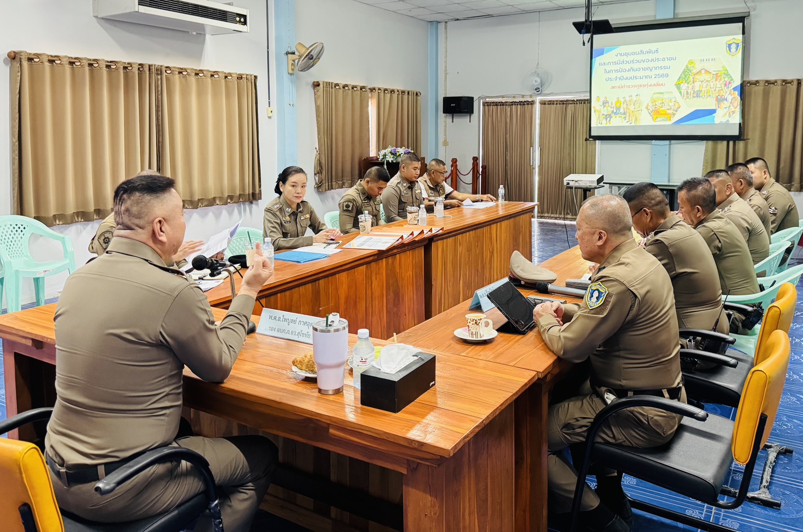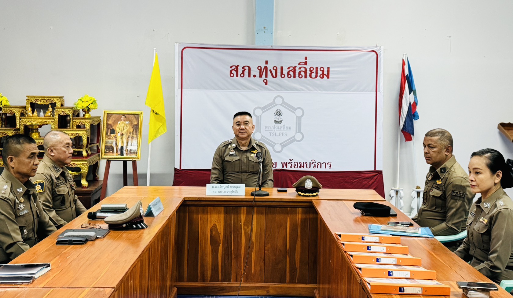 วันที่ 18 มี.ค.69 เวลา 13.30น. พ.ต.อ.ธีรณัจต์ เมธาอรรถพงศ์ ผกก.สภ.ทุ่งเสลี่ยม พร้อมด้วยชุดปฏิบัติการชุมชนสัมพันธ์ สภ.ทุ่งเสลี่ยม ให้การต้อนรับ พ.ต.อ.ไพบูลย์ กาศอุดม รอง ผบก.ภ.จว.สุโขทัย พร้อมคณะตรวจติดตาม ที่ได้ออกตรวจติดตามประเมินผลการปฏิบัติงานชุมชนสัมพันธ์ ของ สภ.ทุ่งเสลี่ยม ให้คำแนะนำงานชุมชนสัมพันธ์ และการมีส่วนร่วมของประชาชน ในการป้องกันอาชญากรรมประจำปีงบประมาณ 2569 ณ ห้องประชุม สภ.ทุ่งเสลี่ยม การดำเนินการเป็นไปด้วยความเรียบร้อย