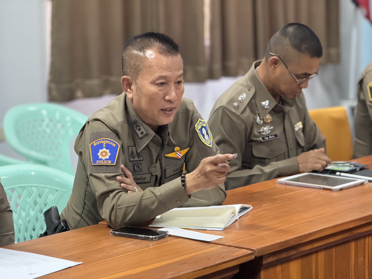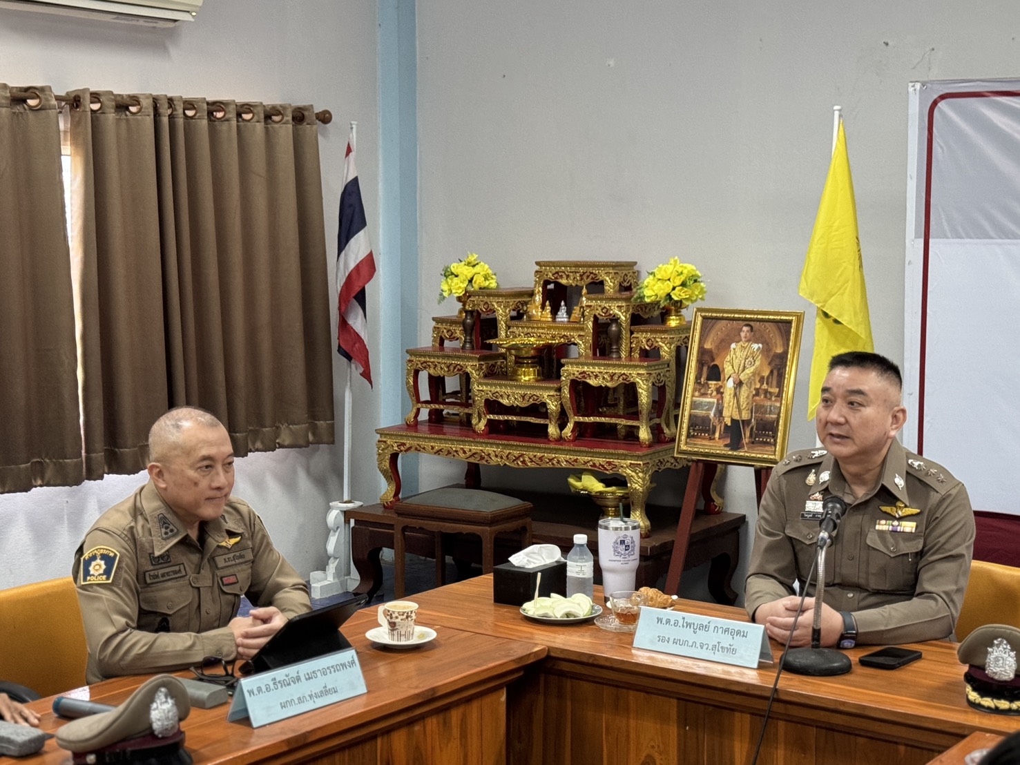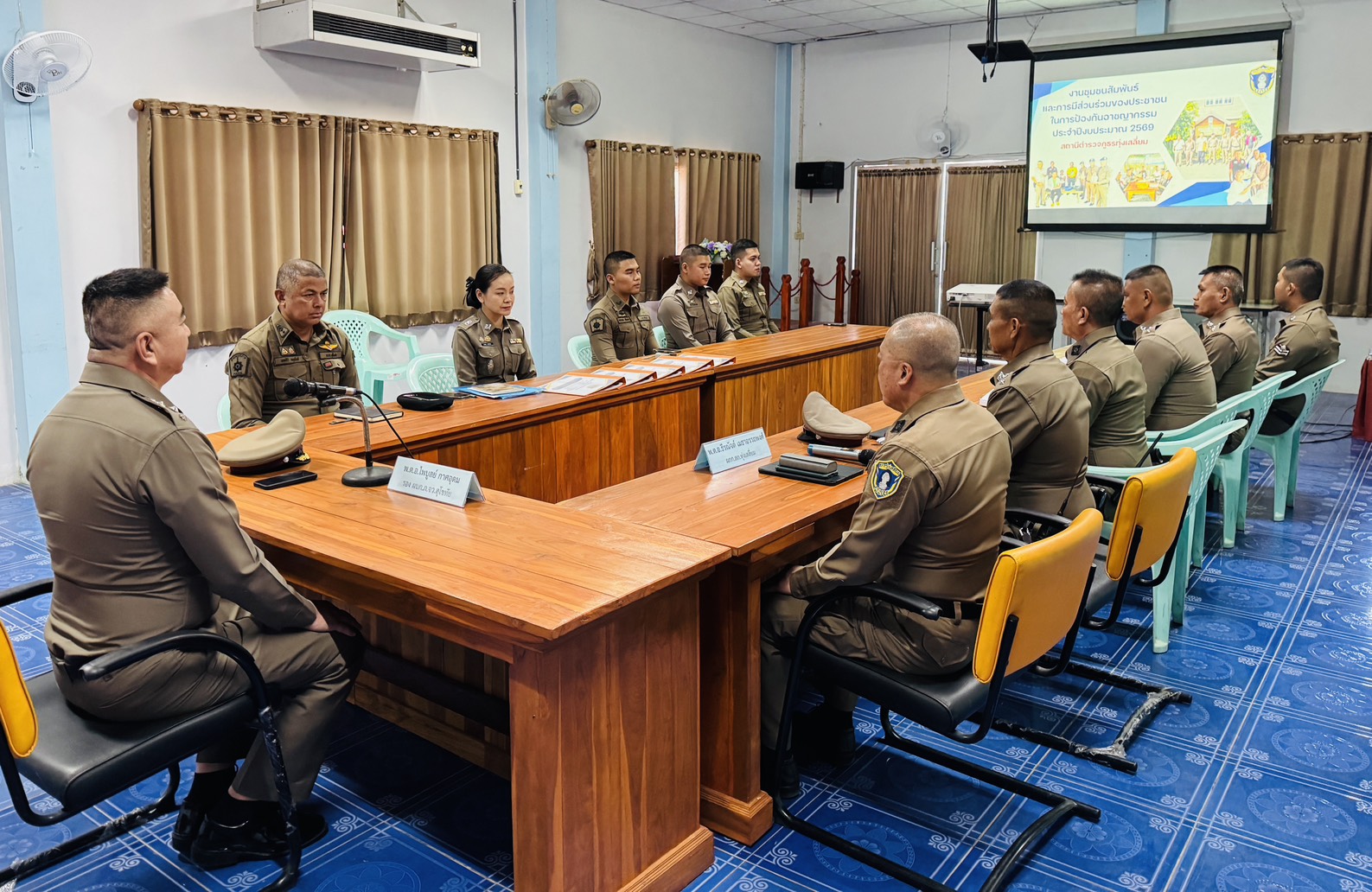 วันที่ 18 มี.ค.69 เวลา 13.30น. พ.ต.อ.ธีรณัจต์ เมธาอรรถพงศ์ ผกก.สภ.ทุ่งเสลี่ยม พร้อมด้วยชุดปฏิบัติการชุมชนสัมพันธ์ สภ.ทุ่งเสลี่ยม ให้การต้อนรับ พ.ต.อ.ไพบูลย์ กาศอุดม รอง ผบก.ภ.จว.สุโขทัย พร้อมคณะตรวจติดตาม ที่ได้ออกตรวจติดตามประเมินผลการปฏิบัติงานชุมชนสัมพันธ์ ของ สภ.ทุ่งเสลี่ยม ให้คำแนะนำงานชุมชนสัมพันธ์ และการมีส่วนร่วมของประชาชน ในการป้องกันอาชญากรรมประจำปีงบประมาณ 2569 ณ ห้องประชุม สภ.ทุ่งเสลี่ยม การดำเนินการเป็นไปด้วยความเรียบร้อย