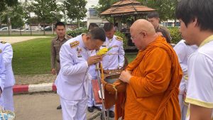 และเวลา 18.30น. พ.ต.อ.นิคม พรมพิราม ผกก.สภ.ทุ่งเสลี่ยม มอบหมายให้ พ.ต.ท.สราวุธ สาระมนต์ สส.อก.สภ.ทุ่งเสลี่ยมพร้อมด้วยข้าราชการตำรวจ สภ.ทุ่งเสลี่ยม เข้าร่วม พิธีถวายเครื่องราชสักการะและวางพานพุ่ม และจุดเทียนชัยถวายพระพรชัยมงคล เนื่องในโอกาสวันเฉลิมพระชนมพรรษา 12 สิงหาคม 2567 ณ ศาลาประชาคมอำเภอทุ่งเสลี่ยม ณ ศาลาประชาคมอำเภอทุ่งเสลี่ยม การดำเนินการเป็นไปด้วยความเรียบร้อย