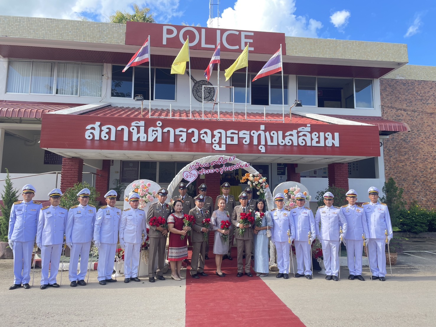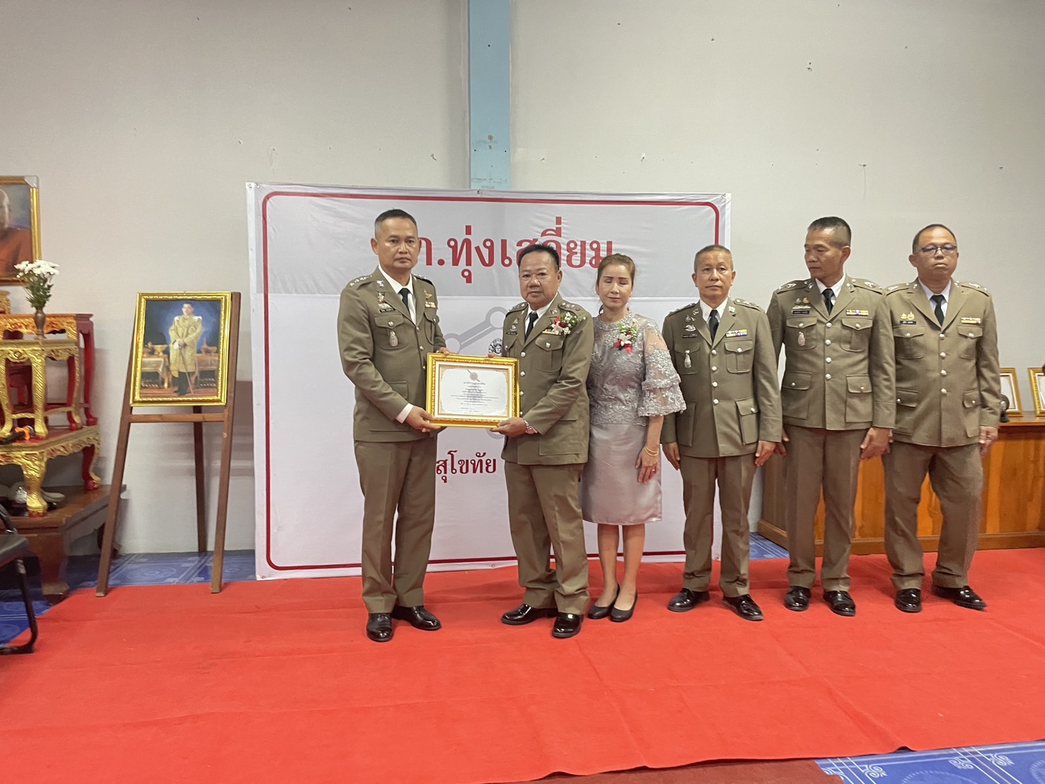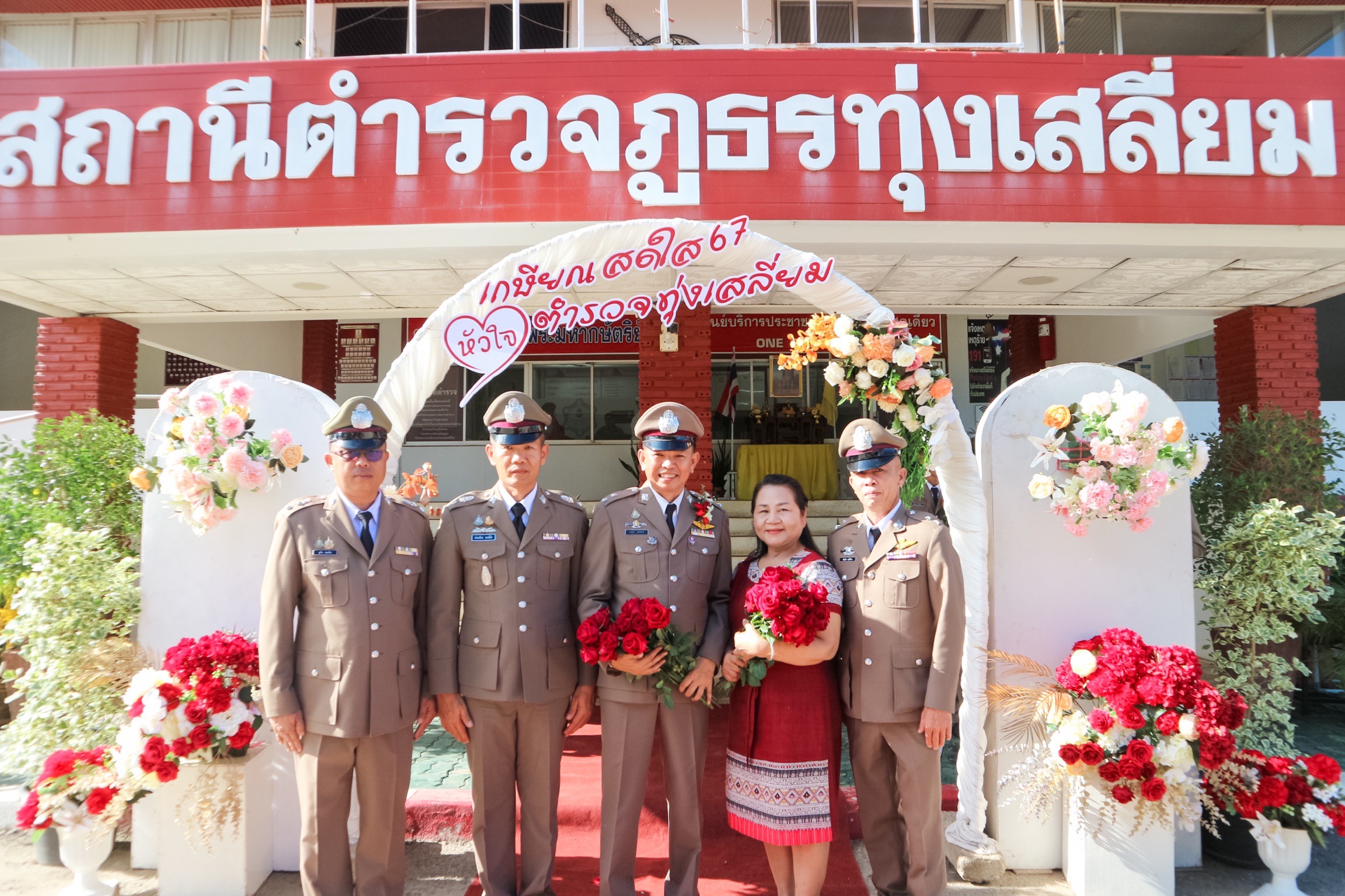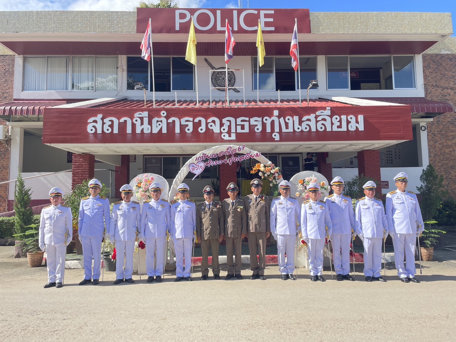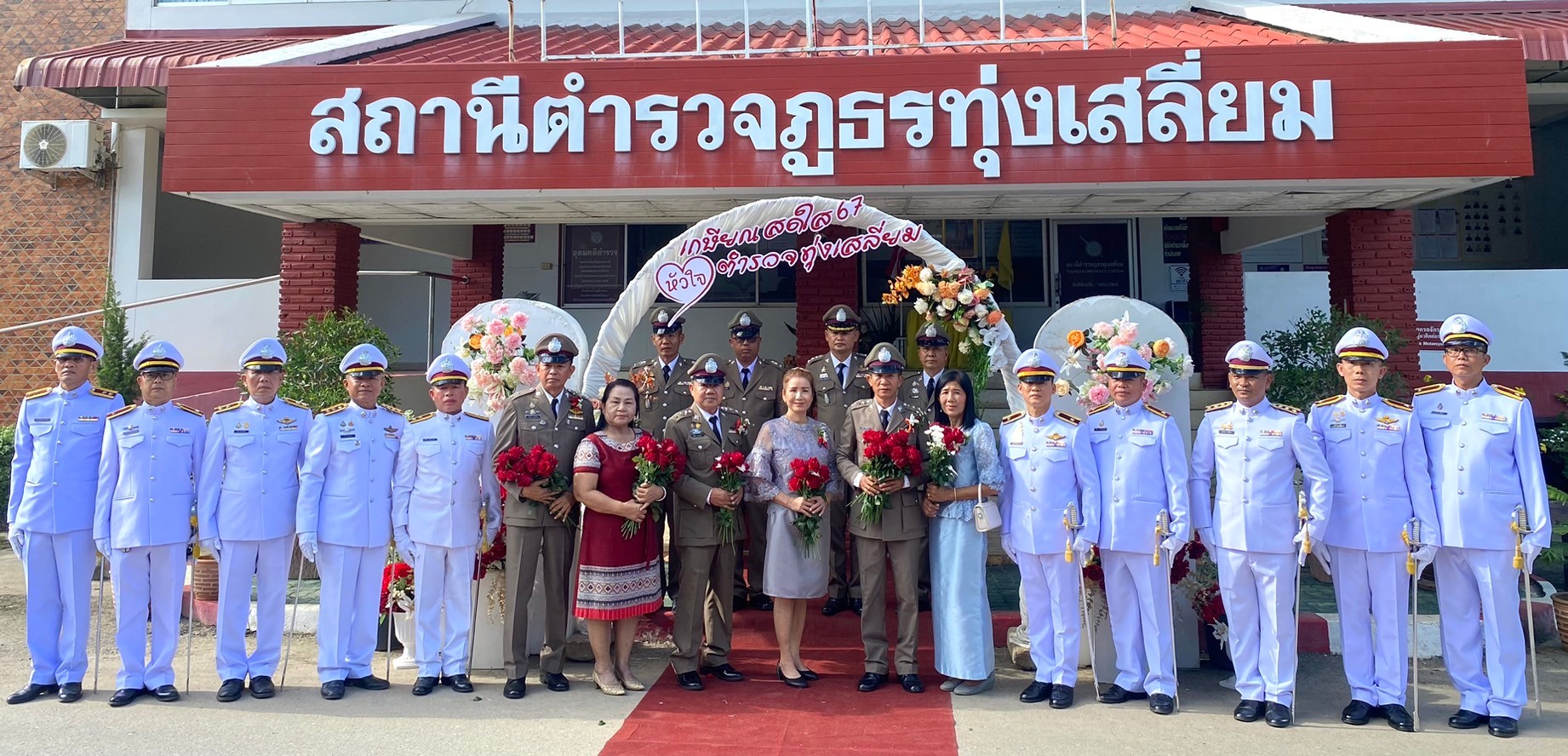 วันที่ 26 กันยายน 2567 พ.ต.อ.นิคม พรมพิราม ผกก.สภ.ทุ่งเสลี่ยม พร้อมด้วยพี่น้องข้าราชการตำรวจ สภ.ทุ่งเสลี่ยม ร่วมกล่าวแสดงความยินดีและอวยพรแก่ข้าราชการตำรวจผู้เกษียณอายุราชการและผู้เข้าร่วมโครงการปรับเปลี่ยนกำลังพล โดยในพิธีมีการลอดซุ้มกระบี่ การถ่ายภาพที่ระลึก และมอบของที่ระลึก หลังจากนั้น มีการแสดงมุทิตาจิตแด่ ผู้เกษียณอายุราชการ ก่อนเสร็จพิธีมีการถ่ายภาพหมู่ร่วมกัน มอบดอกไม้ เพื่อเป็นการเชิดชูเกียรติผู้เกษียณอายุราชการ