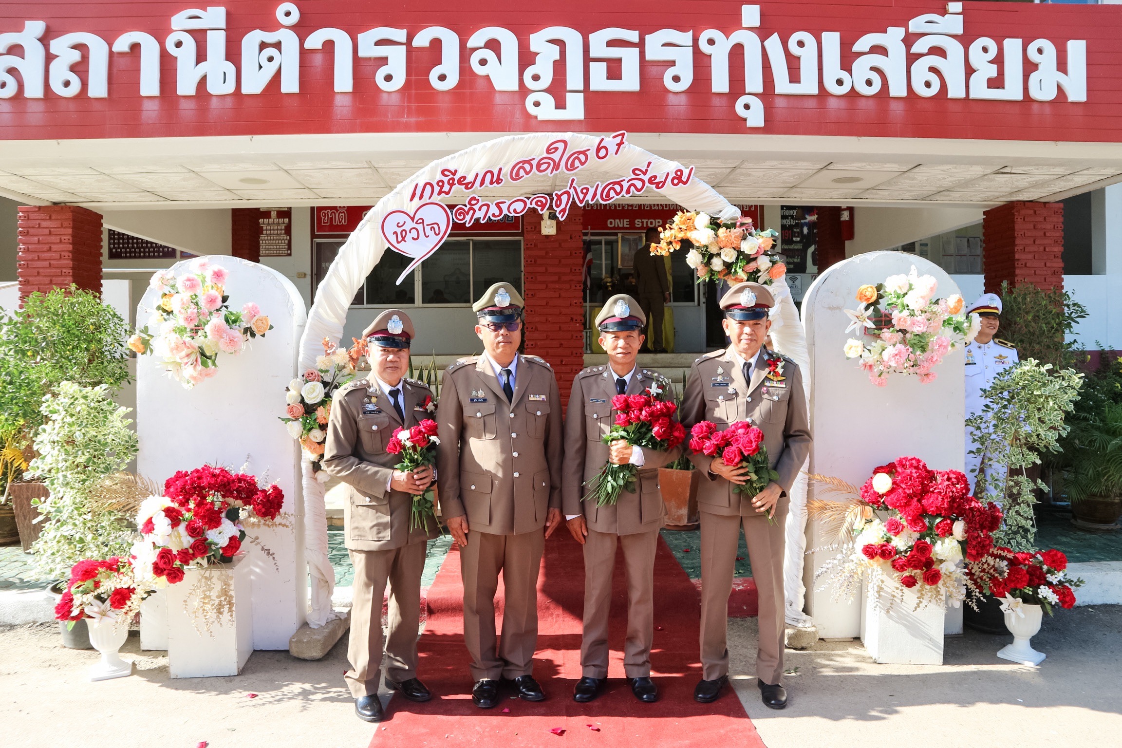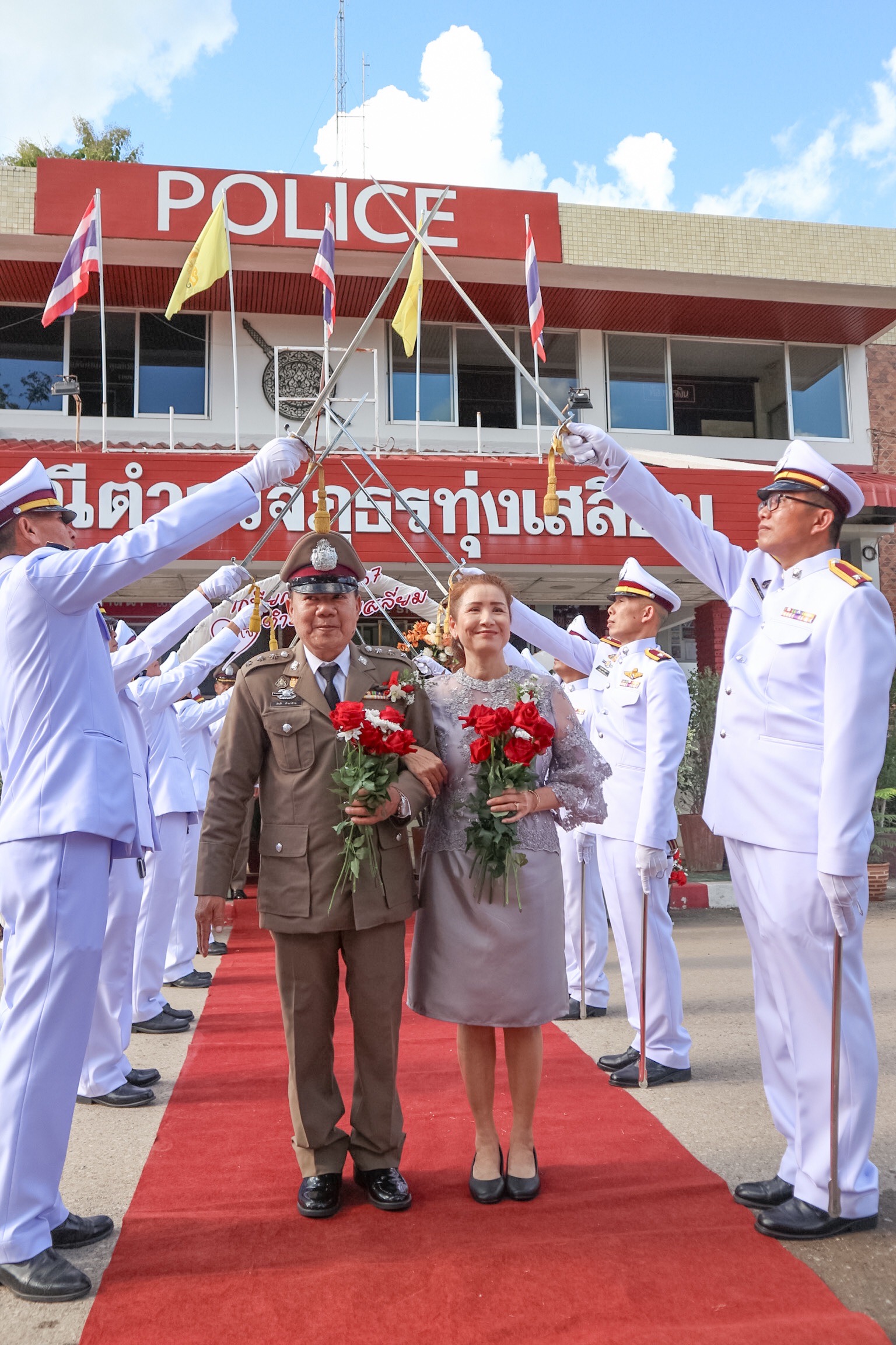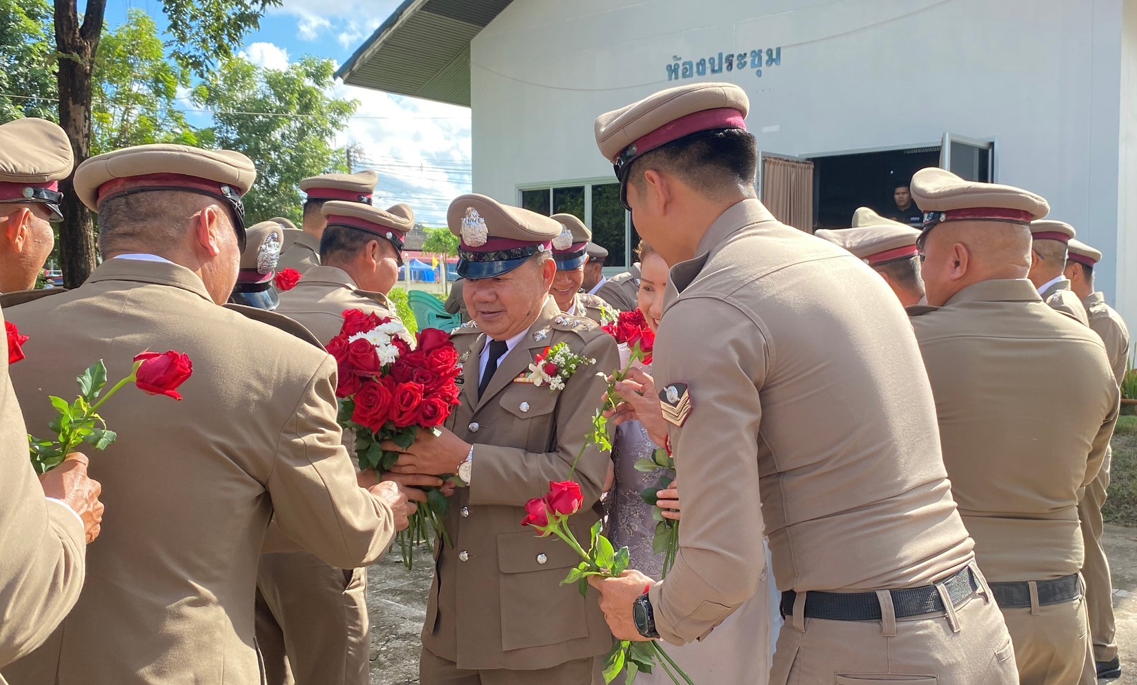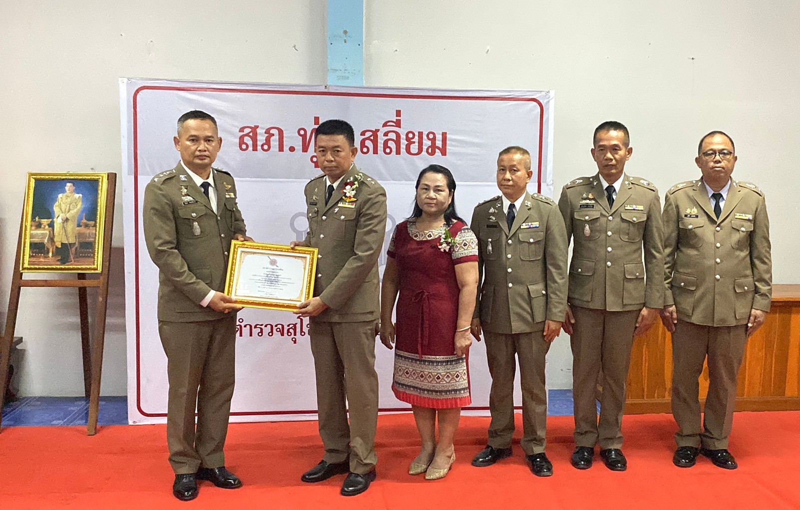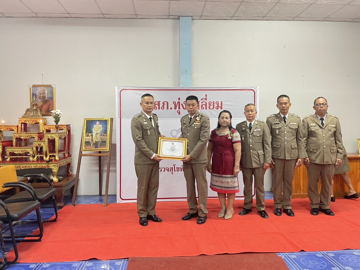 วันที่ 26 กันยายน 2567 พ.ต.อ.นิคม พรมพิราม ผกก.สภ.ทุ่งเสลี่ยม พร้อมด้วยพี่น้องข้าราชการตำรวจ สภ.ทุ่งเสลี่ยม ร่วมกล่าวแสดงความยินดีและอวยพรแก่ข้าราชการตำรวจผู้เกษียณอายุราชการและผู้เข้าร่วมโครงการปรับเปลี่ยนกำลังพล โดยในพิธีมีการลอดซุ้มกระบี่ การถ่ายภาพที่ระลึก และมอบของที่ระลึก หลังจากนั้น มีการแสดงมุทิตาจิตแด่ ผู้เกษียณอายุราชการ ก่อนเสร็จพิธีมีการถ่ายภาพหมู่ร่วมกัน มอบดอกไม้ เพื่อเป็นการเชิดชูเกียรติผู้เกษียณอายุราชการ
