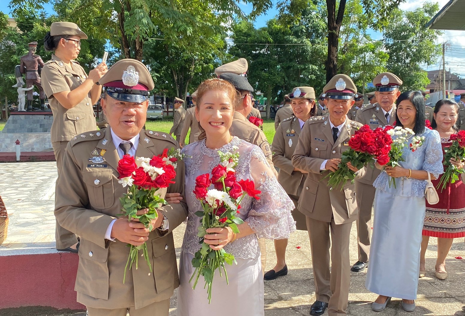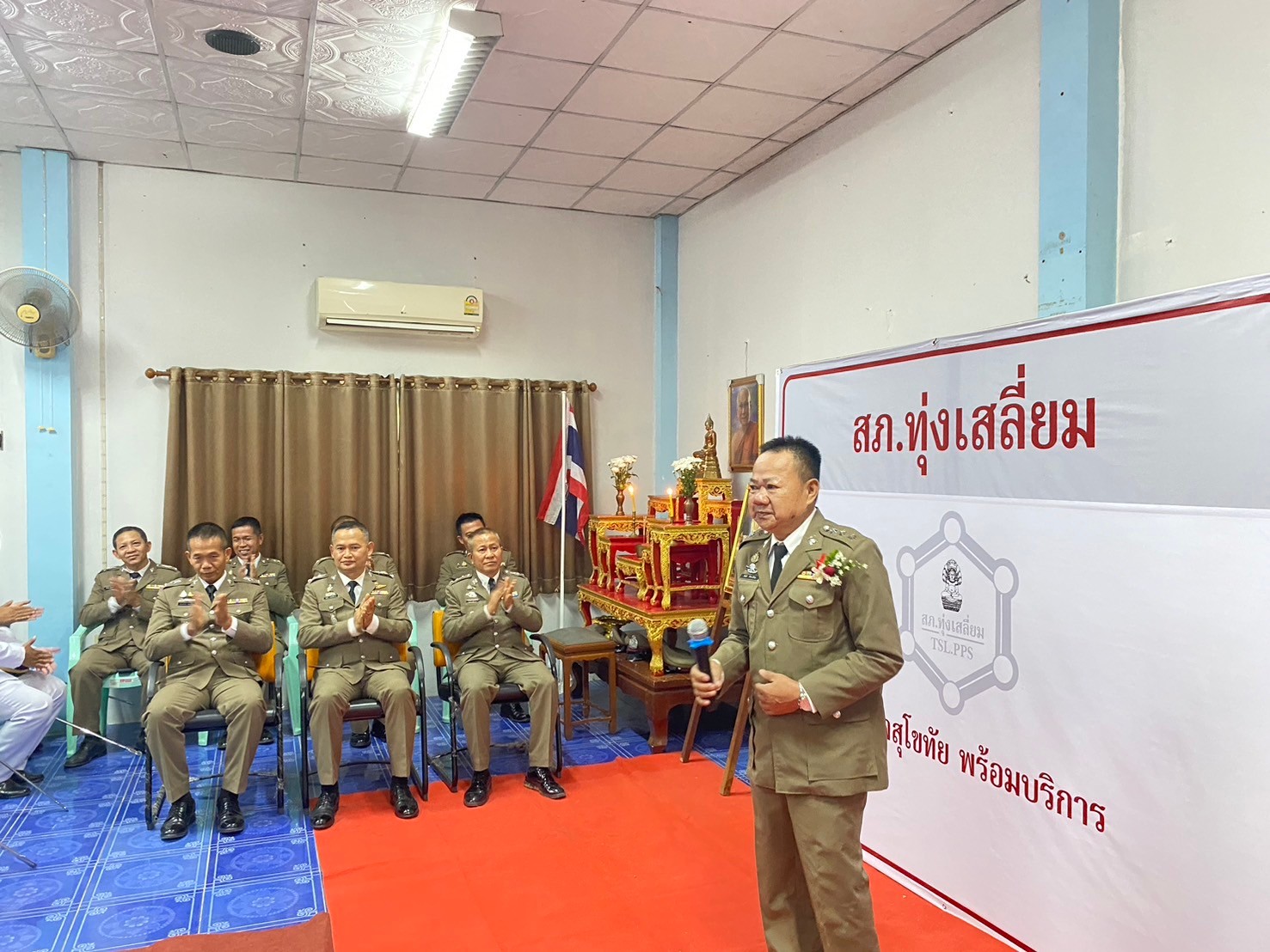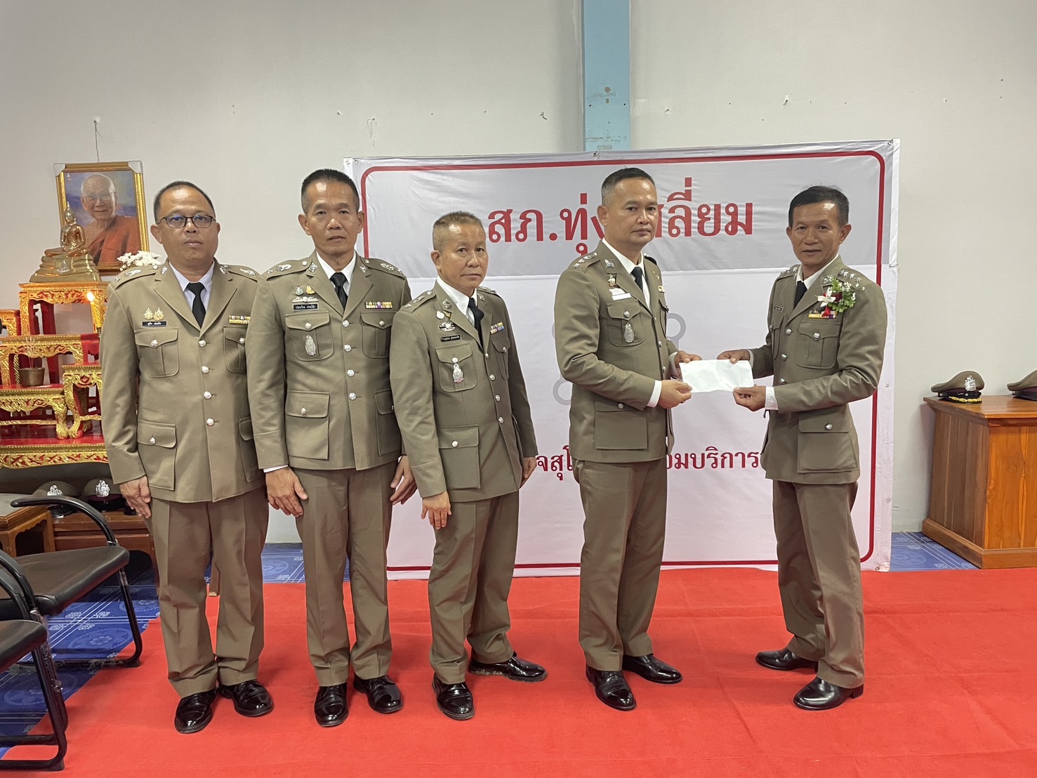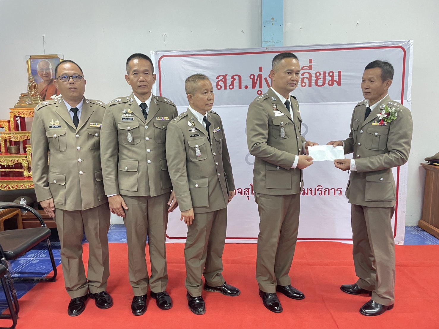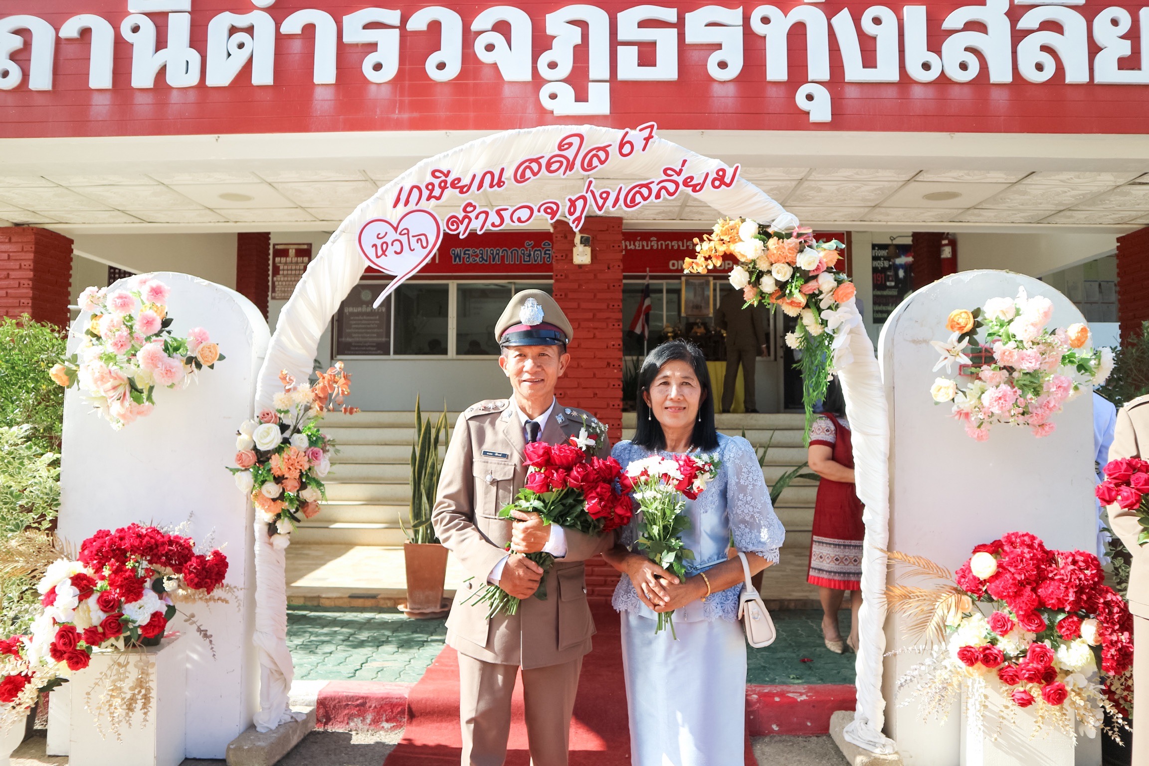 วันที่ 26 กันยายน 2567 พ.ต.อ.นิคม พรมพิราม ผกก.สภ.ทุ่งเสลี่ยม พร้อมด้วยพี่น้องข้าราชการตำรวจ สภ.ทุ่งเสลี่ยม ร่วมกล่าวแสดงความยินดีและอวยพรแก่ข้าราชการตำรวจผู้เกษียณอายุราชการและผู้เข้าร่วมโครงการปรับเปลี่ยนกำลังพล โดยในพิธีมีการลอดซุ้มกระบี่ การถ่ายภาพที่ระลึก และมอบของที่ระลึก หลังจากนั้น มีการแสดงมุทิตาจิตแด่ ผู้เกษียณอายุราชการ ก่อนเสร็จพิธีมีการถ่ายภาพหมู่ร่วมกัน มอบดอกไม้ เพื่อเป็นการเชิดชูเกียรติผู้เกษียณอายุราชการ
