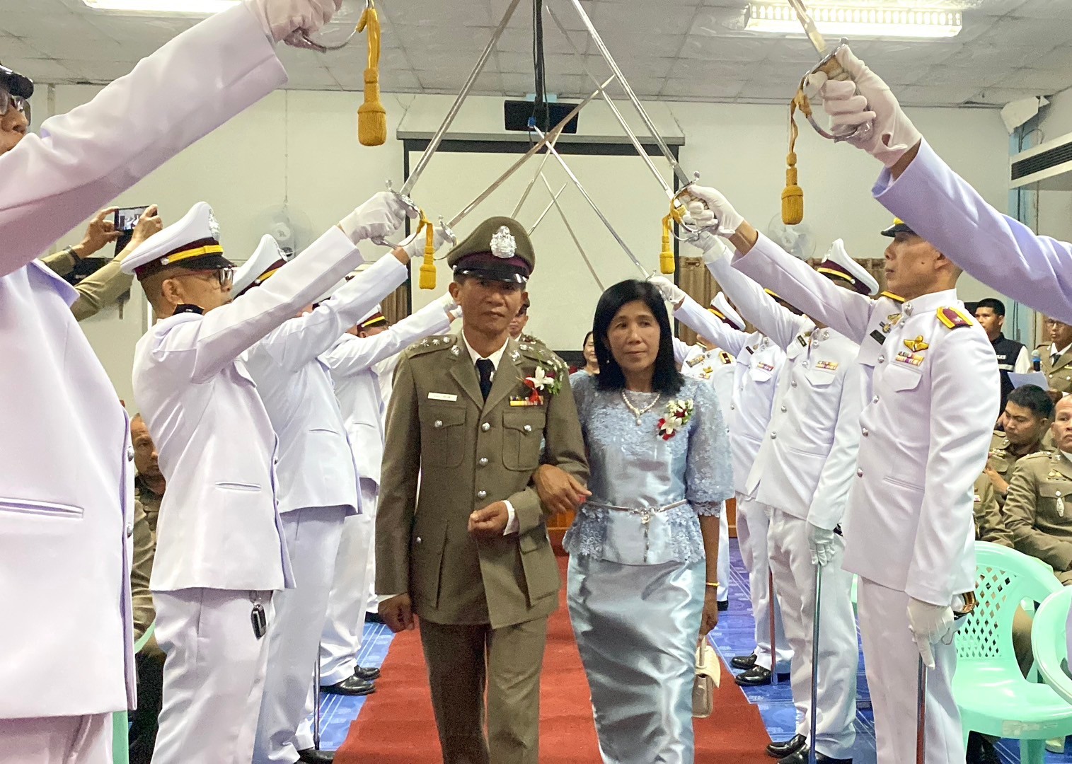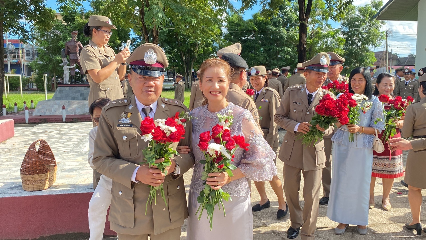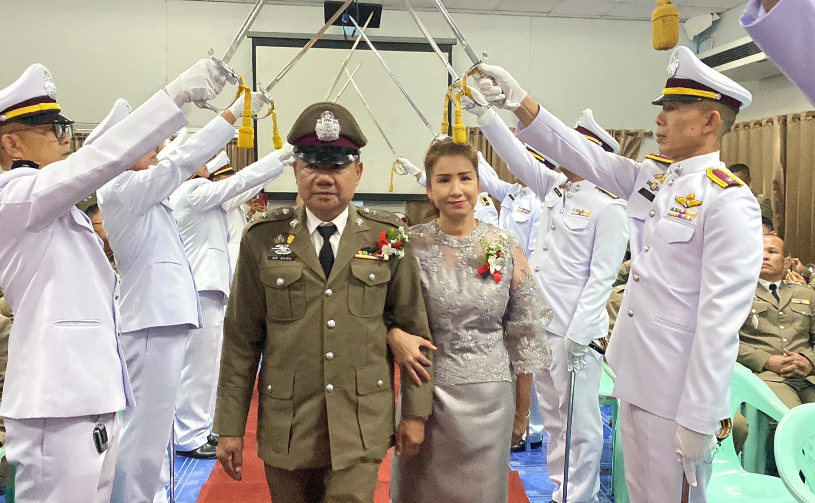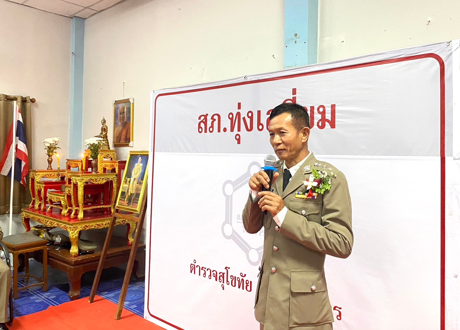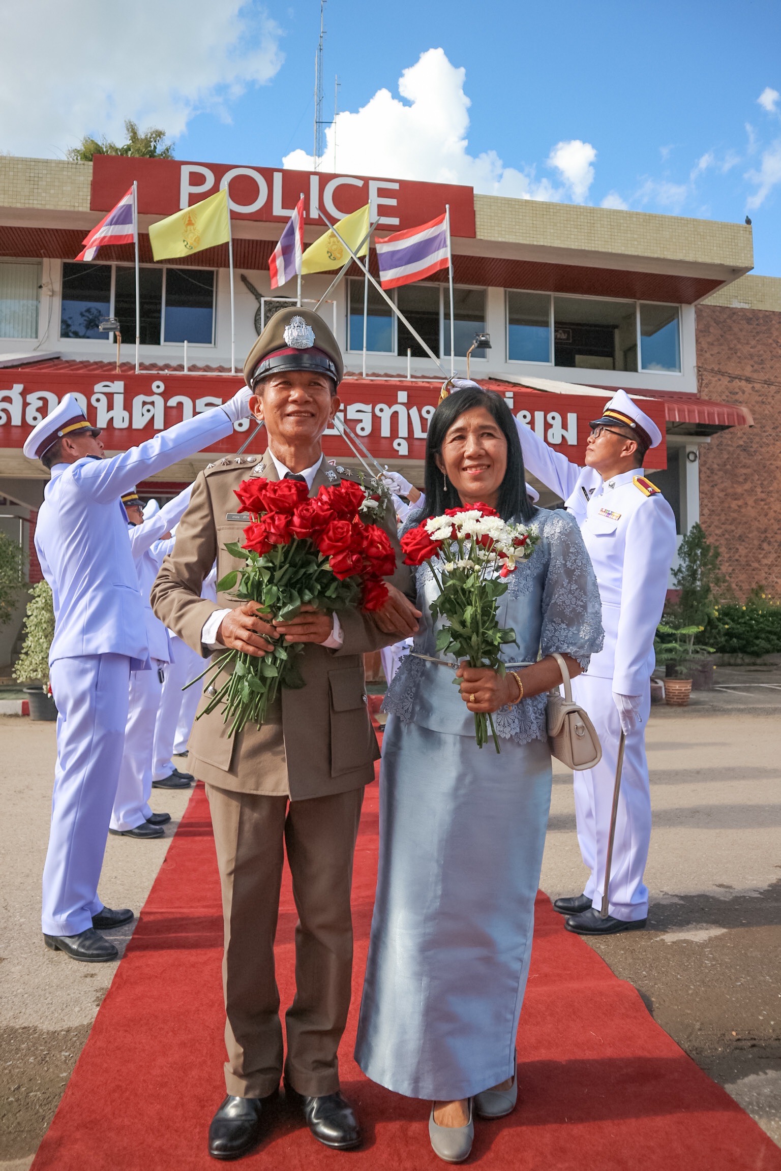 วันที่ 26 กันยายน 2567 พ.ต.อ.นิคม พรมพิราม ผกก.สภ.ทุ่งเสลี่ยม พร้อมด้วยพี่น้องข้าราชการตำรวจ สภ.ทุ่งเสลี่ยม ร่วมกล่าวแสดงความยินดีและอวยพรแก่ข้าราชการตำรวจผู้เกษียณอายุราชการและผู้เข้าร่วมโครงการปรับเปลี่ยนกำลังพล โดยในพิธีมีการลอดซุ้มกระบี่ การถ่ายภาพที่ระลึก และมอบของที่ระลึก หลังจากนั้น มีการแสดงมุทิตาจิตแด่ ผู้เกษียณอายุราชการ ก่อนเสร็จพิธีมีการถ่ายภาพหมู่ร่วมกัน มอบดอกไม้ เพื่อเป็นการเชิดชูเกียรติผู้เกษียณอายุราชการ