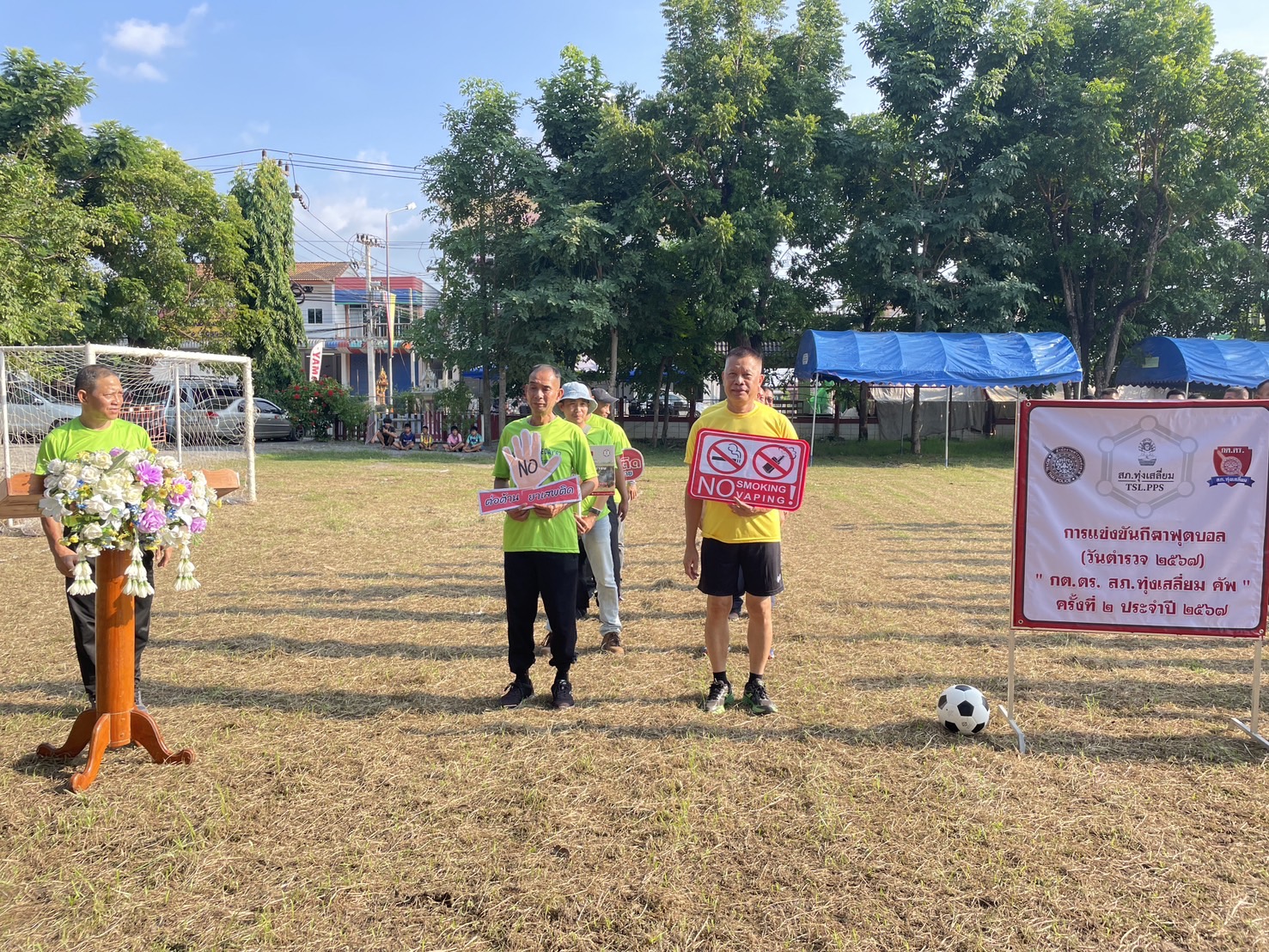 วันนี้ (10ต.ค.2567) เวลา 16.00น. พ.ต.อ.นิคม พรมพิราม ผกก.สภ.ทุ่งเสลี่ยม พร้อมด้วยข้าราชการตำรวจ สภ.ทุ่งเสลี่ยม ร่วมเปิดพิธีกิจกรรมการแข่งขันกีฬาฟุตบอลต้านยาเสพติด วันตำรวจแห่งชาติ ประจำปี 2567 (กต.ตร. สภ.ทุ่งเสลี่ยมคัพ ครั้งที่2) โดยมี นายภูชิต ณิชาชัยนิธิ ประธาน กต.ตร. สภ.ทุ่งเสลี่ยม เป็นผู้กล่าวเปิดพิธี ณ บริเวณสนามฟุตบอลหน้าสถานีตำรวจภูธรทุ่งเสลี่ยม การดำเนินการเป็นไปด้วยความเรียบร้อย