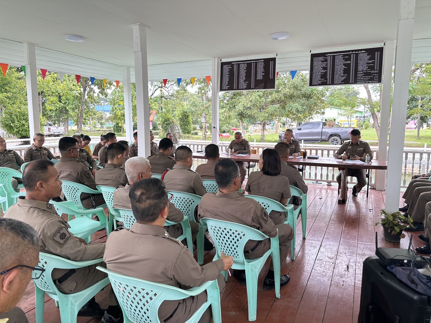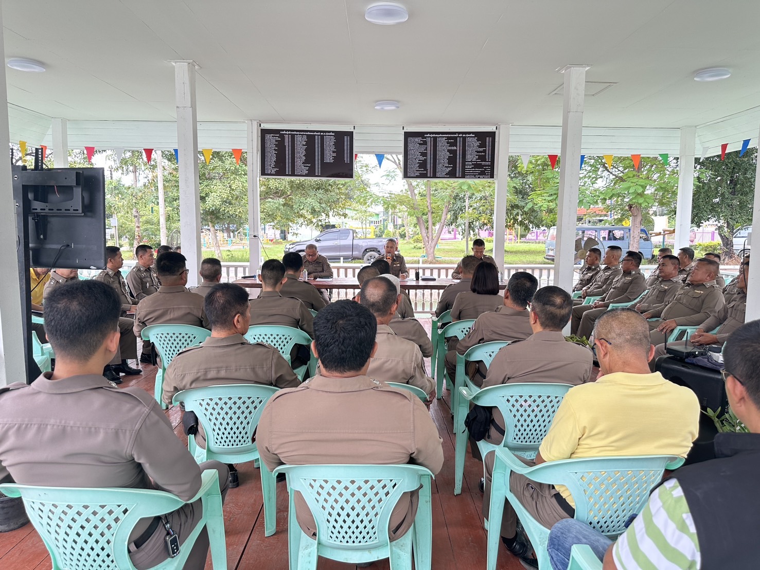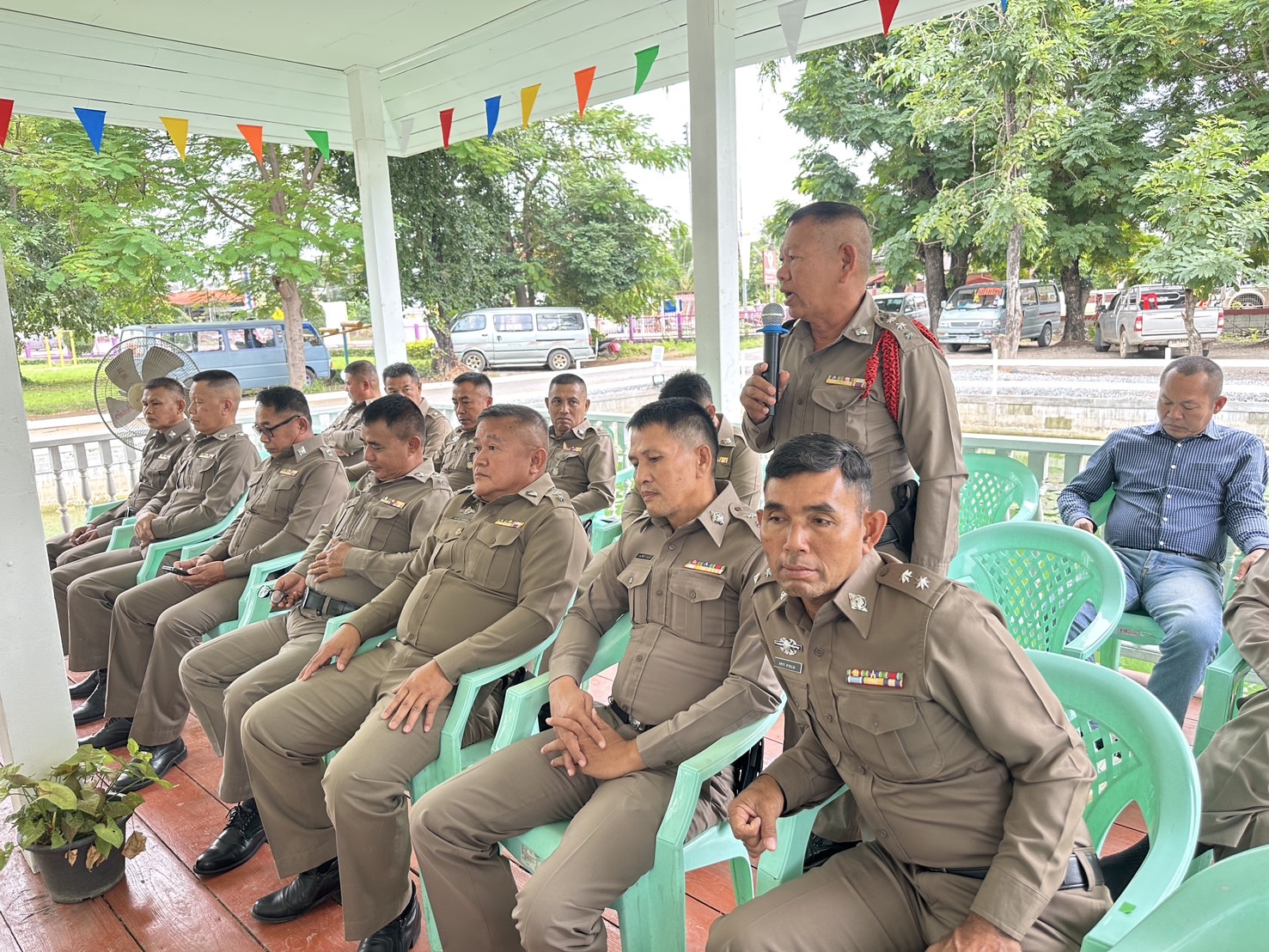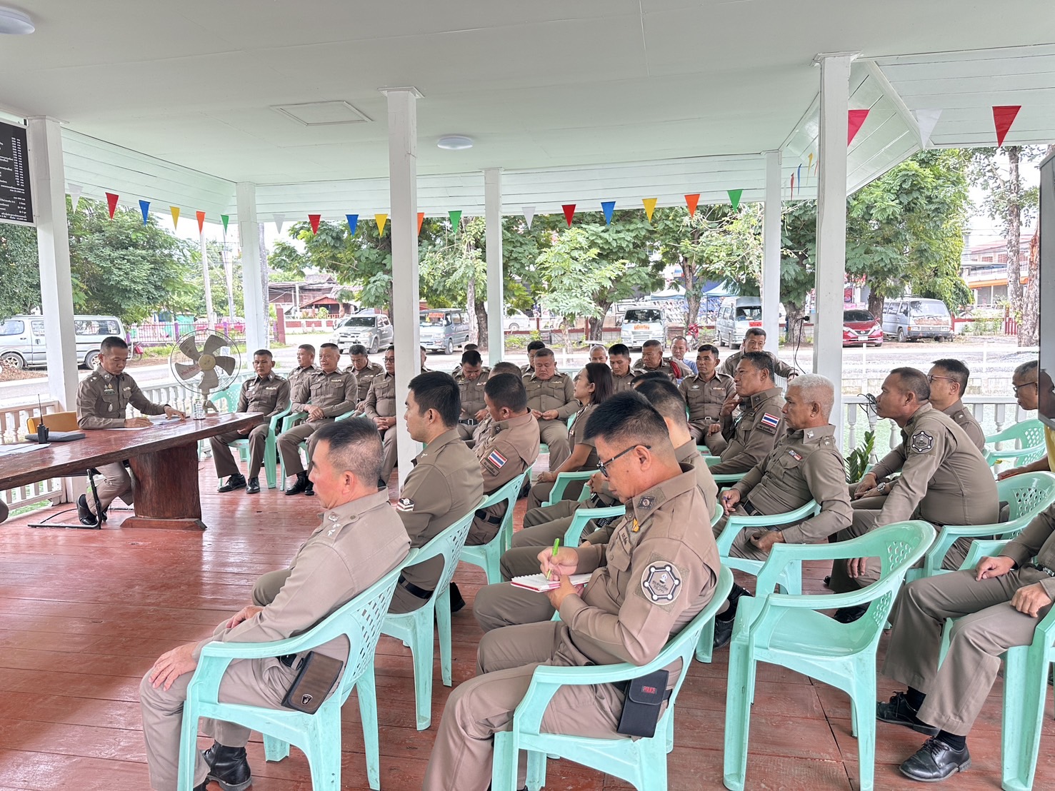 วันนี้ (6พ.ย.2567) เวลา 10.00น. พ.ต.อ.นิคม พรมพิราม ผกก.สภ.ทุ่งเสลี่ยม ประชุมประจำเดือนพฤศจิกายน 2567 ประชุมชี้แจงข้อราชการ ข้อสั่งการ ให้ข้าราชการตำรวจในปกครองได้รับทราบ เพื่อนำไปเป็นแนวทางการปฏิบัติตามวาระการประชุม ณ ศาลากลางสระน้ำหน้า สภ.ทุ่งเสลี่ยม พร้อมด้วยแสดงความยินดีและทำการประดับยศร้อยตำรวจโทและร้อยตำรวจเอกให้กับข้าราชการตำรวจในสังกัด จำนวน 13 นาย ตามหลักสูตร กดต. และกล่าวให้กำลังใจและตั้งใจปฏิบัติหน้าที่ราชการต่อไป การดำเนินการเป็นไปด้วยความเรียบร้อย