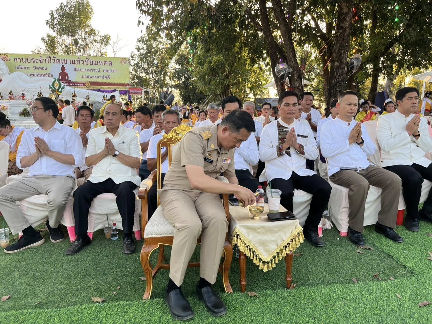 วันที่ 3 กุมภาพันธ์ 2568 เวลา 16.30 น. พ.ต.อ.นิคม พรมพิราม ผกก.สภ.ทุ่งเสลี่ยม เข้าร่วมพิธีเจริญพระพุทธมนต์เปิดงานประจำปีวัดเขาแก้วชัยมงคล ปิดทอง ขอพร หลวงพ่ออินทรนิจ ประจำปี 2568 โดยมีนายปพน สอนธรรม นายอำเภอทุ่งเสลี่ยม เป็นประธาน ณ วัดเขาแก้วชัยมงคล ตำบลเขาแก้วศรีสมบูรณ์ อำเภอทุ่งเสลี่ยม จังหวัดสุโขทัย การดำเนินการเป็นไปด้วยความเรียบร้อย