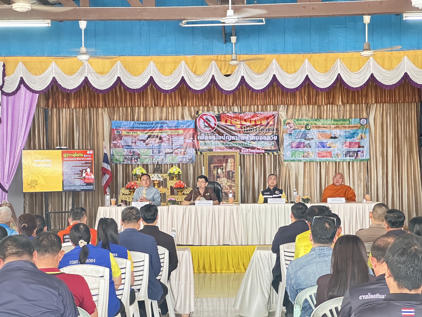 วันนี้ (6ก.พ.2568) เวลา 10.00น. พ.ต.อ.นิคม พรมพิราม ผกก.สภ.ทุ่งเสลี่ยม เข้าร่วมประชุมชี้แจงมอบนโยบายการดำเนินงานแก้ไขปัญหาหมอกควันและไฟป่า และฝุ่นละอองขนาดเล็ก (PM2.5) จังหวัดสุโขทัย โดยมีนายธีรยุทธ สำราญทรัพย์ รองผู้ว่าราชการจังหวัดสุโขทัย เป็นประธานในการประชุม ณ ศาลาประชาคมอำเภอทุ่งเสลี่ยม จว.สุโขทัย การดำเนินการเป็นไปด้วยความเรียบร้อย