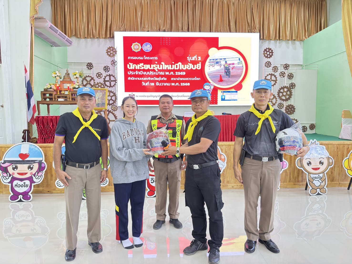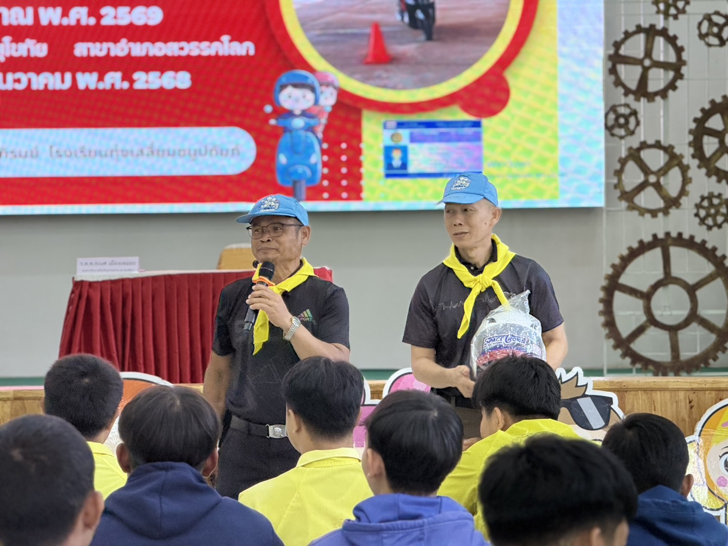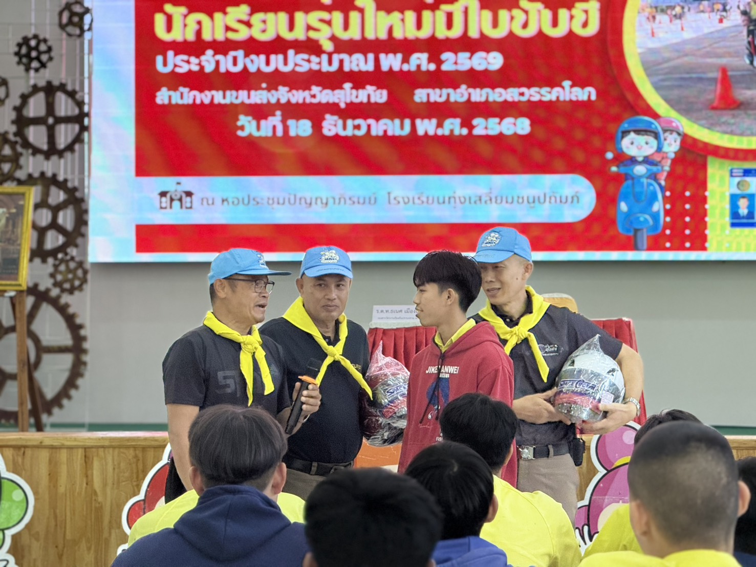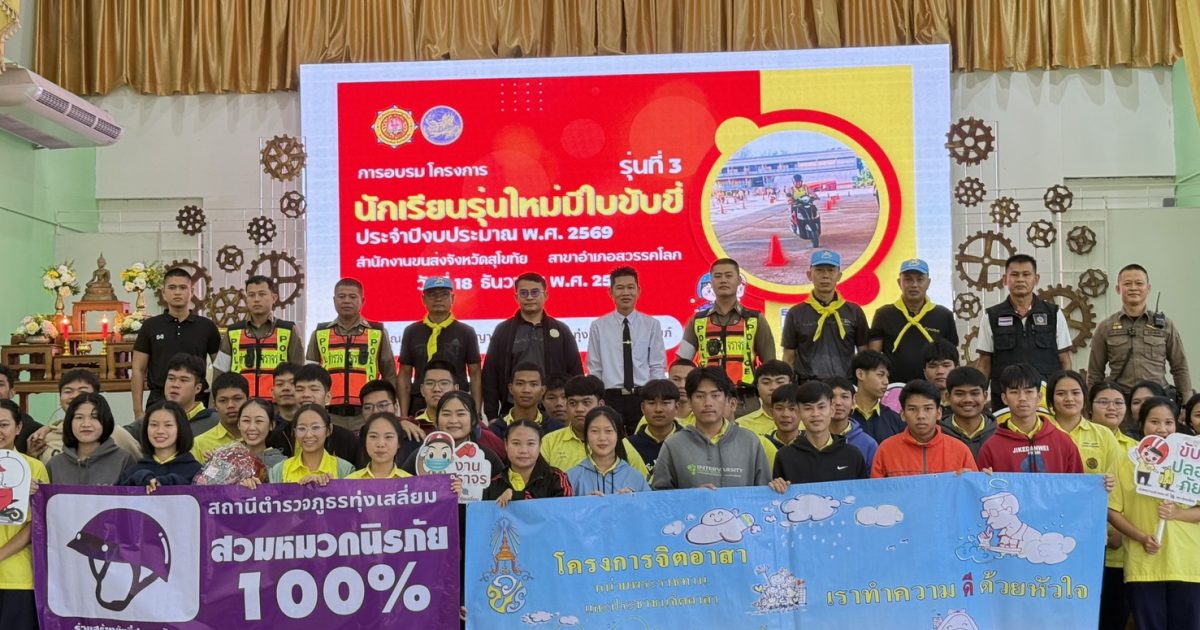 วันนี้ (26ธ.ค.68) เวลา 10:30น. ภายใต้การอำนวยการสั่งการของ พ.ต.อ.ธีรณัจต์ เมธาอรรถพงศ์ ผกก.สภ.ทุ่งเสลี่ยม ,พ.ต.ท.ลำพูน เคลือบวงค์ รอง ผกก.ป.สภ.ทุ่งเสลี่ยม มอบหมายให้ พ.ต.ท.กำพล จันทร์ฉาย สวป.สภ.ทุ่งเสลี่ยม ,พ.ต.ต.สัญญาบุญหลัง สว.อก.สภ.ทุ่งเสลี่ยม พร้อมด้วยชุดจราจร สภ.ทุ่งเสลี่ยมและข้าราชการตำรวจจิตอาสา รณรงค์บรรยายให้ความรู้ในโครงการขับขี่ ปลอดภัย ป้องกันการเกิดอุบัติเหตุ ในช่วงเทศกาลปีใหม่ 2569 ให้กับนักเรียนโรงเรียนทุ่งเสลี่ยมชนูปถัมภ์ ณ หอประชุมปัญญาภิรมย์ โรงเรียนทุ่งเสลี่ยมชนูปถัมภ์