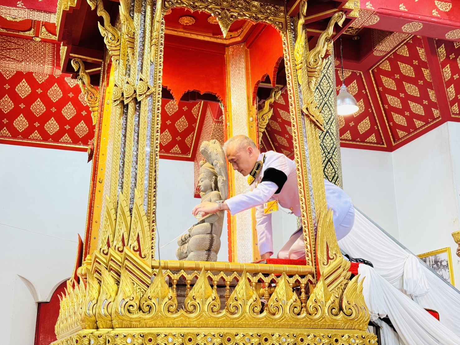 วันที่ 24 กุมภาพันธ์ 2569 เวลา 10.00 น. ภายใต้การอำนวยการ พล.ต.ต.สถาพร ศรีภิรมย์ ผบก.ภ.จว.สุโขทัย มอบหมายให้ พ.ต.อ.สุทัศน์ ตุ่นทิม รอง ผบก.ภ.จว.สุโขทัย พร้อมด้วย พ.ต.ท.ลำพูน เคลือบวงค์ รอง ผกก.ป.สภ.ทุ่งเสลี่ยม ,พ.ต.ท.สุกิจ ประกิจ รอง ผกก.สส.สภ.ทุ่งเสลี่ยม และข้าราชการตำรวจในสังกัด ให้การต้อนรับ รักษาความปลอดภัยและอำนวยความสะดวกด้านการจราจร นายสมศักดิ์ อนุราชเสนา ประจำสำนักพระราชวังพิเศษ ระดับ ๑๐ ผู้เชิญสิ่งของพระราชทาน น้ำสรง ผ้าไตร เครื่องสักการะพระราชทาน ถวายหลวงพ่อศิลา ผ้าไตร ไทยธรรมพระราชทาน ถวายแด่พระครูสุเขตสุทธาลังการ เจ้าอาวาสวัดทุ่งเสลี่ยม ณ วัดทุ่งเสลี่ยม ต.ทุ่งเสลี่ยม อ.ทุ่งเสลี่ยม จ.สุโขทัย