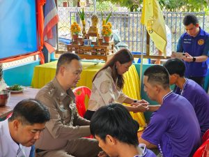 วันที่ 12ก.ค.2567 เวลา 10.00 น. โดยการนำของ พ.ต.อ.นิคม พรมพิราม ผกก.สภ.ทุ่งเสลี่ยม พร้อมด้วย พ.ต.ท.สุกิจ ประกิจ รอง ผกก.ป.ฯ พ.ต.ท.สัมฤทธิ์ ทองมี สวป.ฯ พร้อมชุดปฏิบัติการฯ ได้ร่วมกับภาคีเครือข่าย ร่วมพิธีเปิดศูนย์บำบัดยาเสพติดและดูแลช่วยเหลือผู้เสพ กระบวนการชุมชนบำบัด (CBTx) ตามโครงการชุมชนบำบัดอย่างยั่งยืนในพื้นที่แพร่ระบาดยาเสพติด ตามนโยบายเร่งด่วนของรัฐบาล เพื่อแก้ไขปัญหายาเสพติดแบบครบวงจร ตามยุทธศาสตร์ชาติ โดยมี นางสุภาวิณี นวลหงส์ นายอำเภอทุ่งเสลี่ยม เป็นประธานในพิธี ณ ศาลา SML บ้านหนองรังสิต หมู่ 4 ต.บ้านใหม่ไชยมงคลฯและเวลา 12.00 น. พ.ต.อ.นิคม พรมพิราม ผกก.สภ.ทุ่งเสลี่ยม พร้อมด้วย ชุดปฏิบัติการฯ ได้ร่วมกับภาคีเครือข่าย มอบถุงยังชีพให้กับคนยากจน บ้านหนองรังสิต หมู่ 4 ต.บ้านใหม่ไชยมงคลฯ การดำเนินการเป็นไปด้วยความเรียบร้อย