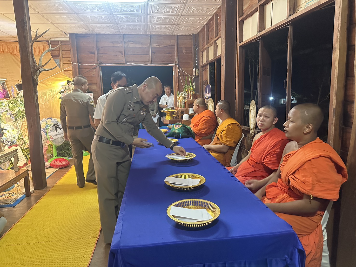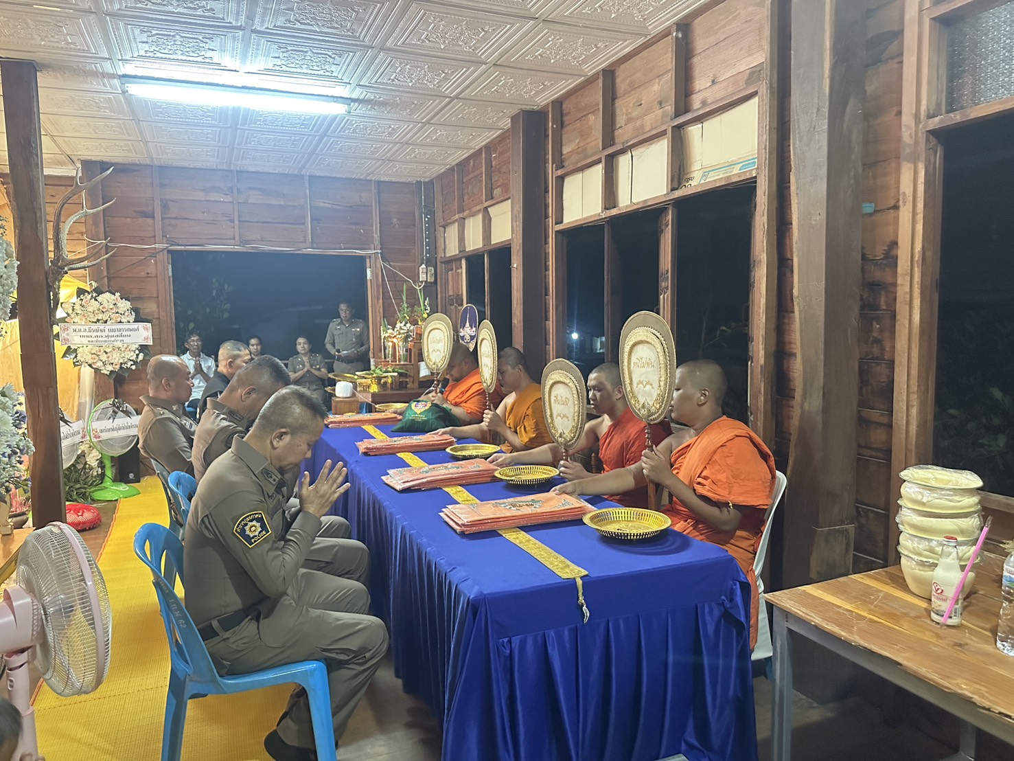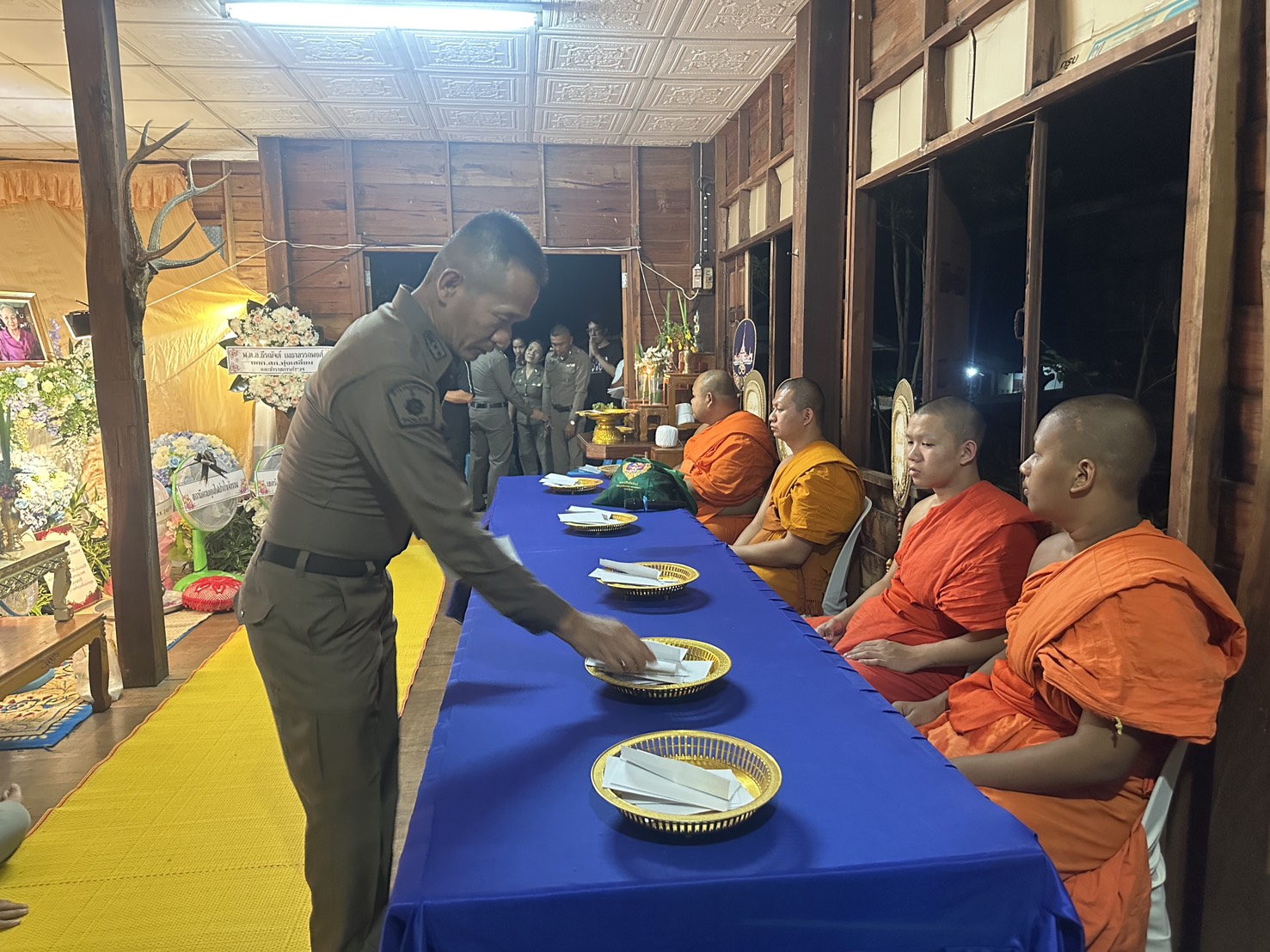 วันนี้(18มี.ค.68) เวลา19.30น. พ.ต.อ.ธีรณัจต์ เมธาอรรถพงศ์ ผกก.สภ.ทุ่งเสลี่ยม, พ.ต.ท.อิทธ์ฉัตรชัย เรืองชัยศิวเวท รอง ผกก.ป.สภ.ทุ่งเสลี่ยม, พ.ต.ท.ประเทือง สายโอ๊ะ รอง ผกก.(สอบสวน)สภ.ทุ่งเสลี่ยม,พ.ต.ท.กมลฐพัฒน์ ภูสินธนปวรรัช รอง ผกก.สส. สภ.ทุ่งเสลี่ยม พร้อมด้วยข้าราชการตำรวจ สภ.ทุ่งเสลี่ยม ร่วมสวดพระอภิธรรมศพ คุณแม่นา ปุ้มตะมะ มารดาของ จ.ส.ต.หญิง สวิตตา ปุ้มตะมะ ตร.สภ.ทุ่งเสลี่ยม และได้มอบเงินสวัสดิการช่วยเหลือตามโครงการช่วยเหลือบรรเทาความเดือดร้อน ตร ในหน่วย โดยมี จ.ส.ต.หญิง สวิตตา ปุ้มตะมะ เป็นผู้รับมอบ ฯ