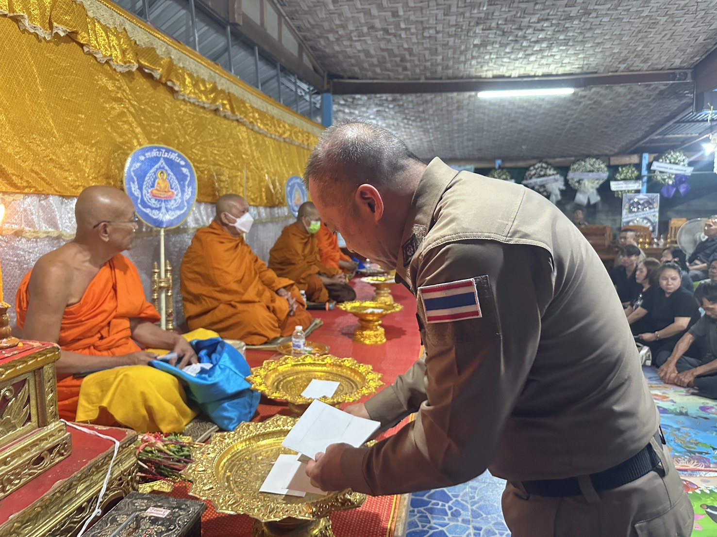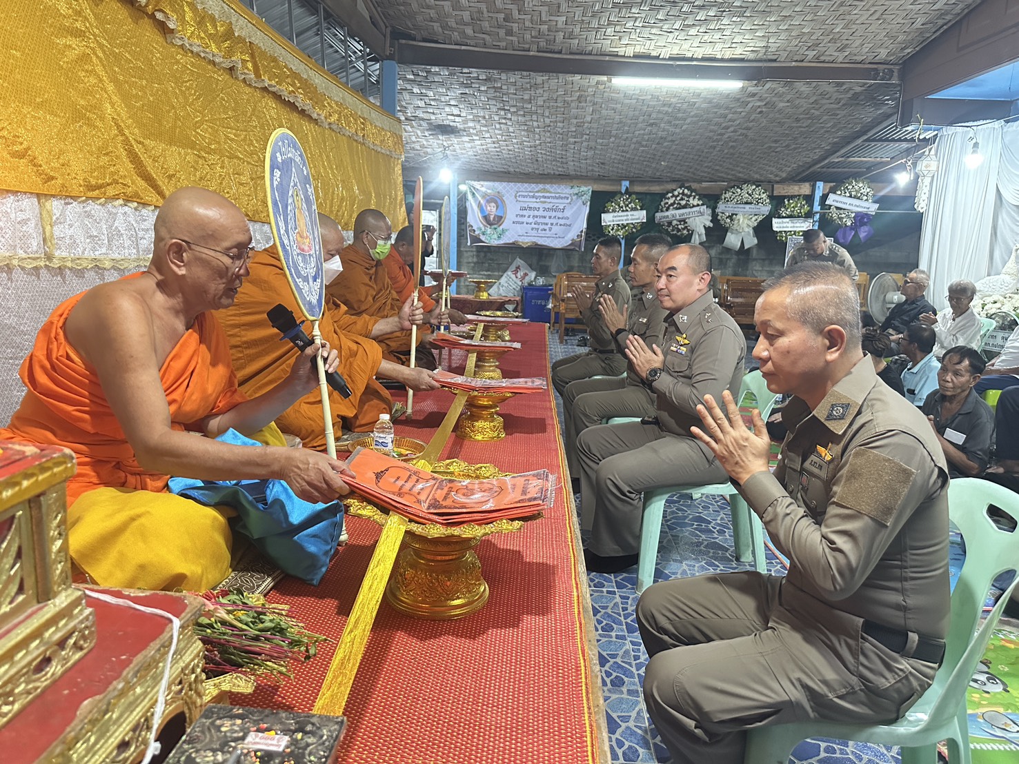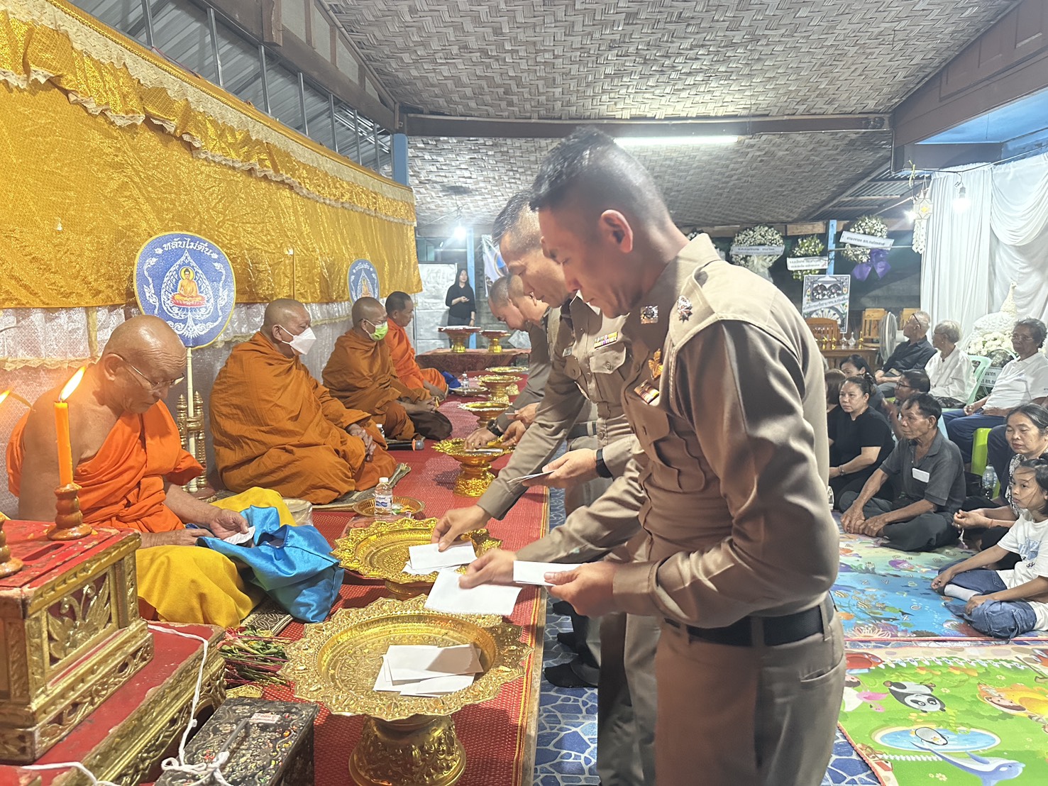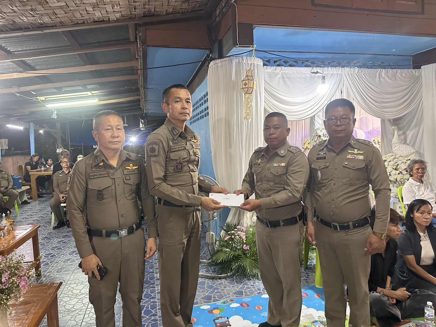 วันที่(27มี.ค.68) เวลา20.00น. พ.ต.อ.ธีรณัจต์ เมธาอรรถพงศ์ ผกก.สภ.ทุ่งเสลี่ยม, พ.ต.ท.อิทธ์ฉัตรชัย เรืองชัยศิวเวท รอง ผกก.ป.สภ.ทุ่งเสลี่ยม, พ.ต.ท.ประเทือง สายโอ๊ะ รอง ผกก.(สอบสวน)สภ.ทุ่งเสลี่ยม,พ.ต.ท.กมลฐพัฒน์ ภูสินธนปวรรัช รอง ผกก.สส. สภ.ทุ่งเสลี่ยม พร้อมด้วยข้าราชการตำรวจ สภ.ทุ่งเสลี่ยม ร่วมสวดพระอภิธรรมศพ คุณแม่ ทอง วงค์จักร์ มารดาของ ร.ต.อ.วศิน วงค์จักร์ ตร.สภ.ทุ่งเสลี่ยม โดยมี พ.ต.อ.สุขเกษม สุนทรวิภาต รอง ผบก.ภ.จว.สุโขทัย เป็นประธานในพิธี และได้มอบเงินสวัสดิการช่วยเหลือตามโครงการช่วยเหลือบรรเทาความเดือดร้อน ตร. ในหน่วย โดยมี ร.ต.อ.วศิน วงค์จักร์ เป็นผู้รับมอบ ฯ
