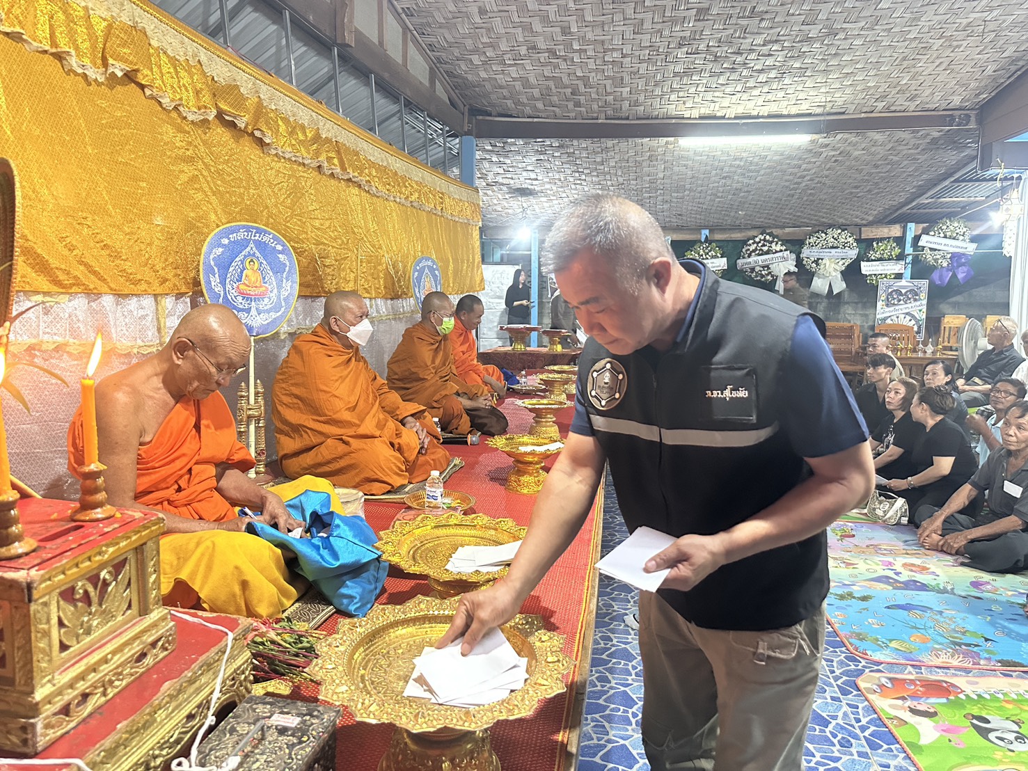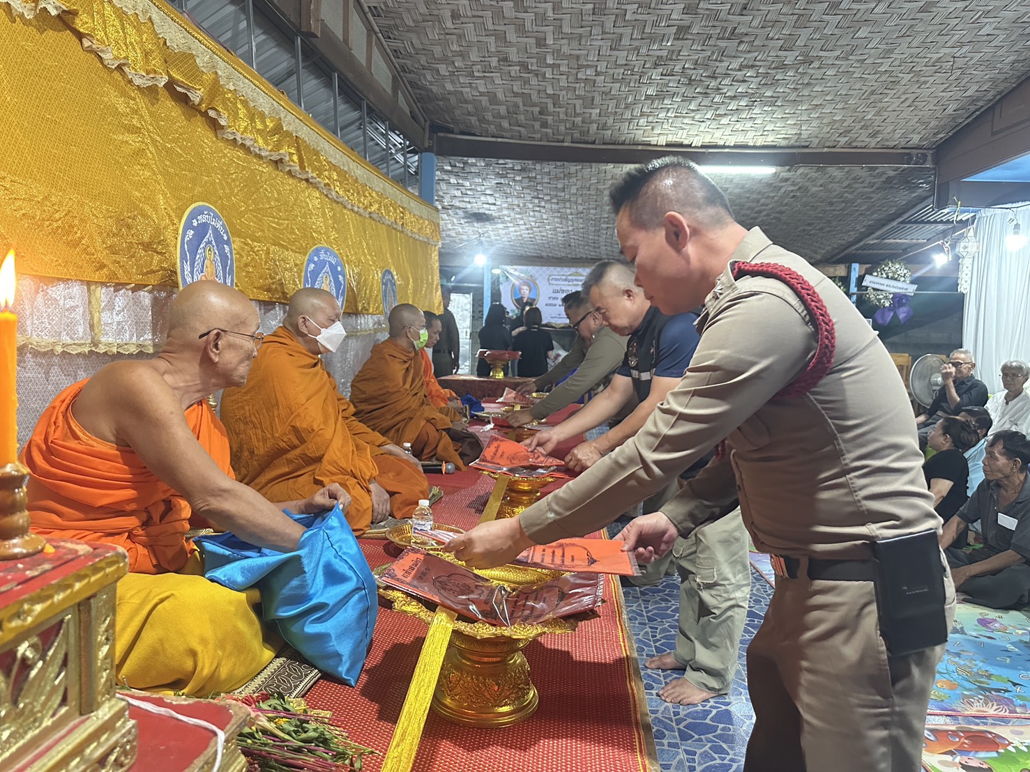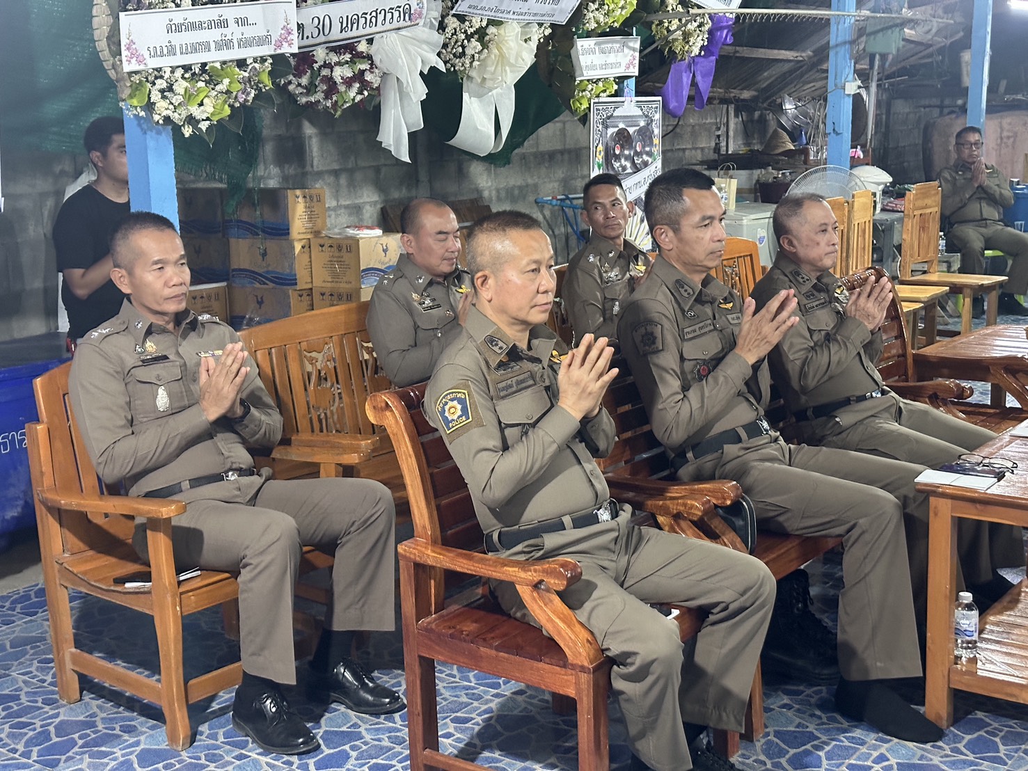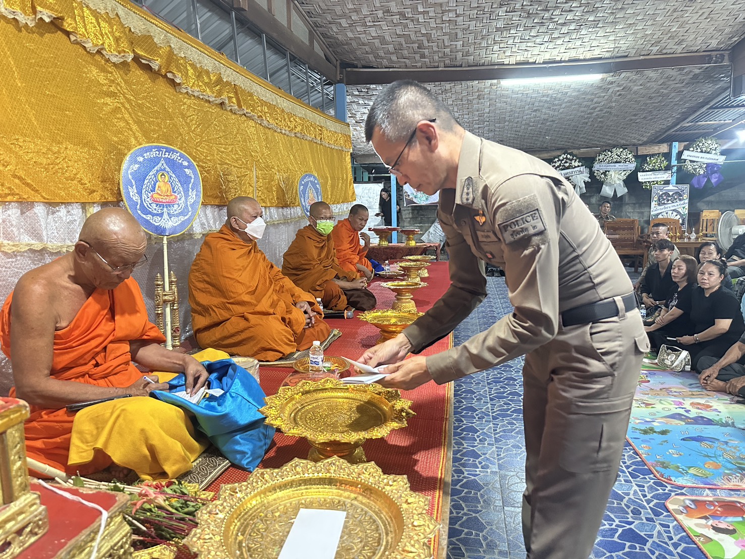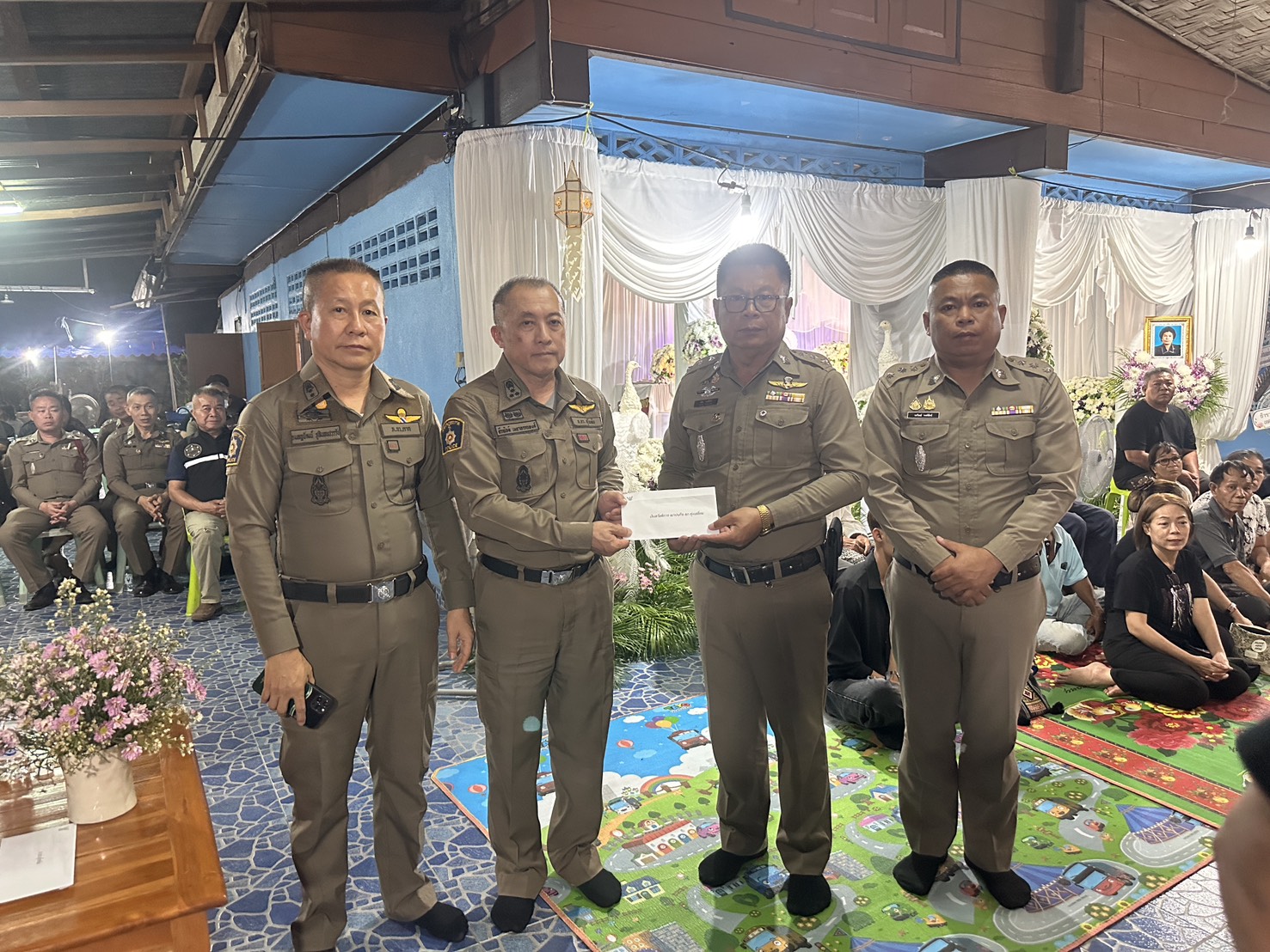 วันที่(27มี.ค.68) เวลา20.00น. พ.ต.อ.ธีรณัจต์ เมธาอรรถพงศ์ ผกก.สภ.ทุ่งเสลี่ยม, พ.ต.ท.อิทธ์ฉัตรชัย เรืองชัยศิวเวท รอง ผกก.ป.สภ.ทุ่งเสลี่ยม, พ.ต.ท.ประเทือง สายโอ๊ะ รอง ผกก.(สอบสวน)สภ.ทุ่งเสลี่ยม,พ.ต.ท.กมลฐพัฒน์ ภูสินธนปวรรัช รอง ผกก.สส. สภ.ทุ่งเสลี่ยม พร้อมด้วยข้าราชการตำรวจ สภ.ทุ่งเสลี่ยม ร่วมสวดพระอภิธรรมศพ คุณแม่ ทอง วงค์จักร์ มารดาของ ร.ต.อ.วศิน วงค์จักร์ ตร.สภ.ทุ่งเสลี่ยม โดยมี พ.ต.อ.สุขเกษม สุนทรวิภาต รอง ผบก.ภ.จว.สุโขทัย เป็นประธานในพิธี และได้มอบเงินสวัสดิการช่วยเหลือตามโครงการช่วยเหลือบรรเทาความเดือดร้อน ตร. ในหน่วย โดยมี ร.ต.อ.วศิน วงค์จักร์ เป็นผู้รับมอบ ฯ