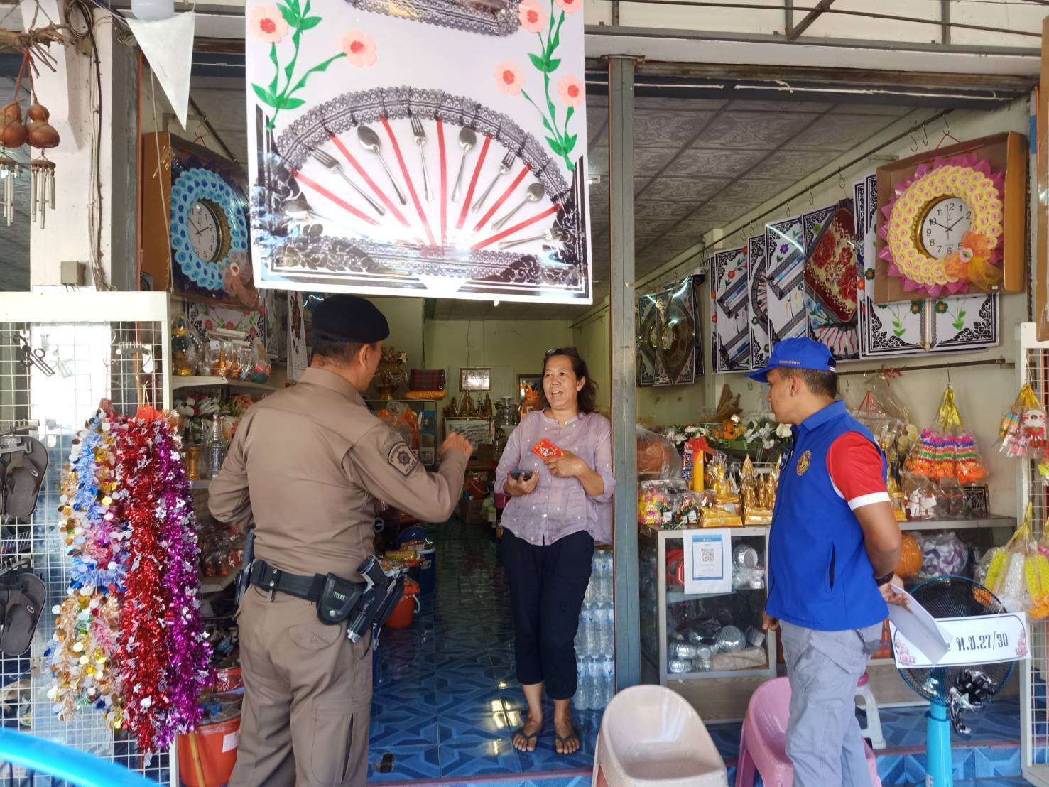 วันนี้ ( 14 พ.ย. 2567 )ภายใต้การอำนวยการของ พ.ต.อ.นิคม พรมพิราม ผกก.สภ.ทุ่งเสลี่ยม ,พ.ต.ท.สุกิจ ประกิจ รอง ผกก.ป. สภ.ทุ่งเสลี่ยม มอบหมายให้ ร.ต.ท.อักษร พัฒนชัยวงศ์ ร้อยเวร 20 พร้อมด้วย สายตรวจรถยนต์ ร่วมกับฝ่ายปกครองอำเภอทุ่งเสลี่ยม ตรวจสอบร้านค้าที่ลักลอบจำหน่ายพลุ/ดอกไม้ไฟ/ประทัด ที่เป็นอันตรายในงานวันลอยกระทง และไปตรวจสถานที่จัดงานลอยกระทงที่กาดฮิมต้า/สะพานเชิงผา การดำเนินการเป็นไปด้วยความเรียบร้อย