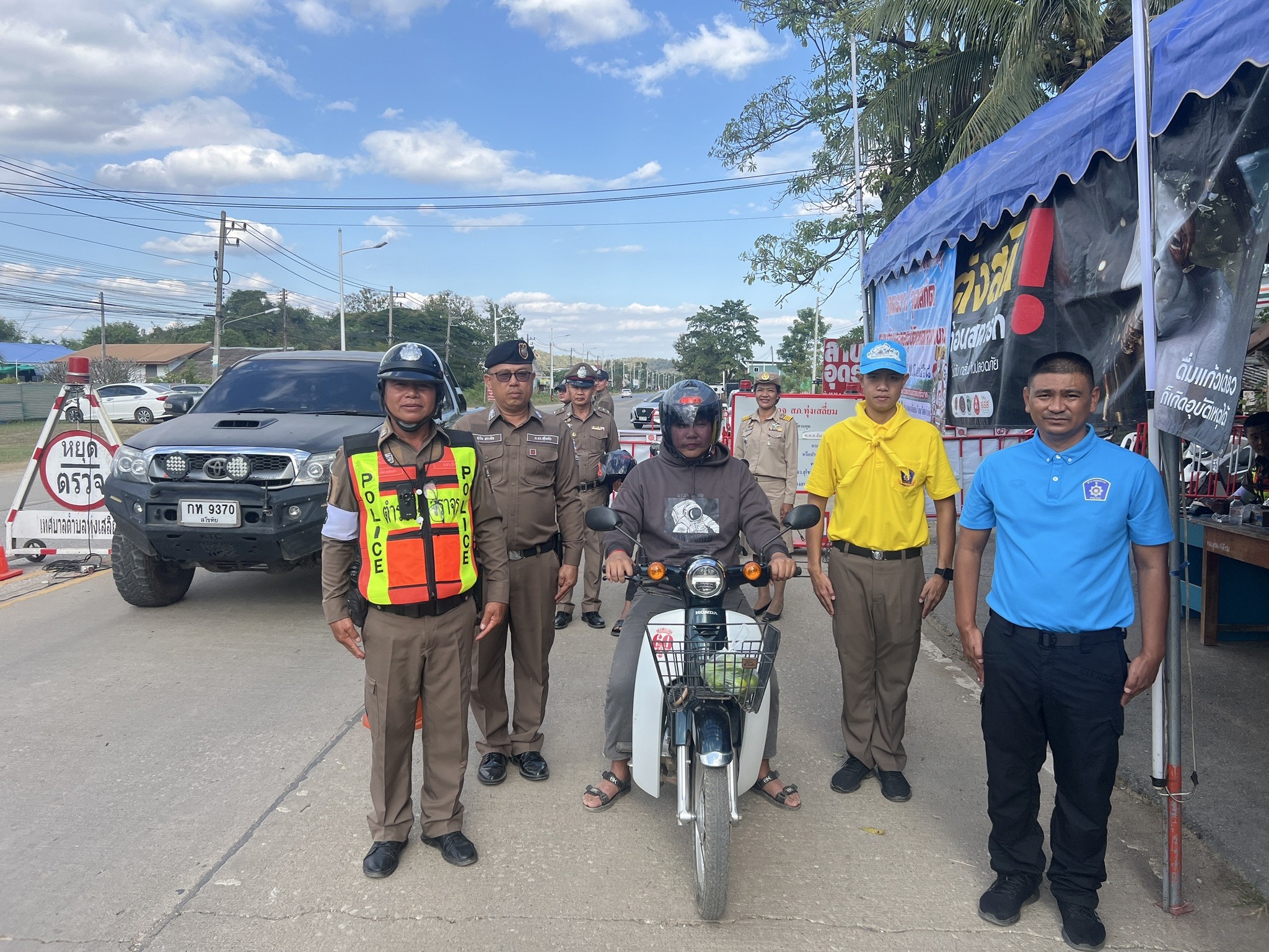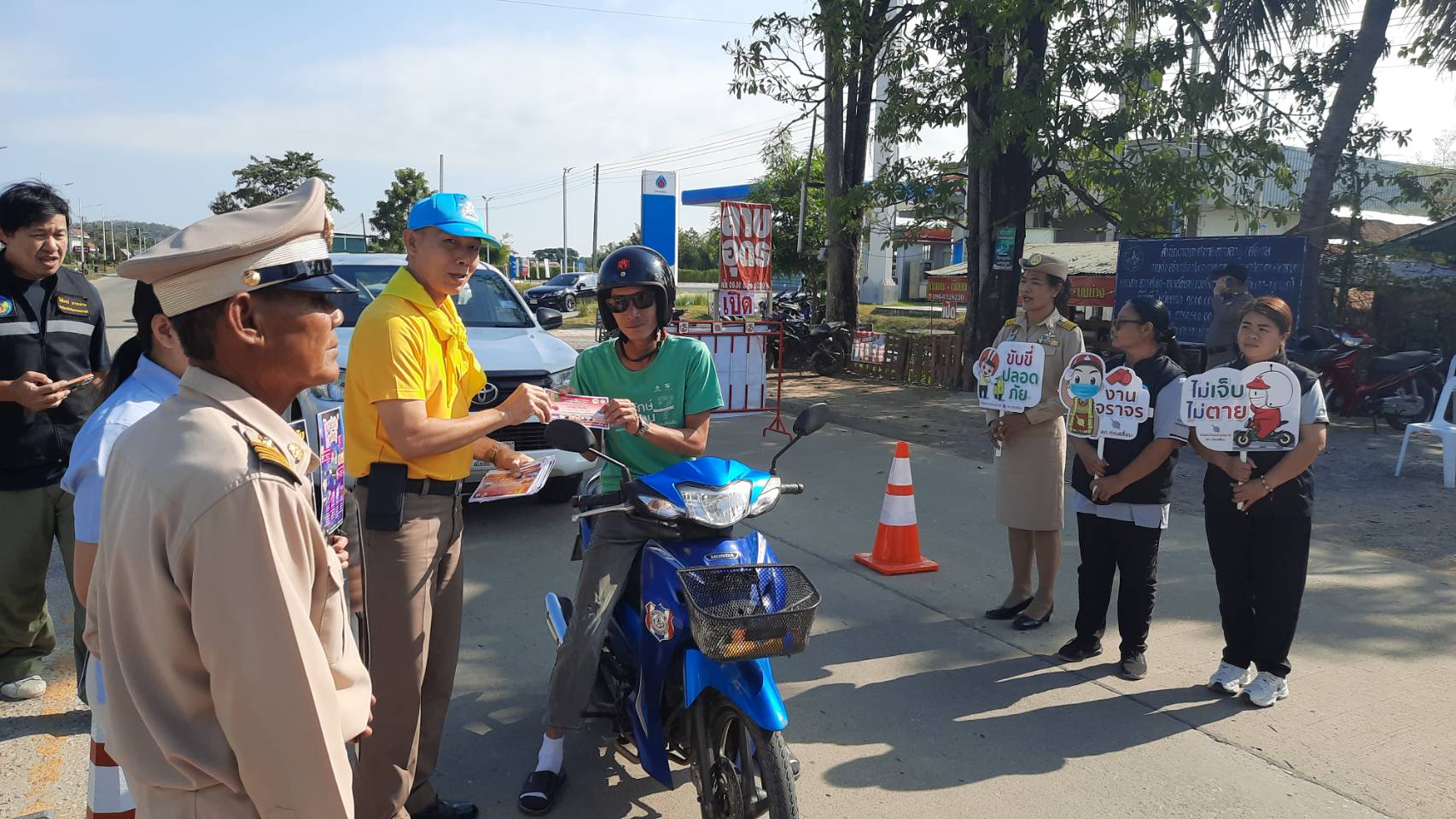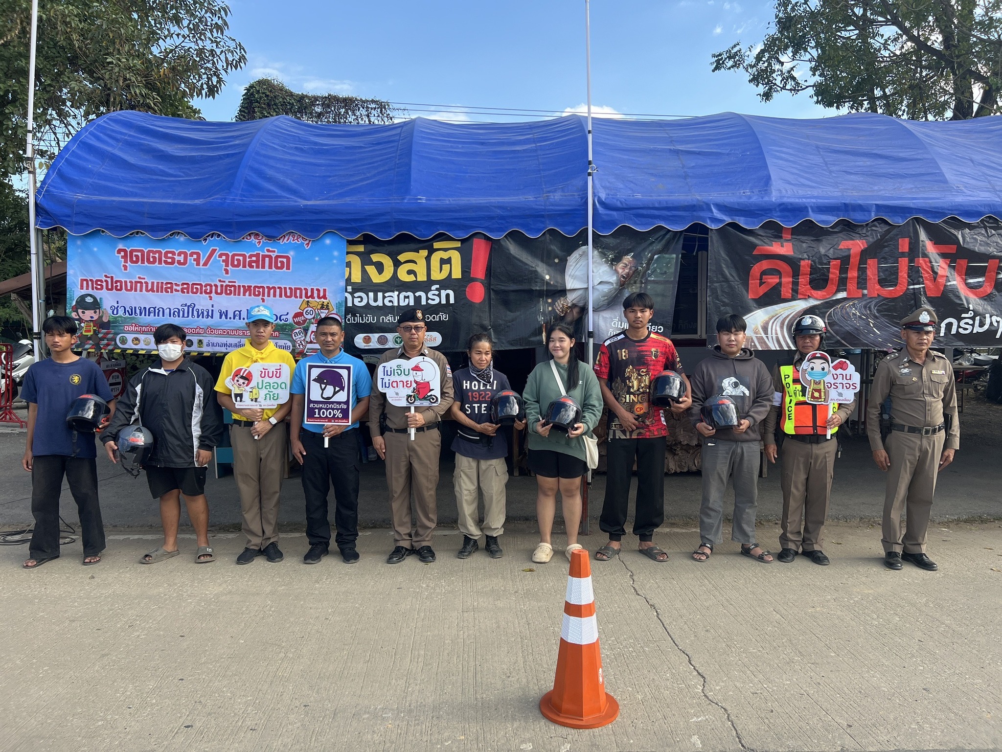 วันนี้( 29 ธ.ค. 67 )เวลา ภายใต้การอำนวยการสั่งการของ พ.ต.อ.นิคม พรมพิราม ผกก.สภ.ทุ่งเสลี่ยม มอบหมายให้ ร.ต.อ.สมโภชน์ เพ็งเนียม พร้อมข้าราชการตำรวจจิตอาสา สายตรวจจราจร,Locl cat,สาธารณสุข , อสม.ฯ, ผู้ใหญ่บ้าน, จนท.เทศบาลตำบลทุ่งเสลี่ยม ร่วมกันรณรงค์ขับขี่ปลอดภัย สวมหมวกนิรภัย เพื่อลดอุบัติเหตุจราจรทางบก ในช่วงเทศกาลปีใหม่ พ.ศ. 2568 หน้าศูนย์จราจรหน้าเทศบาลทุ่งเสลี่ยม การดำเนินการเป็นไปด้วยความเรียบร้อย