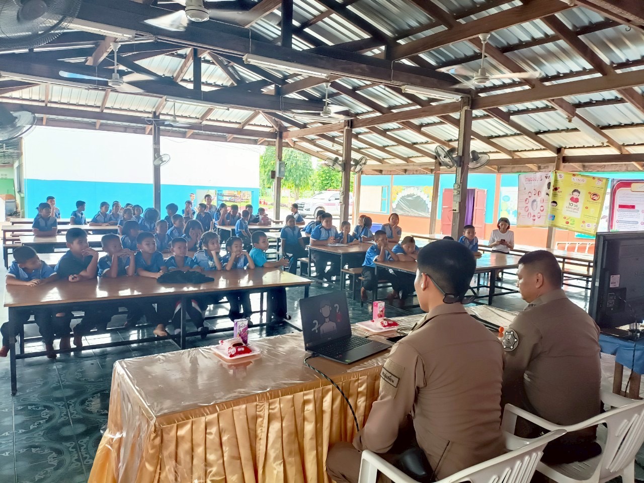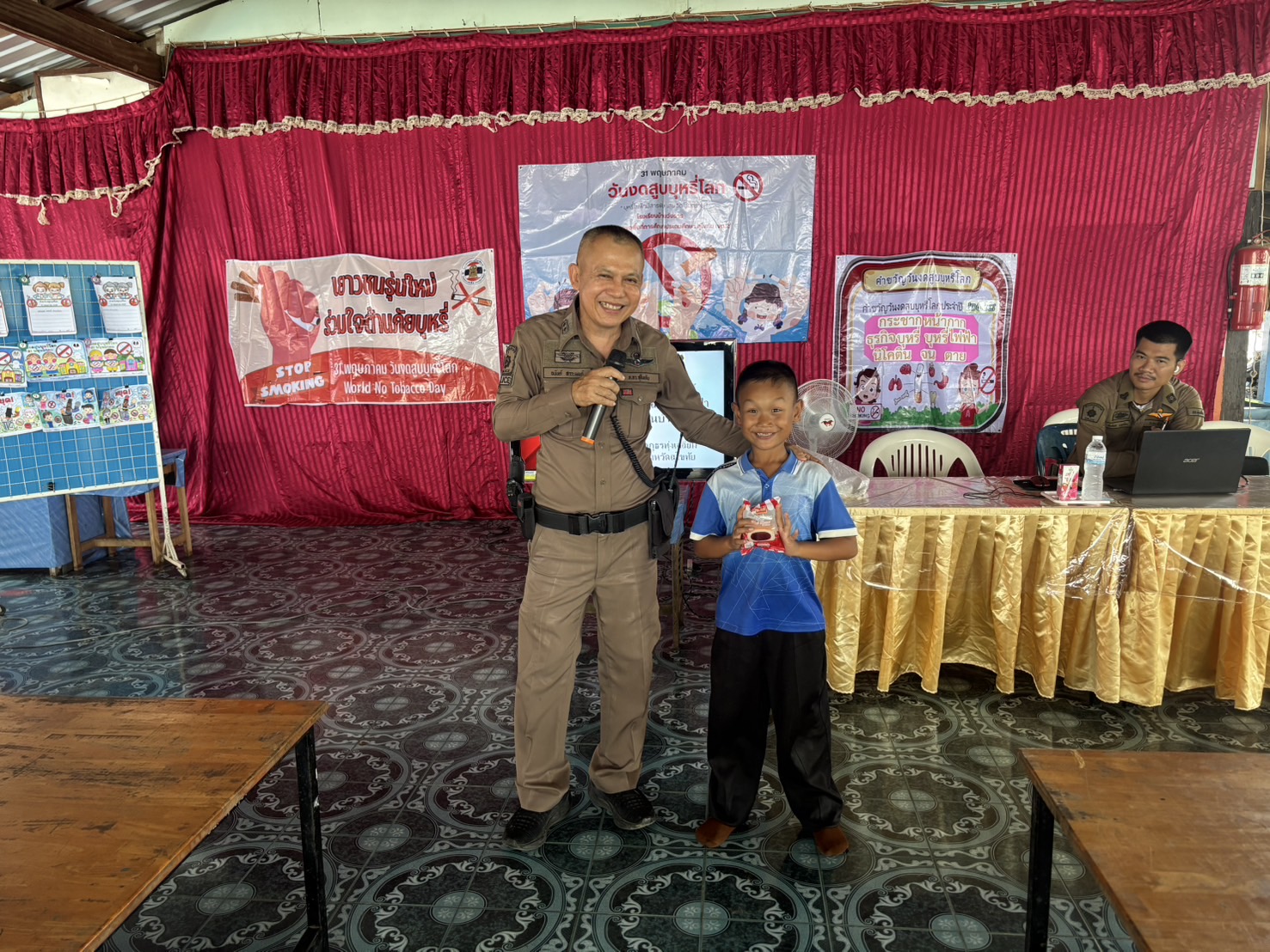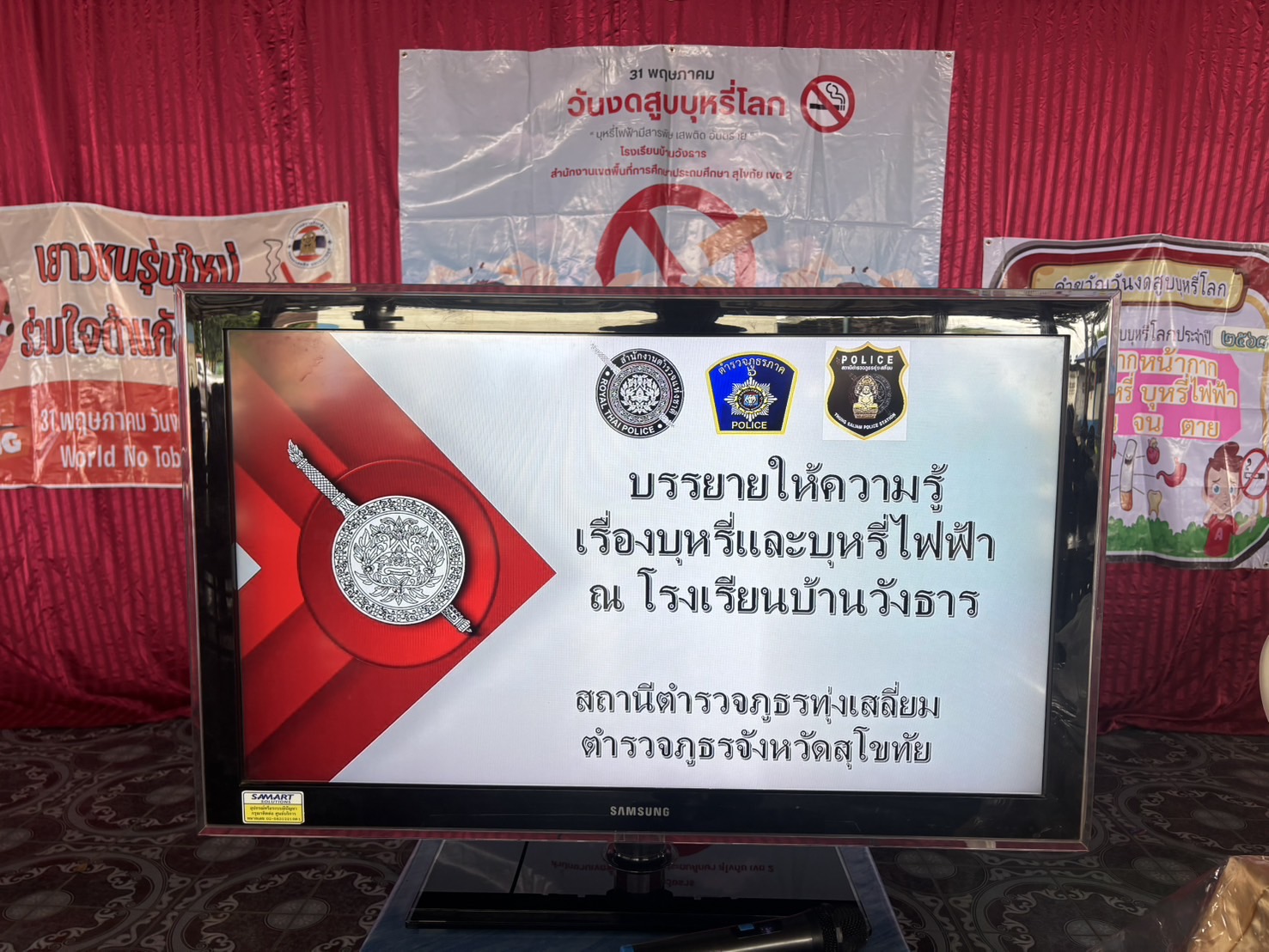 วันนี้( 29พ.ค.68 ) ภายใต้การอำนวยการของ พ.ต.อ.ธีรณัจต์ เมธาอรรถพงศ์ ผกก.สภ.ทุ่งเสลี่ยม มอบหมายให้ร.ต.อ.สมโภชน์ เพ็งเนียม รอง สวป. สภ.ทุ่งเสลี่ยม พร้อมด้วย สายตรวจรถยนต์ บรรยายให้ความรู้ ในเรื่องบุหรี่ และบุหรี่ไฟฟ้าให้กับนักเรียนโรงเรียนบ้านวังธาร ณ หอประชุมโรงเรียนบ้านวังธารอำเภอทุ่งเสลี่ยม จังหวัดสุโขทัย การดำเนินการเป็นไปด้วยความเรียบร้อย