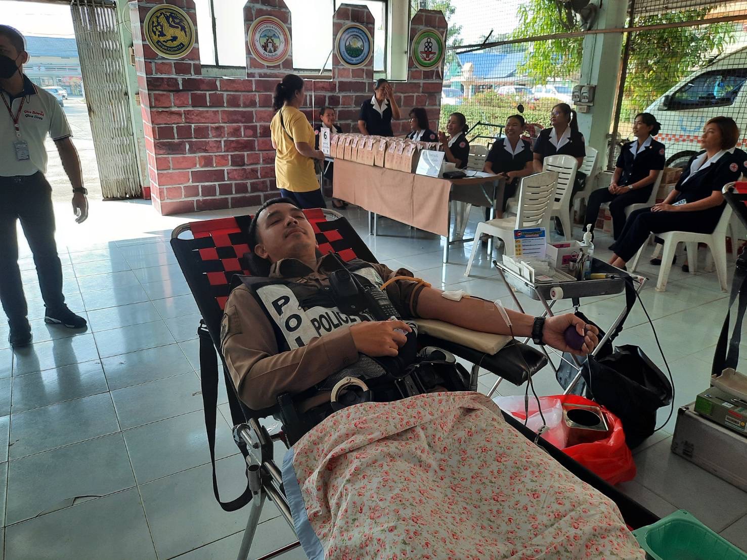 วันนี้ 7 ก.พ.68 เวลา 08.30 – 12.00 น. ภายใต้การอำนวยการสั่งการของ พ.ต.อ.นิคม พรมพิราม ผกก.สภ.ทุ่งเสลี่ยม มอบหมายให้ ร.ต.อ.หญิง วนิดา ปัญญาเสน รอง สว.ธร.สภ.ทุ่งเสลี่ยม พร้อมข้าราชการตำรวจจิตอาสา ร่วมบริจาคโลหิตที่ว่าการอำเภอทุ่งเสลี่ยม โดยมีฝ่ายปกครอง กำนัน ผู้ใหญ่บ้าน และประชาชนในพื้นที่ อ.ทุ่งเสลี่ยม ร่วมกับเหล่ากาชาดอำเภอทุ่งเสลี่ยม โดยมีหน่วยบริการโลหิตแห่งชาติ ที่ 9 จ.พิษณุโลก เป็นหน่วยให้บริการ การดำเนินการเป็นไปด้วยความเรียบร้อย