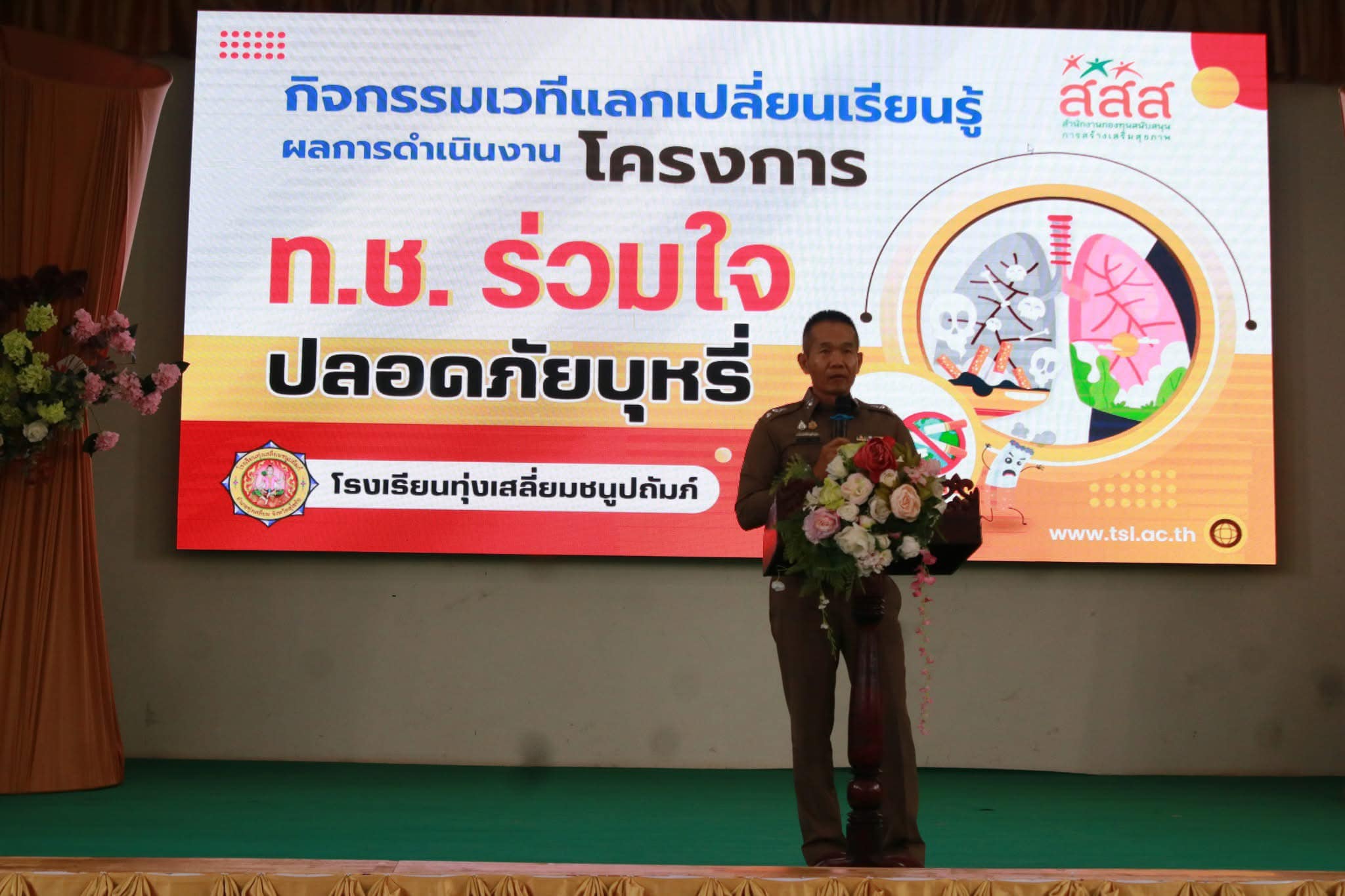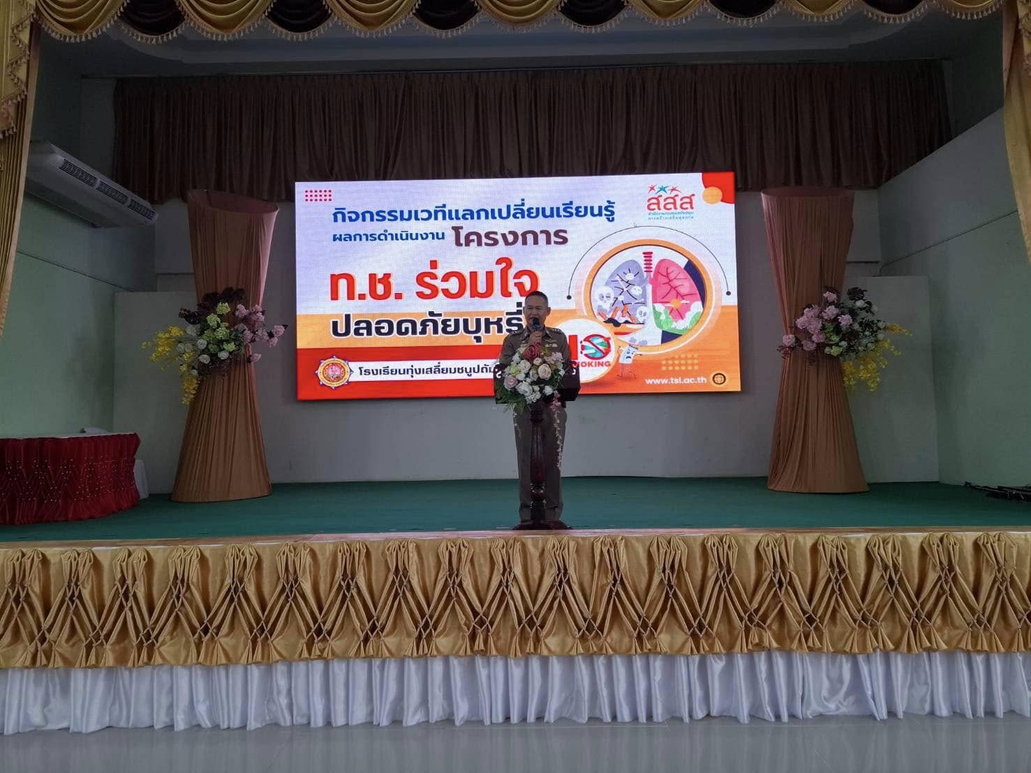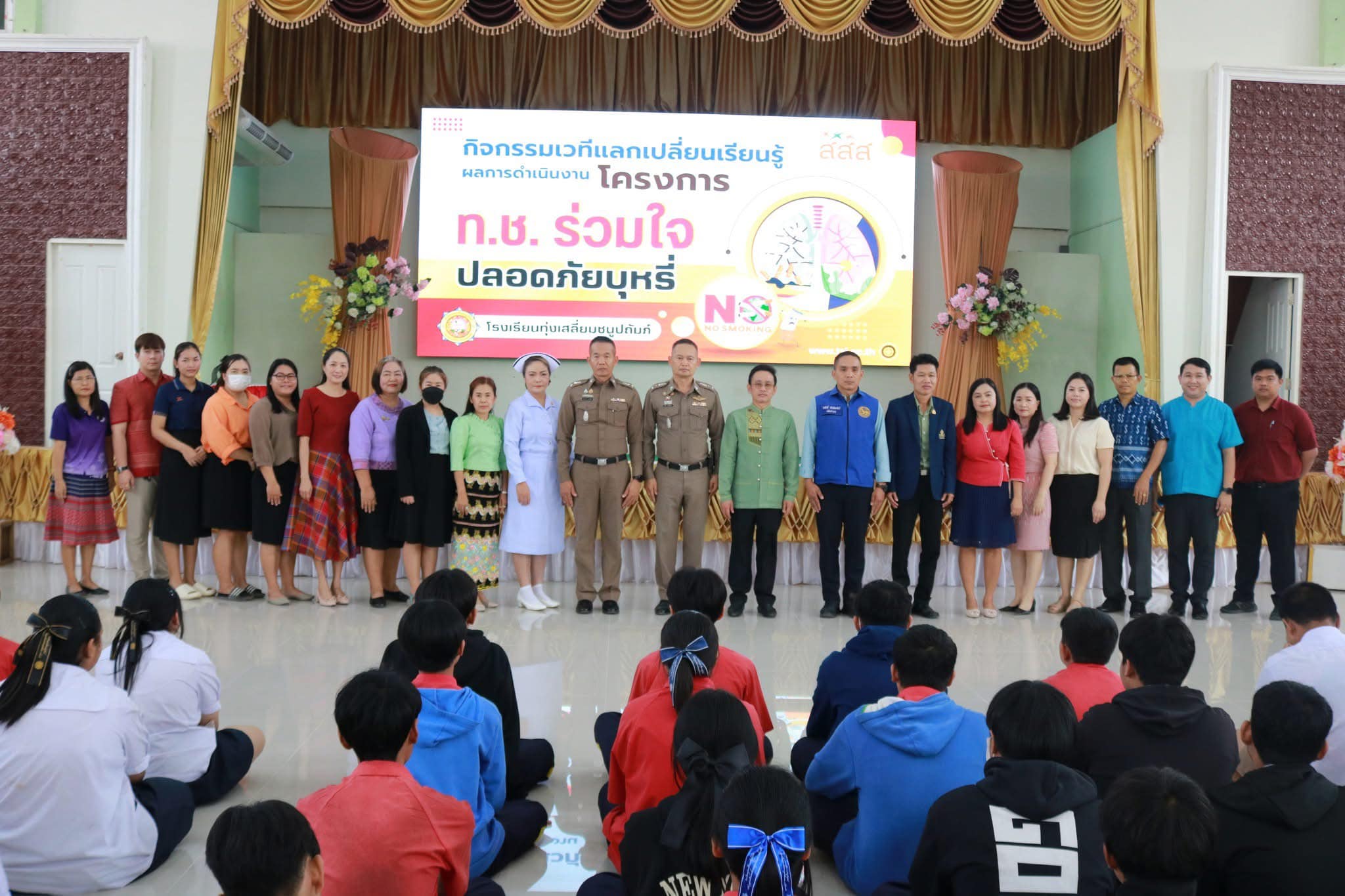 วันที่ 7 กุมภาพันธ์ 2568 พ.ต.อ.นิคม พรมพิราม ผกก.สภ.ทุ่งเสลี่ยม ,พ.ต.ท.ประเทือง สายโอ๊ะ รองผกก.(สอบสวน)สภ.ทุ่งเสลี่ยม เข้าร่วมกิจกรรมเวทีแลกเปลี่ยนเรียนรู้ โครงการ ท.ช.ร่วมใจ ปลอดภัยบุหรี่ เพื่อให้ตระหนักถึงปัญหา และผลกระทบจากการสูบบุหรี่ สามารถดำรงตนอยู่ในสังคมได้อย่างมีความสุข เป็นพลเมืองที่มีคุณภาพพัฒนาประเทศต่อไป ณ หอประชุมปัญญาภิรมย์ โรงเรียนทุ่งเสลี่ยมชนูปถัมภ์ การดำเนินการเป็นไปด้วยความเรียบร้อย