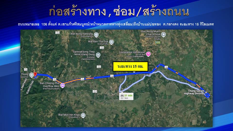 ประชาสัมพันธ์ เนื่องจากกรมทางหลวงได้มีการ ก่อสร้างทาง,ซ่อม/สร้างถนน ในเขตุพื้นที่อำเภอทุ่งเสลี่ยม ตั