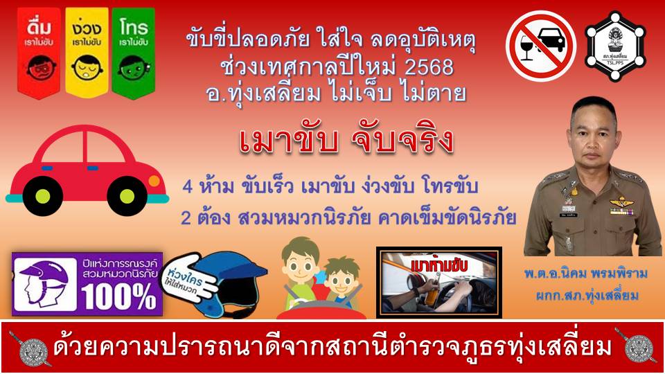 📌📌ประชาสัมพันธ์📌📌 สถานีตำรวจภูธรทุ่งเสลี่ยม ร่วมรณรงค์ป้องกันและลดอุบัติเหตุทางถนนช่วงเทศกาลปีใหม่ 2568