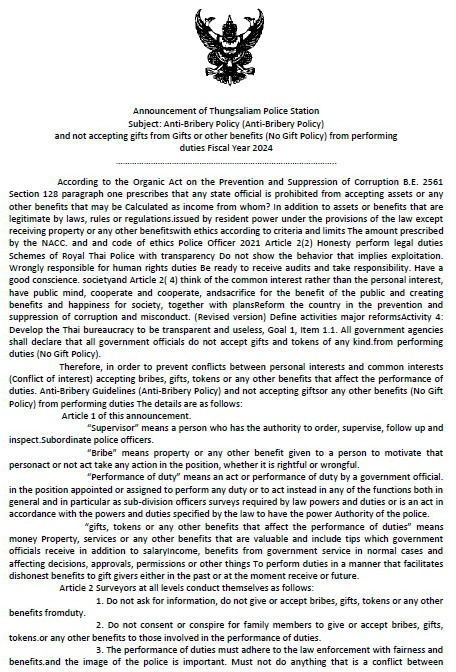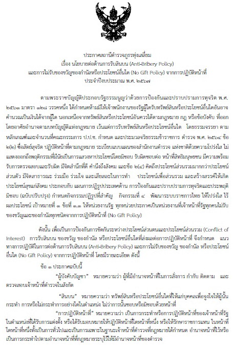 O18 ประกาศนโยบายต่อต้านการรับสินบน (Anti-Bribery Policy)