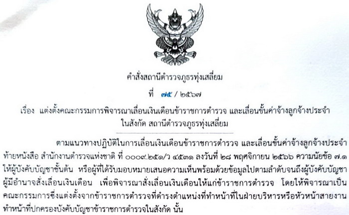 คำสั่งสถานีตำรวจภูธรทุ่งเสลี่ยมที่ 75/2567 รูปแบบไฟล์ pdf