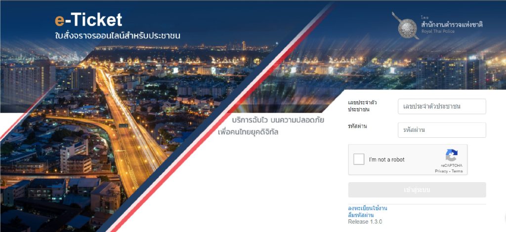 - เข้าเว็บไซต์ https://ptm.police.go.th/eTicket/#/ จากนั้นเลือกเมนู ลงทะเบียนใช้งาน