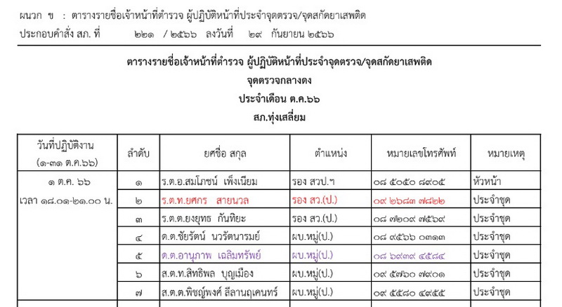 คำสั่งจุดตรวจจุดสกัดฯ สถานีตำรวจภูธรทุ่งเสลี่ยม ห้วงต.ค.2566-มี.ค.2567 ไฟล์ Word