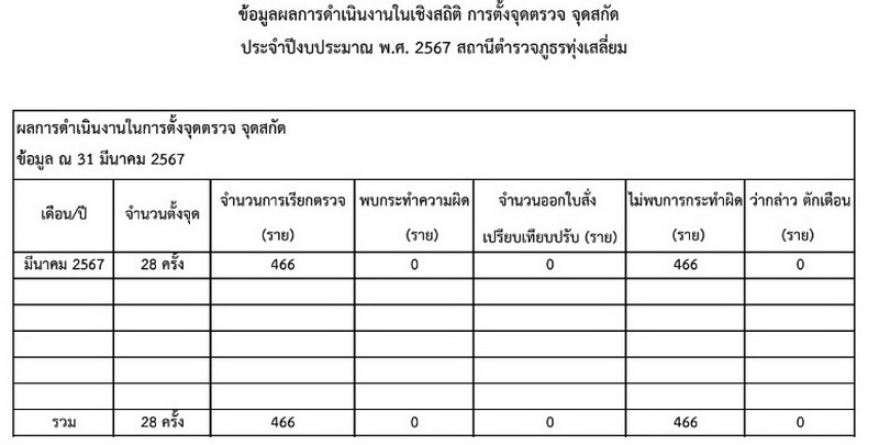 ข้อมูผลการดำเนินงานเชิงสถิติในการตั้งจุดตรวจ จุดสกัด ประจำเดือน มี.ค. 2567 ไฟล์ pdf