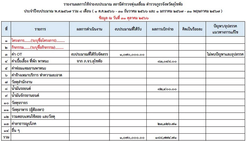 รายงานผลการใช้จ่ายงบประมาณ สถานีตำรวจภูธรทุ่งเสลี่ยม Excel