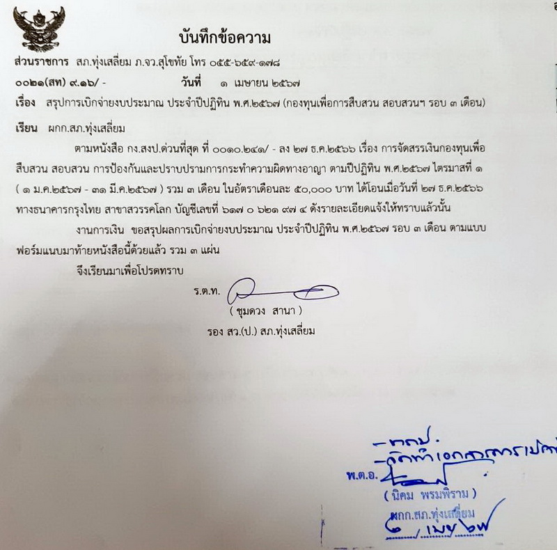 รายงานผลการใช้จ่ายงบประมาณ สถานีตำรวจภูธรทุ่งเสลี่ยม pdf