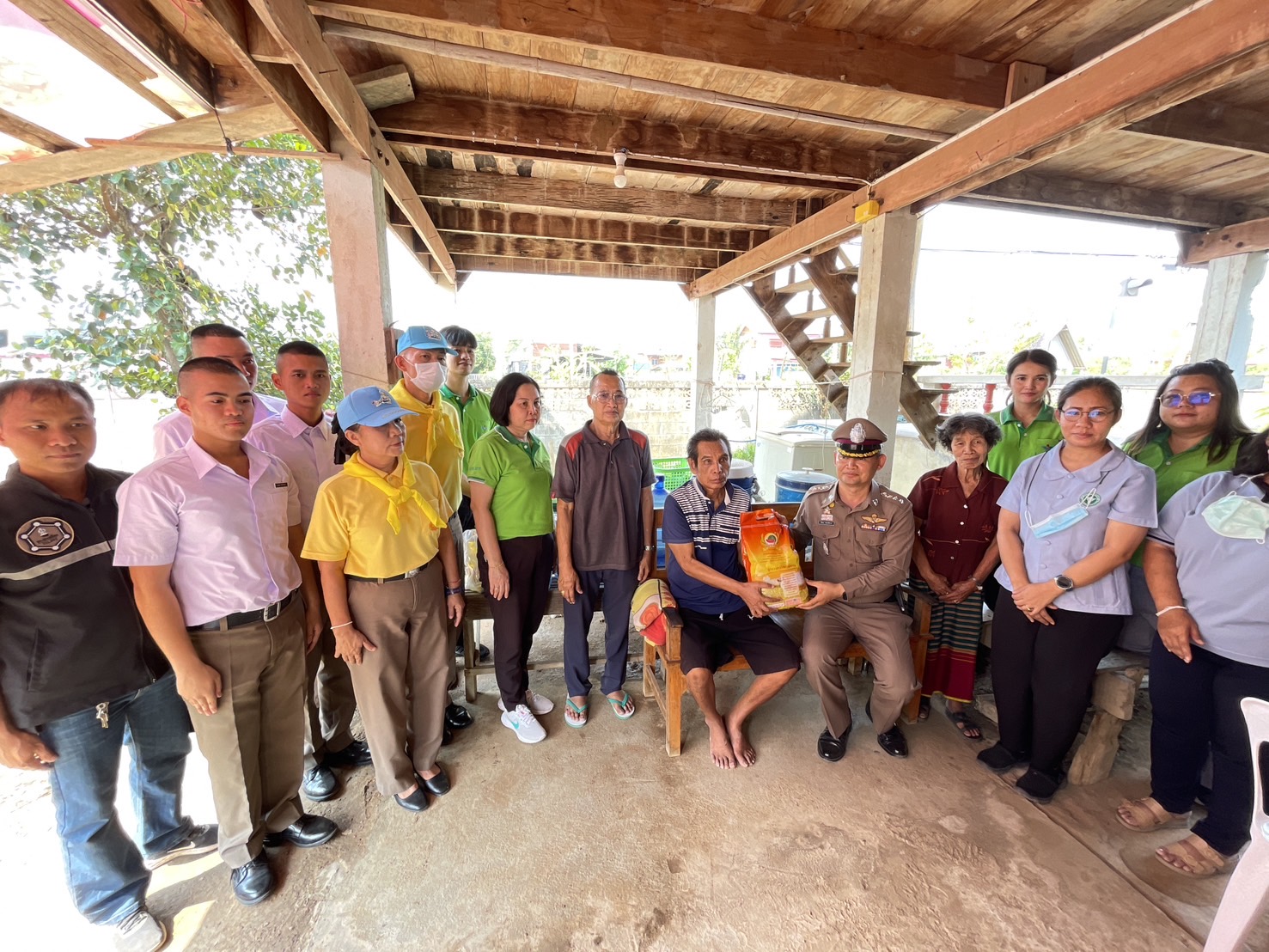 พ.ต.อ.นิคม พรมพิราม ผกก.สภ.ทุ่งเสลี่ยม, คุณกรภัทร จันทร์แรม ที่ปรึกษาเจ้าอาวาสวัดราชธานีและอดีดที่ปรึกษาผู้บังคับการตำรวจภูธรจังหวัดสุโขทัย,ข้าราชการตำรวจจิตอาสา มอบสิ่งของและน้ำดื่มให้กับผู้พิการจำนวน 4 ราย